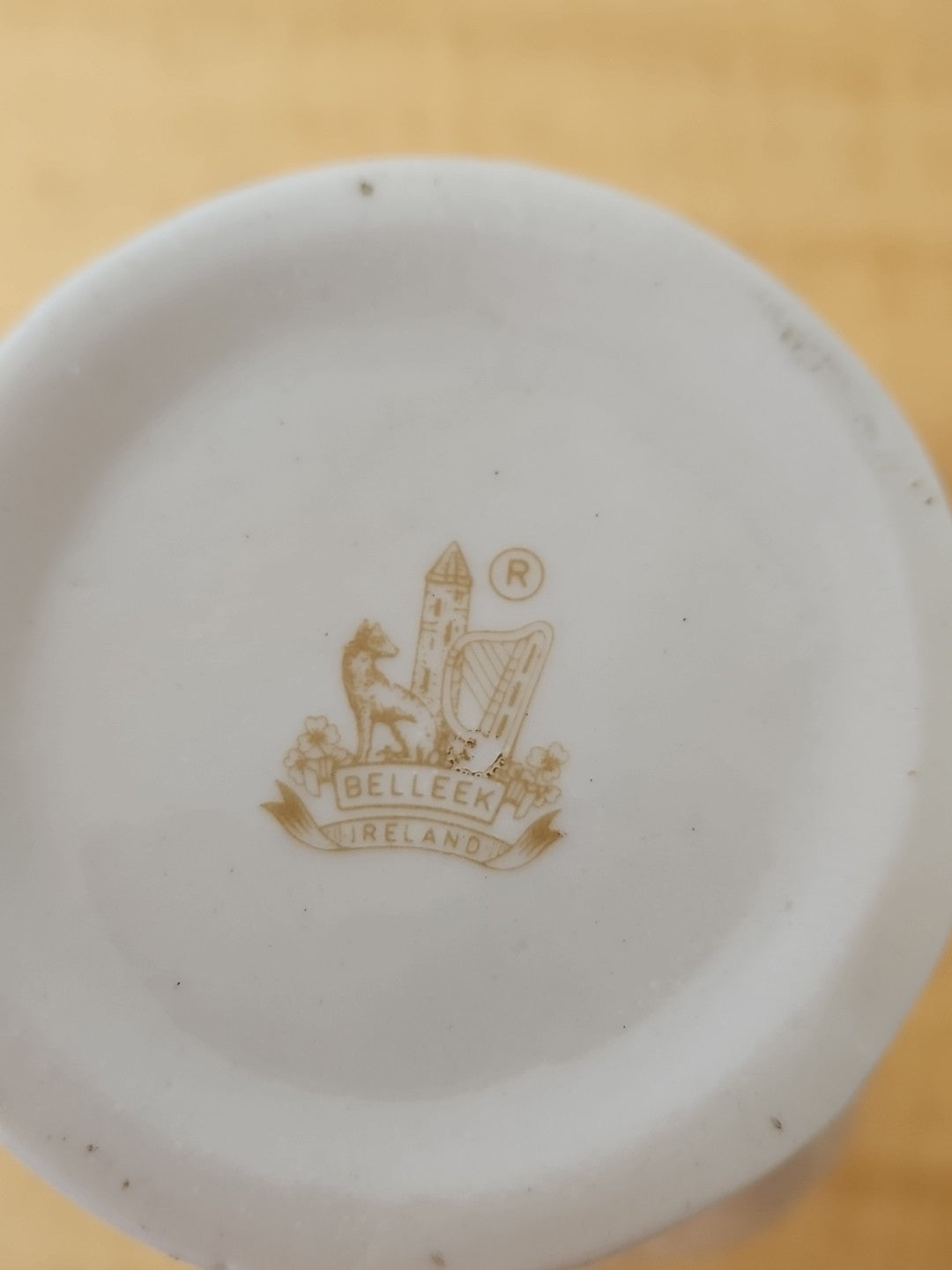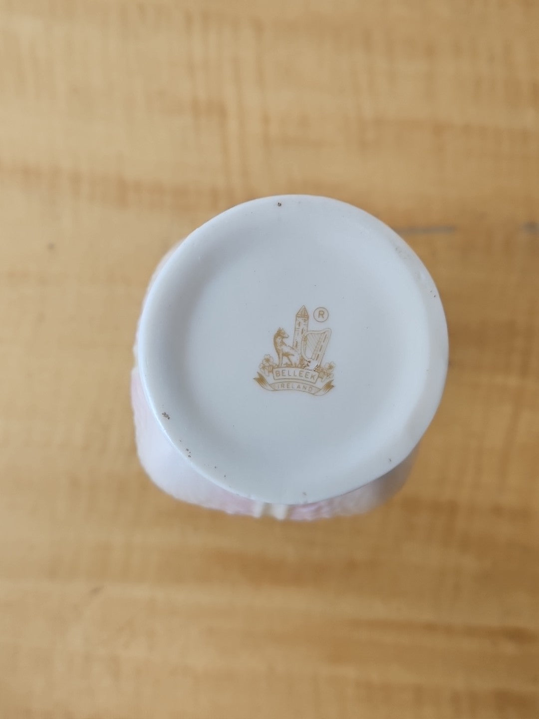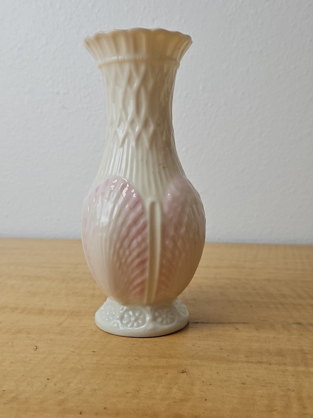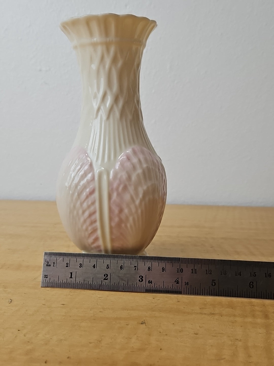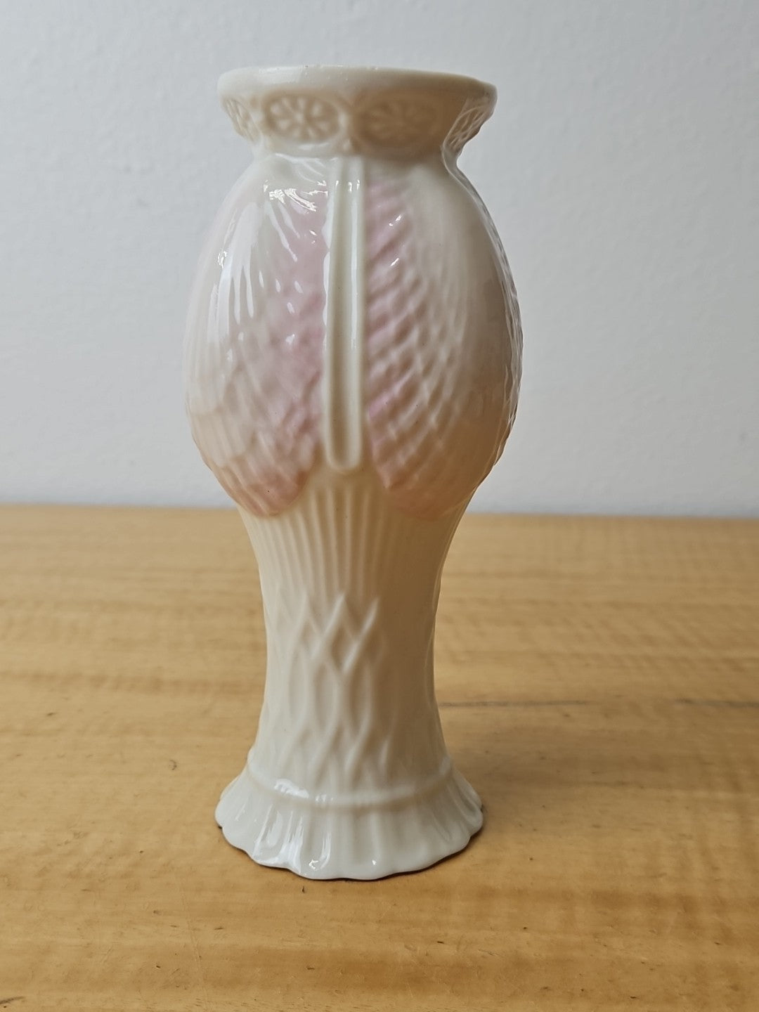 BELLEEK Porcelain Pink Shell VASE 7th Mark Gold Made in Ireland (1980-1993)