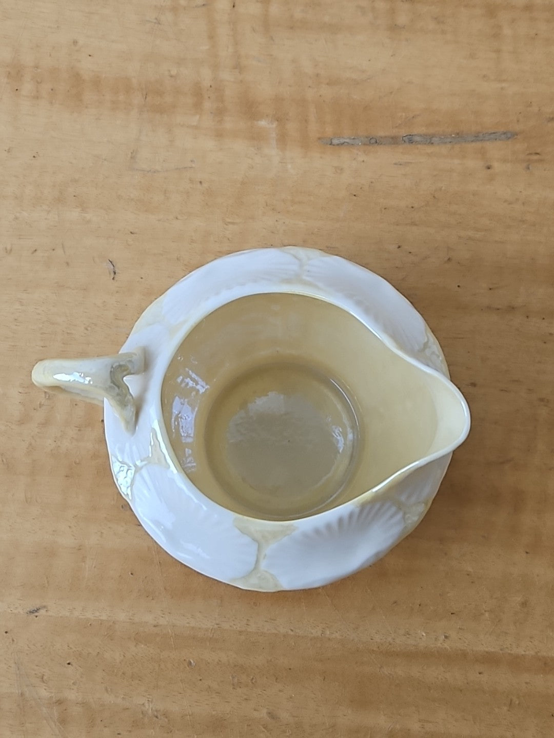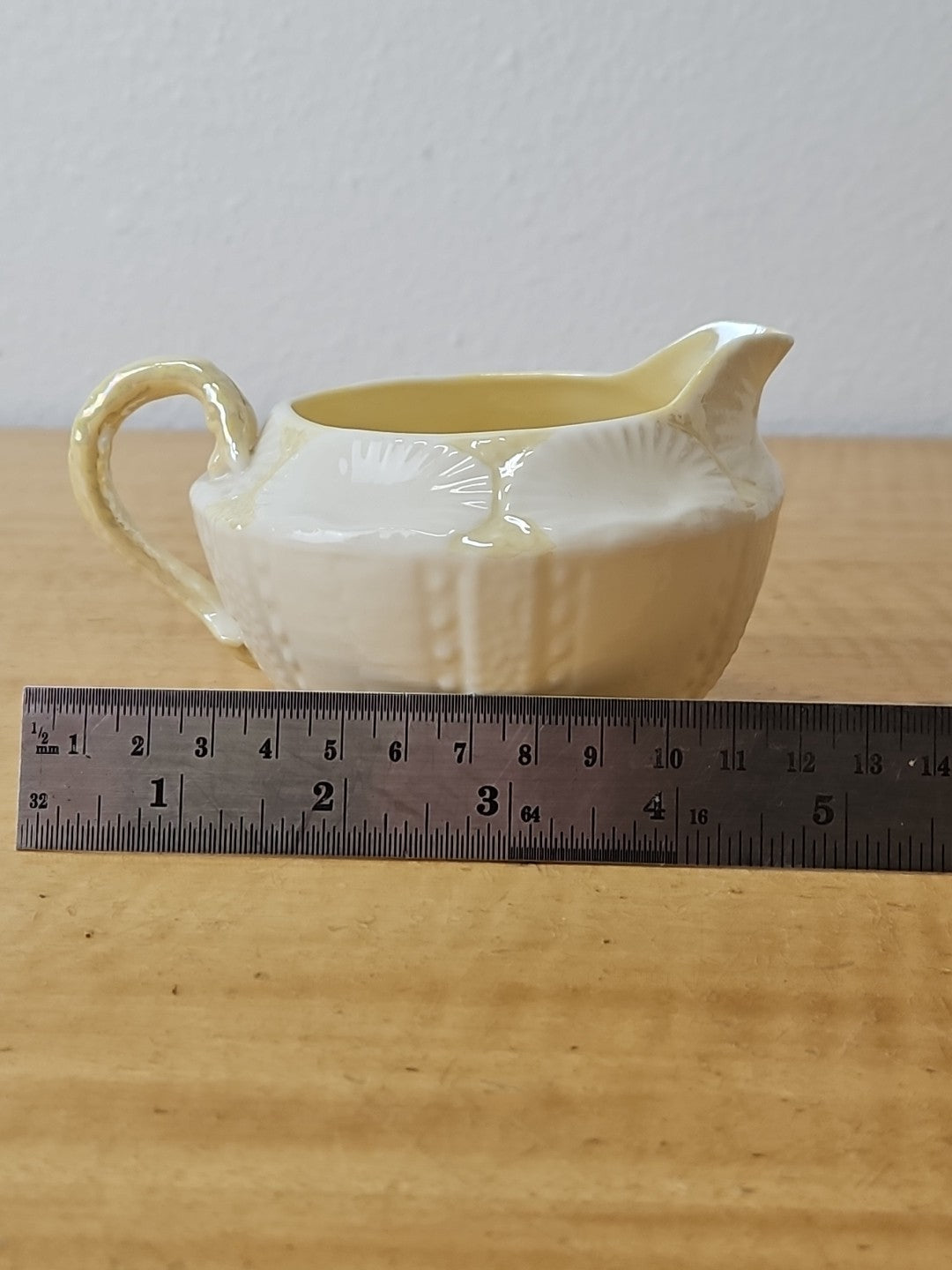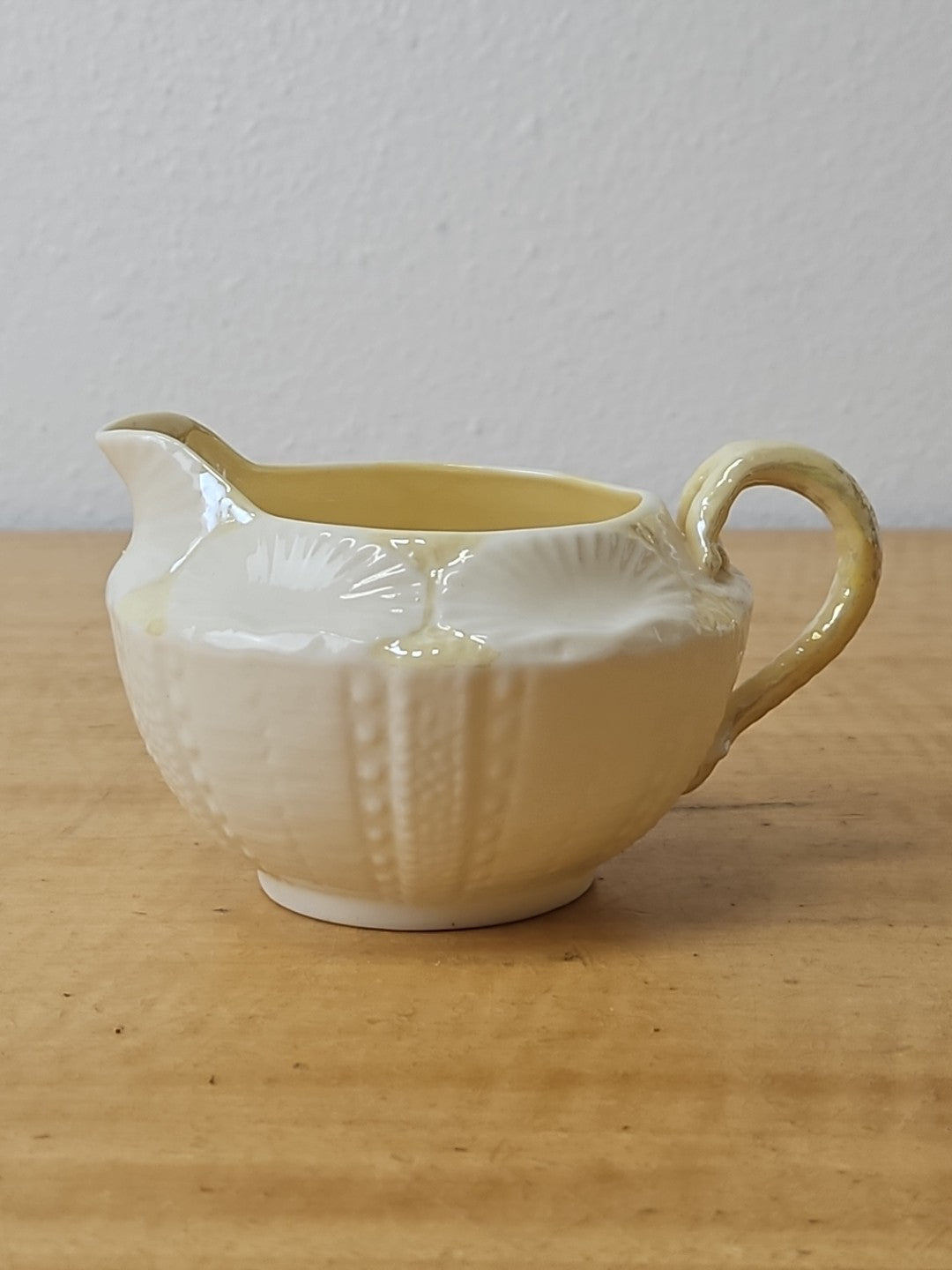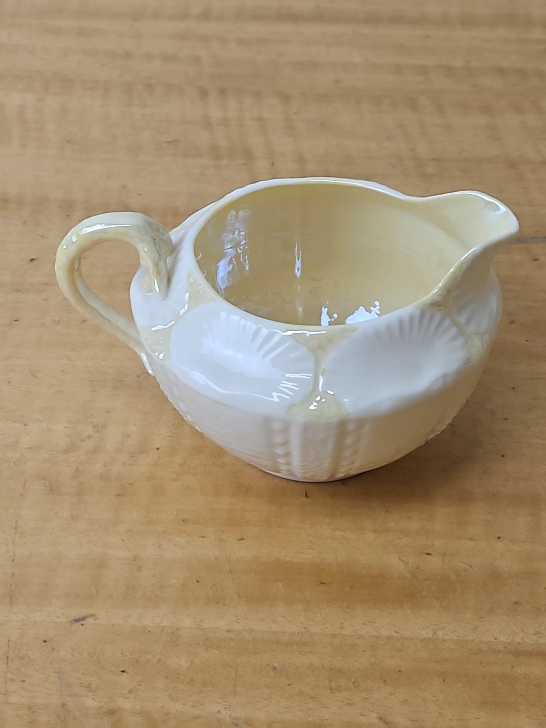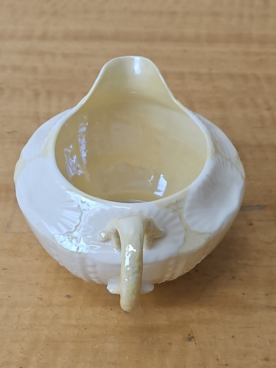 BELLEEK Porcelain Shell Creamer 5th Mark Green Made in Ireland (1955-1965)