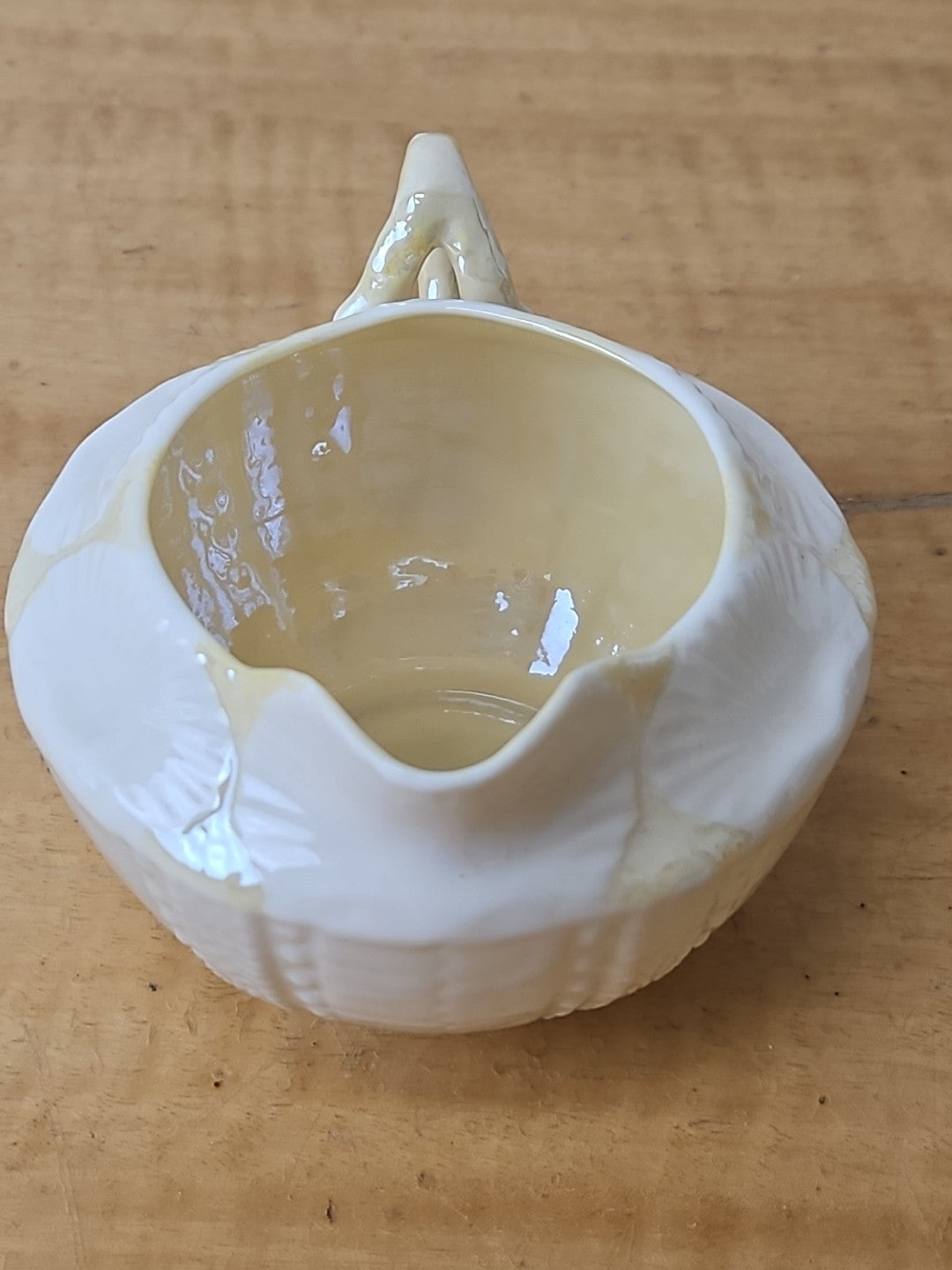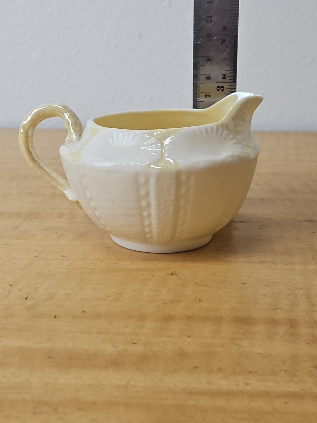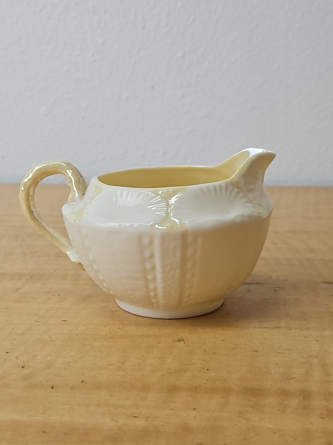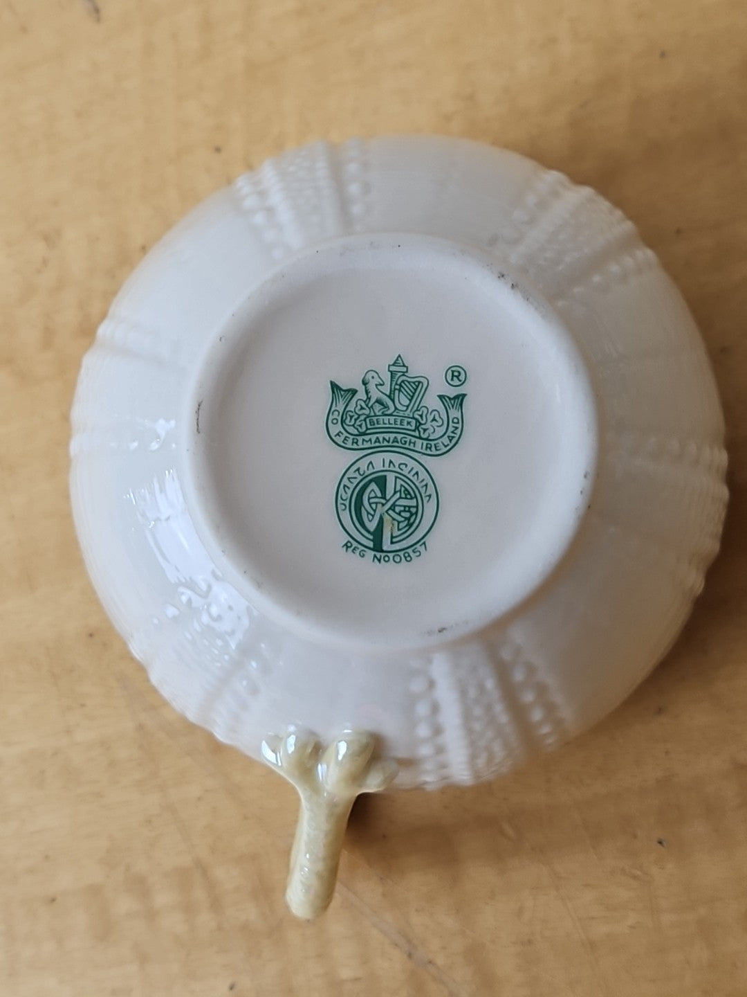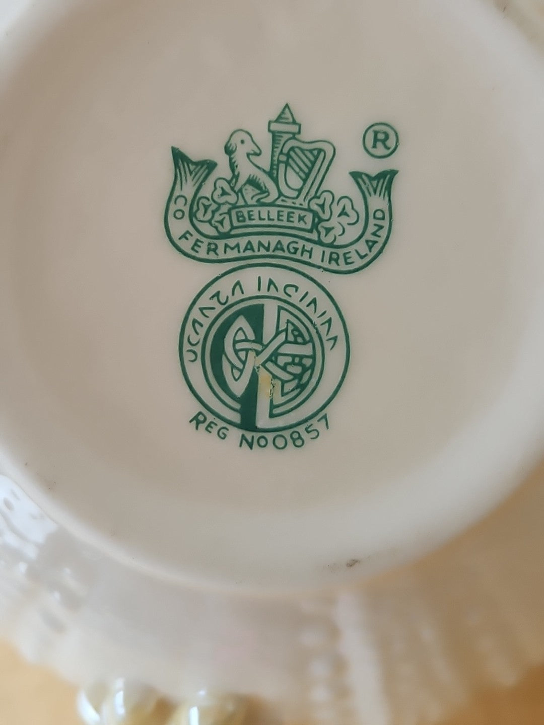 BELLEEK Porcelain Shell Creamer 5th Mark Green Made in Ireland (1955-1965)