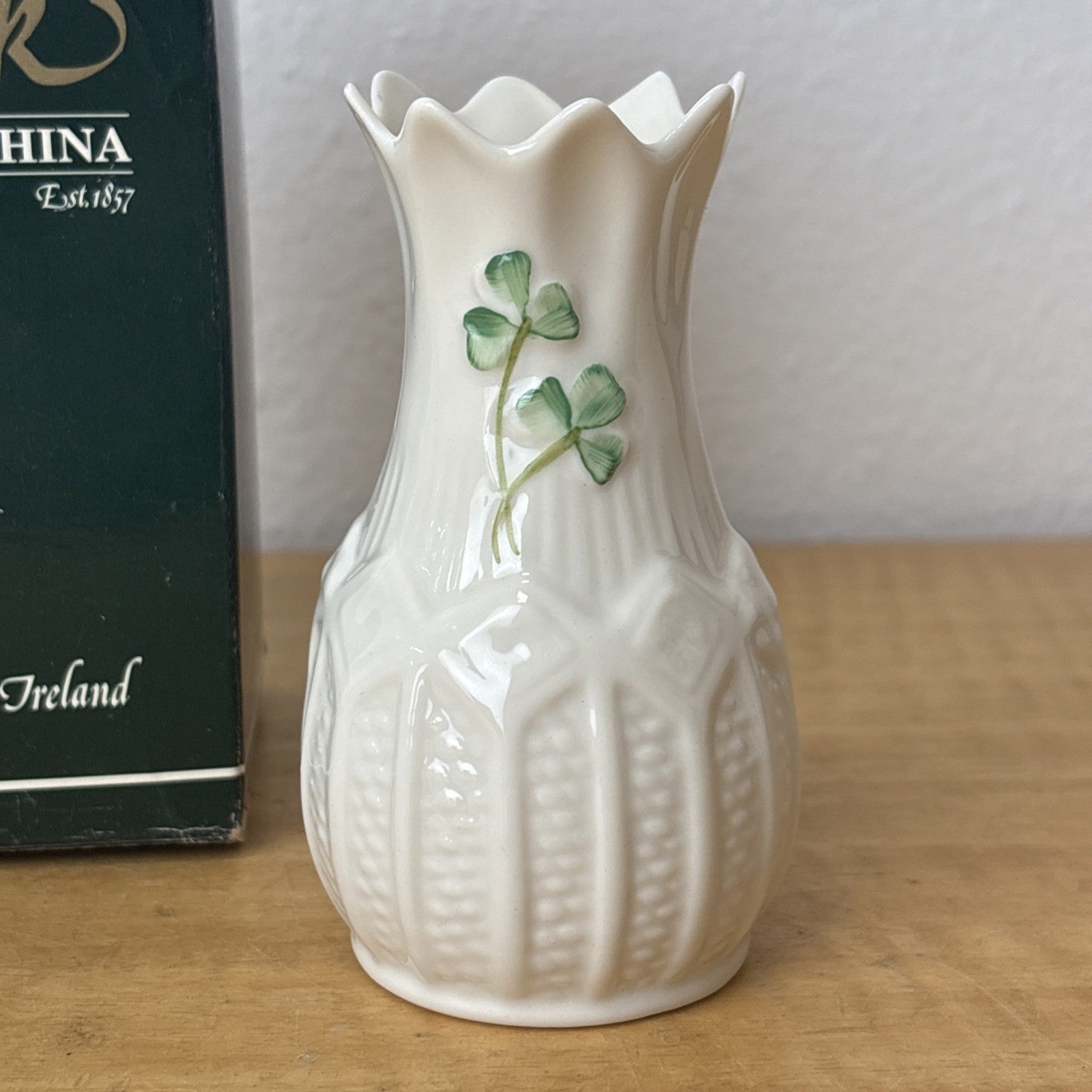 Belleek Vase - Cashel Mini - Ireland - Shamrocks Design