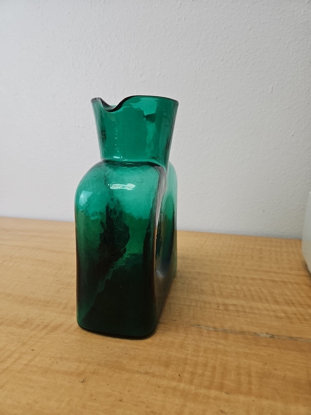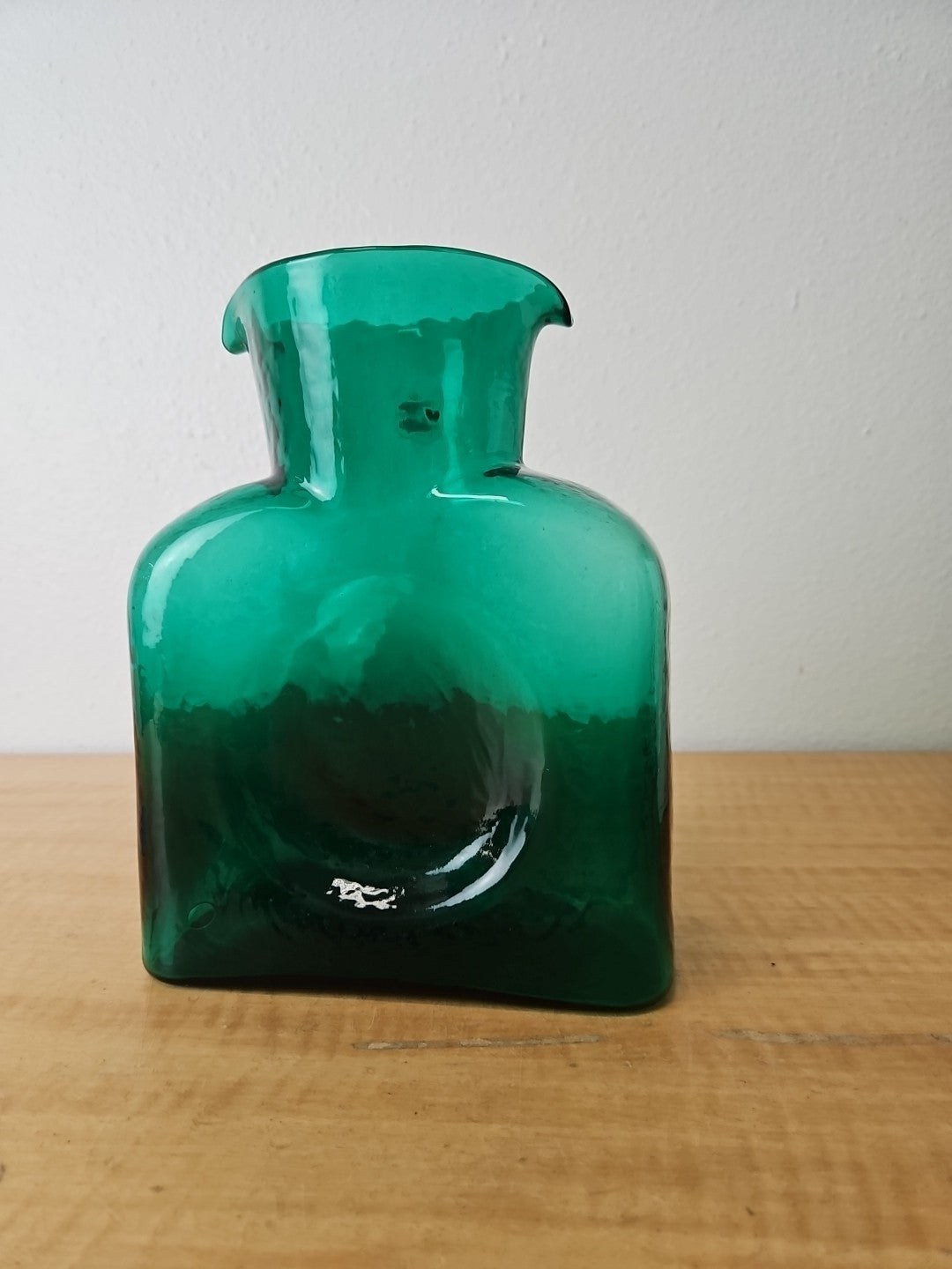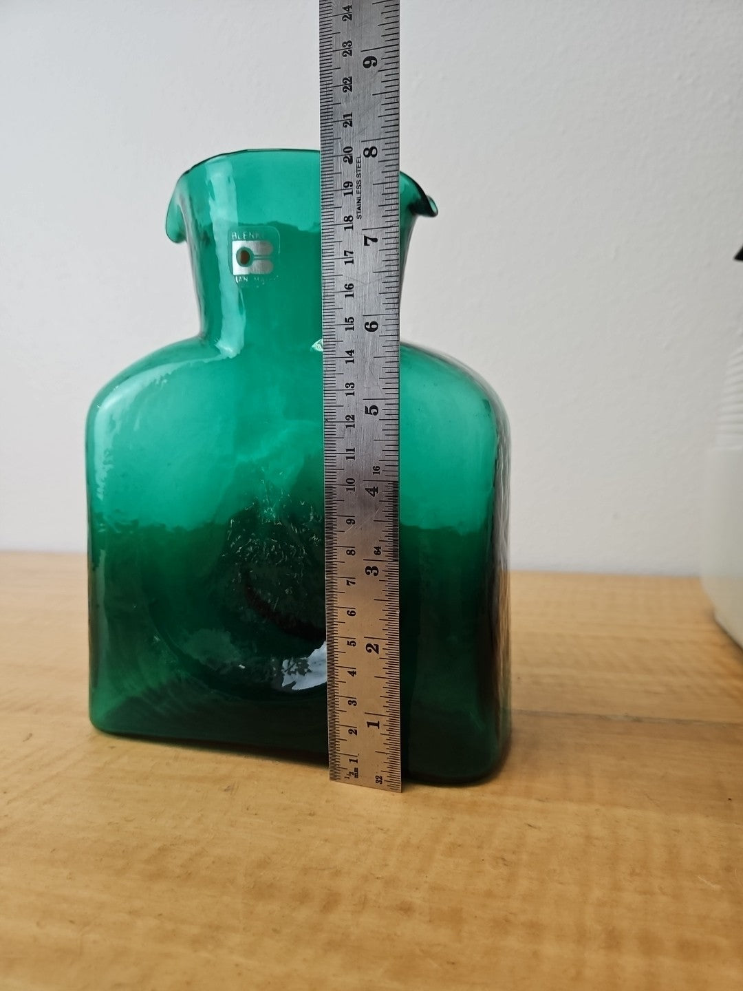 BLENKO Emerald Green 384 DBL SPOUT ART GLASS OPEN WATER BOTTLE PITCHER CARAFE