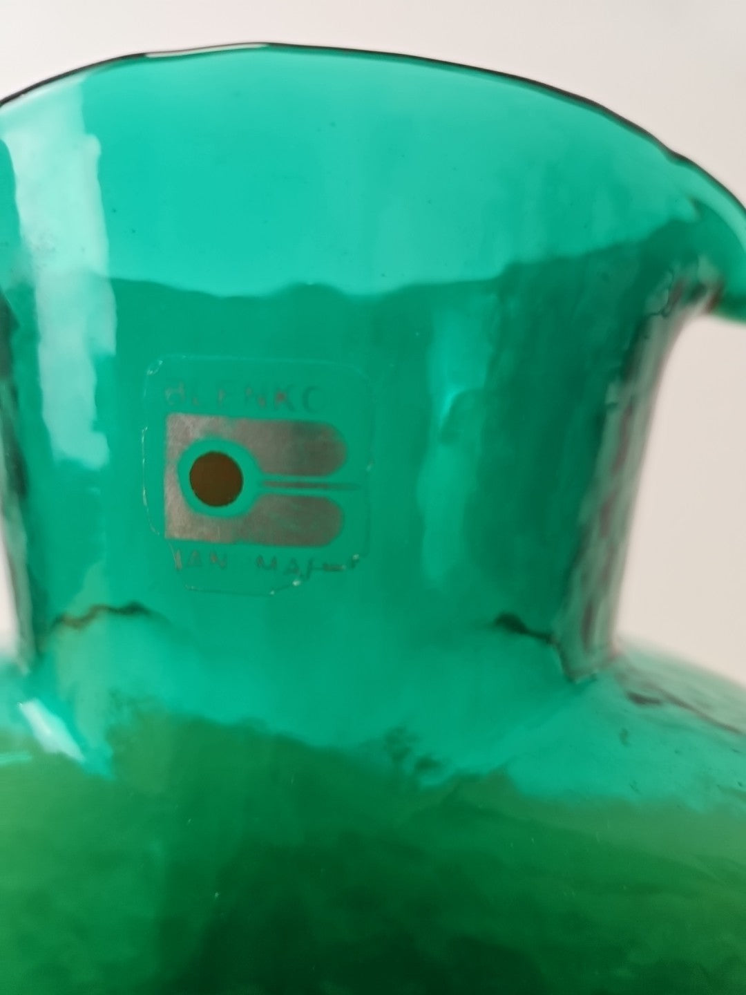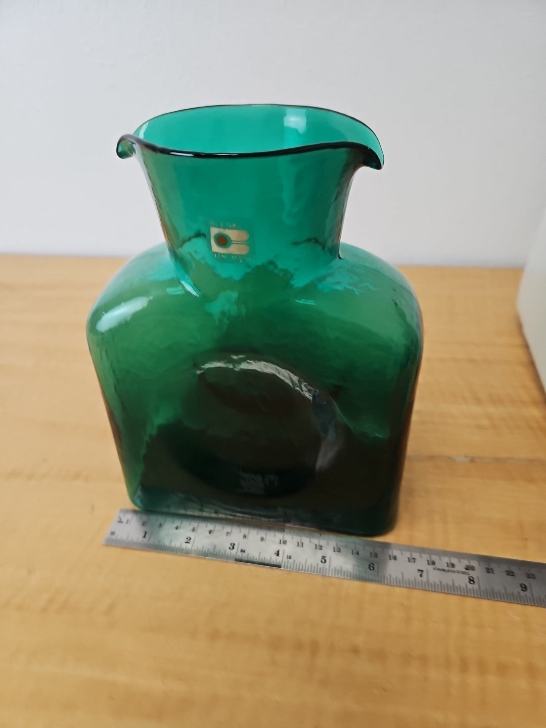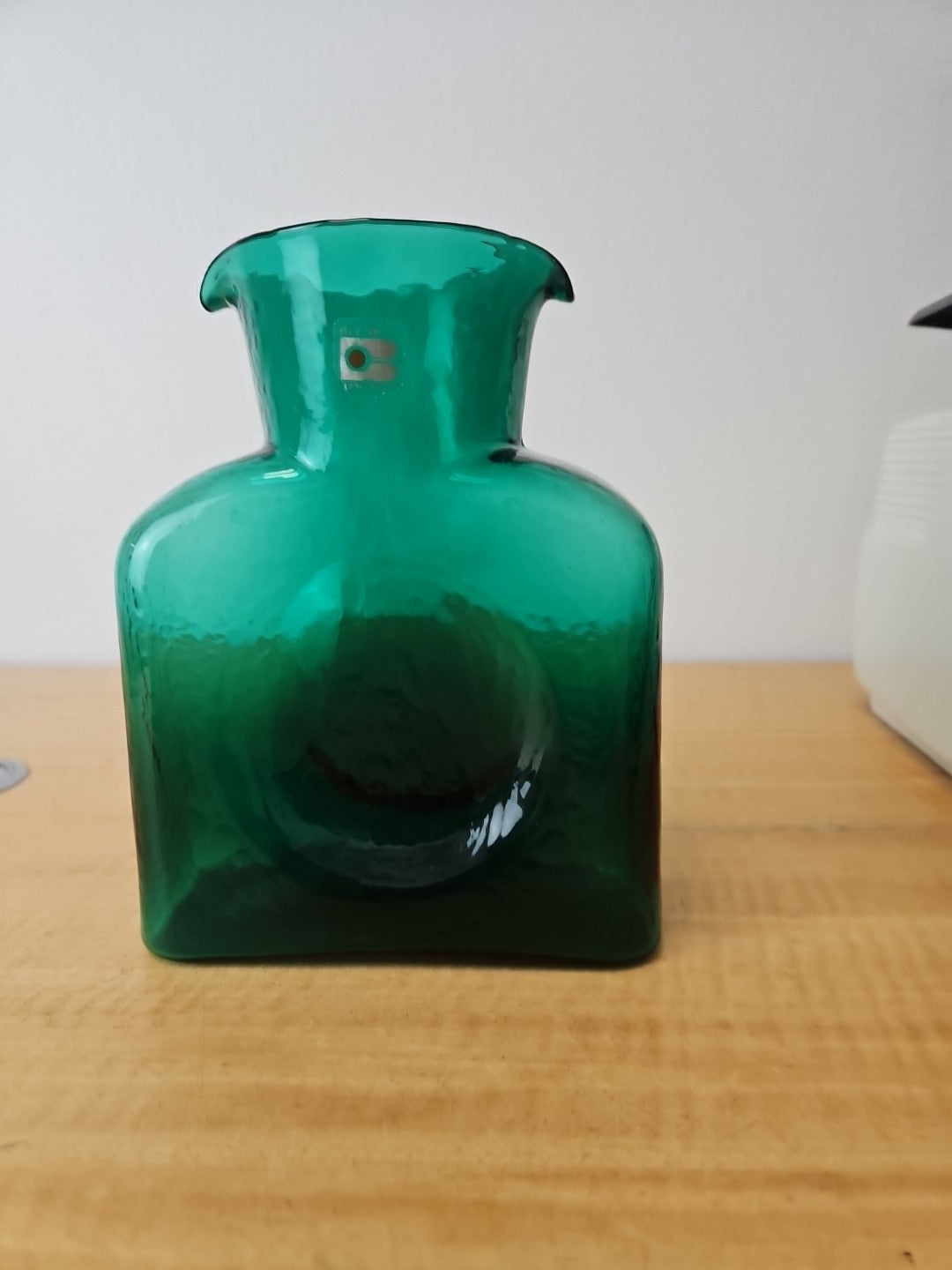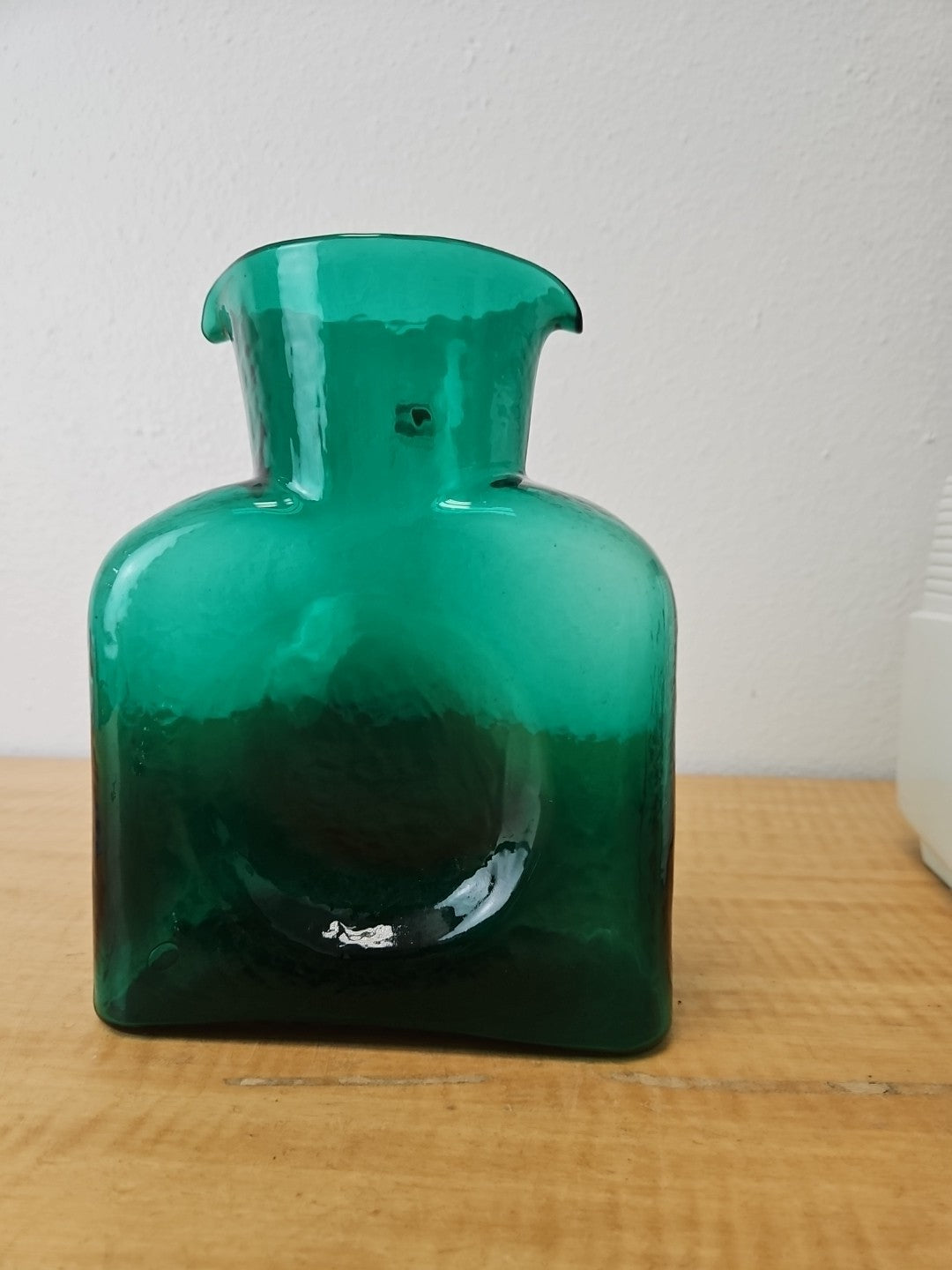 BLENKO Emerald Green 384 DBL SPOUT ART GLASS OPEN WATER BOTTLE PITCHER CARAFE