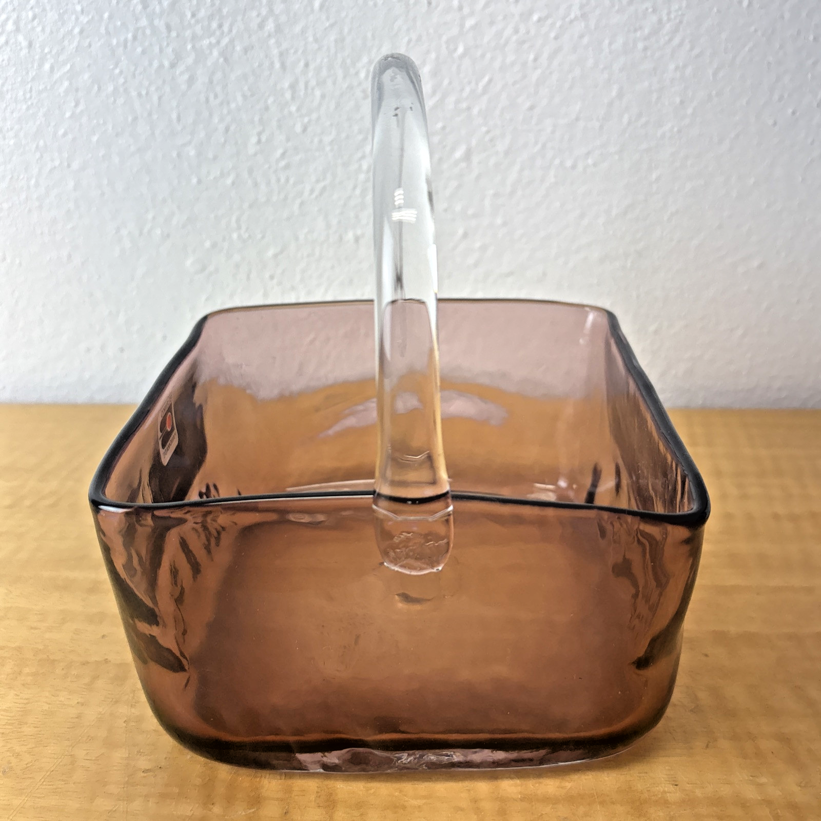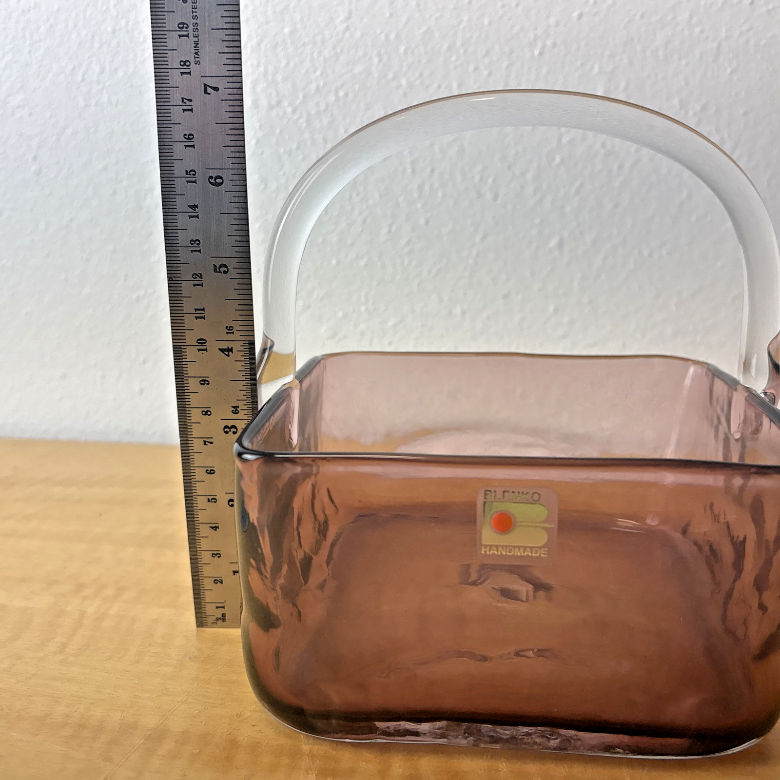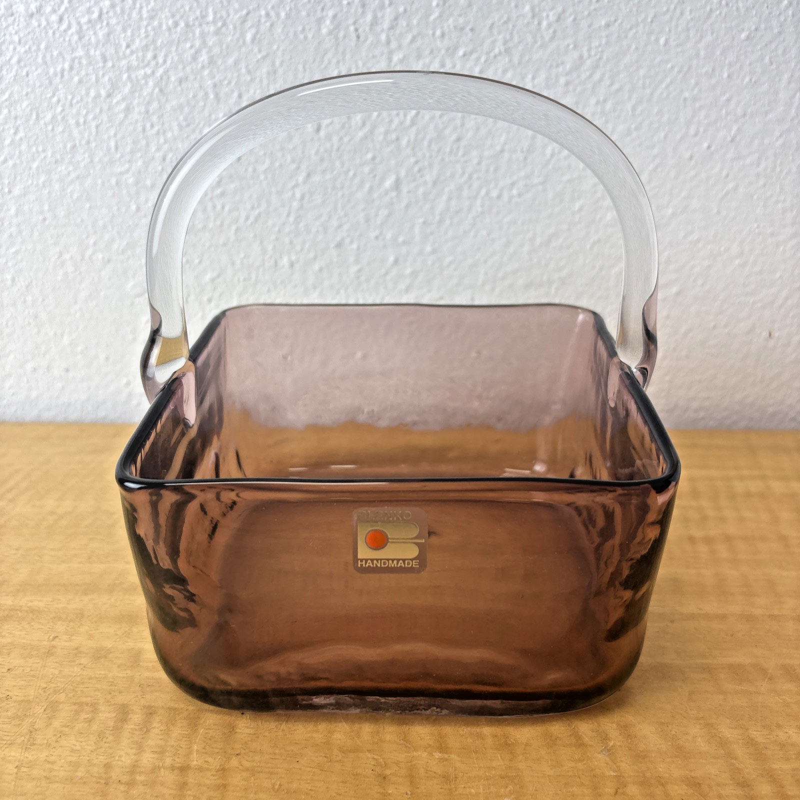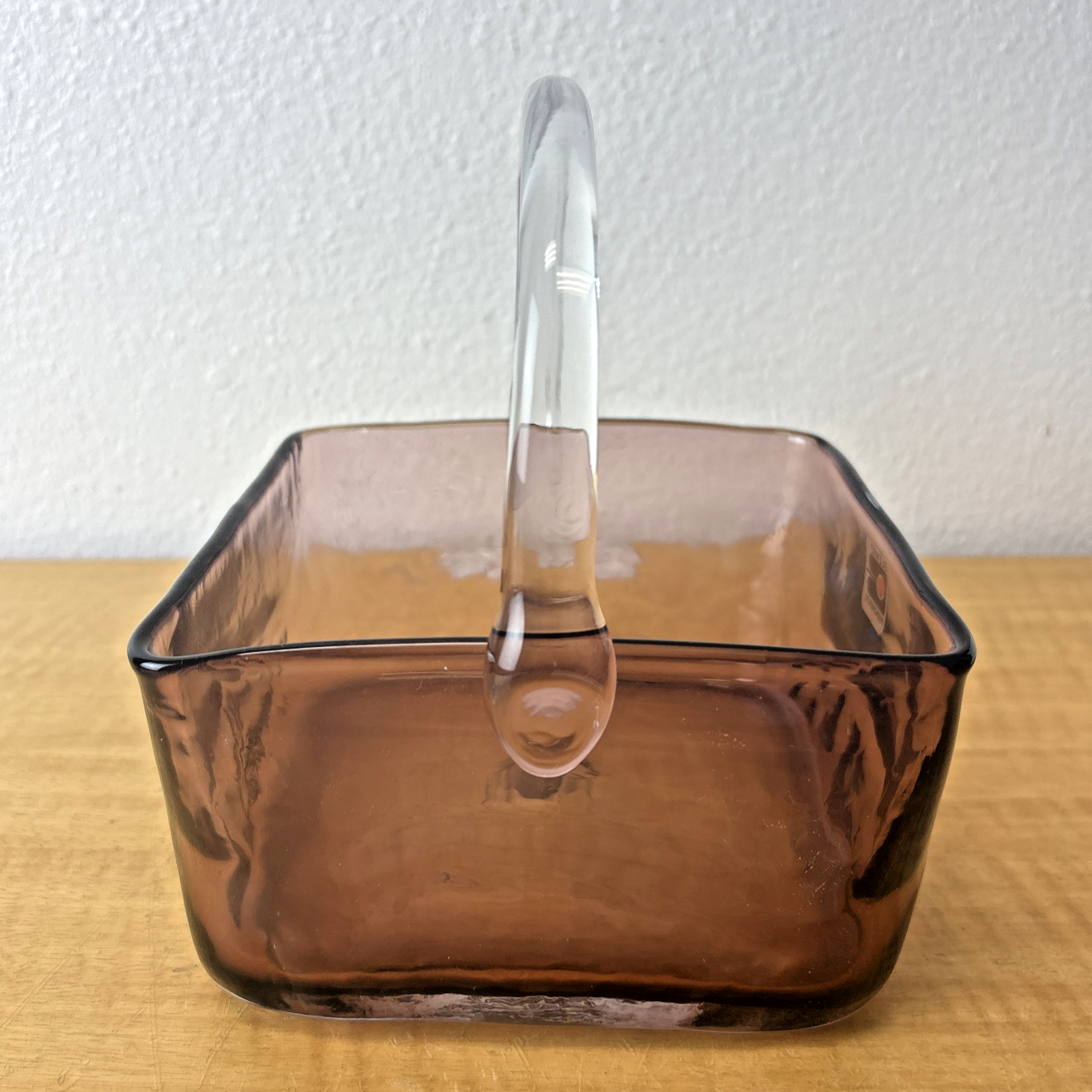 Blenko Handmade Lavender Art Glass Basket with Clear Applied Handle