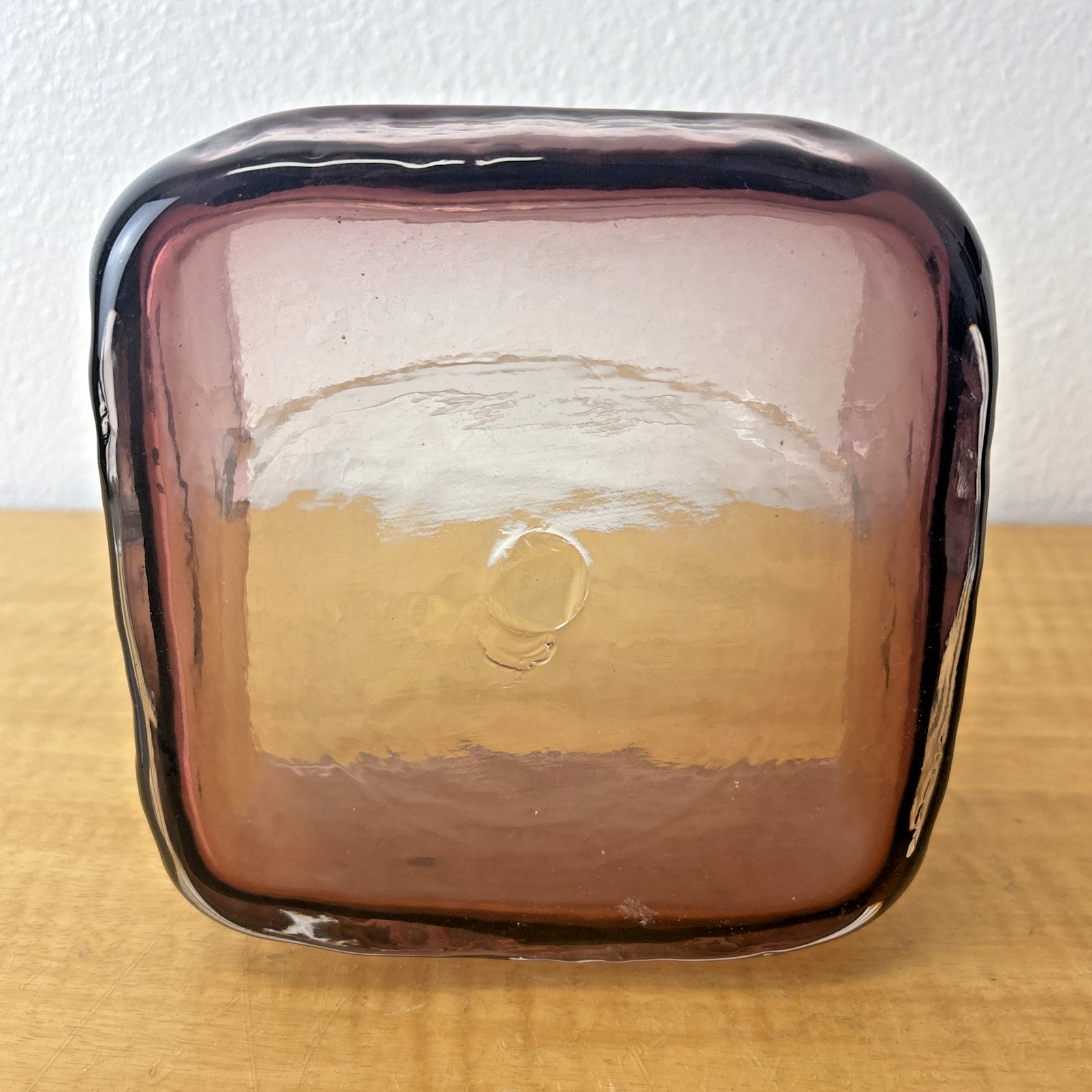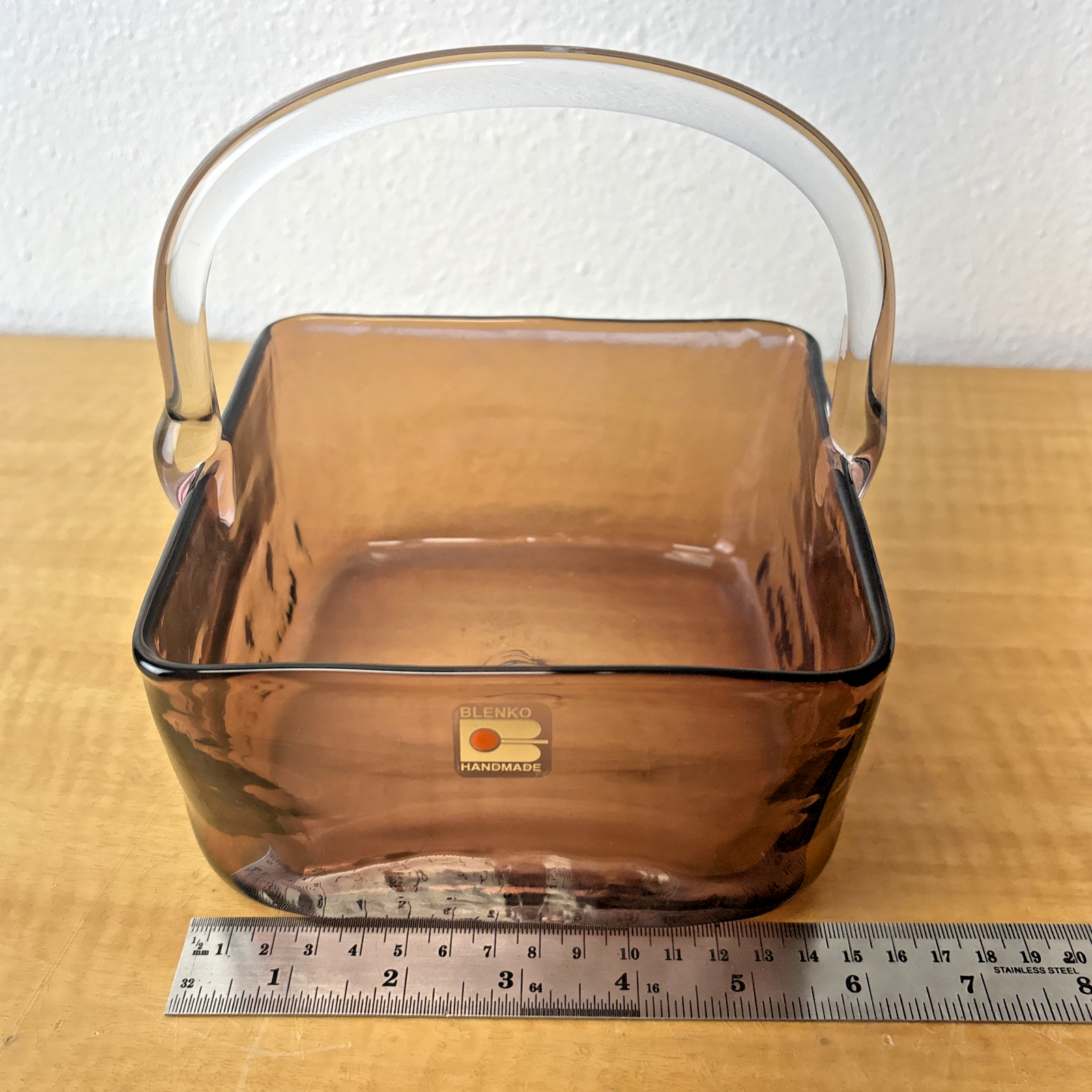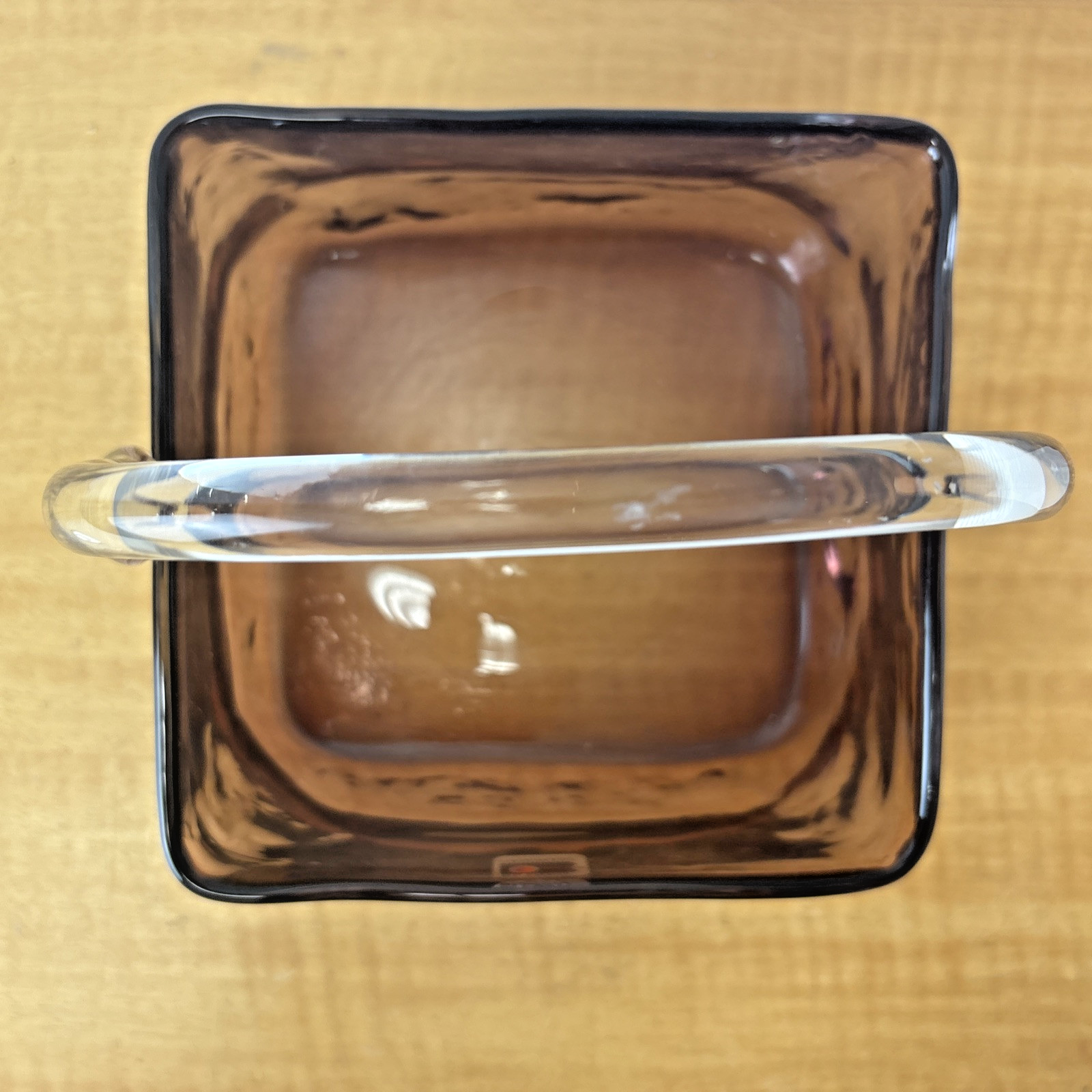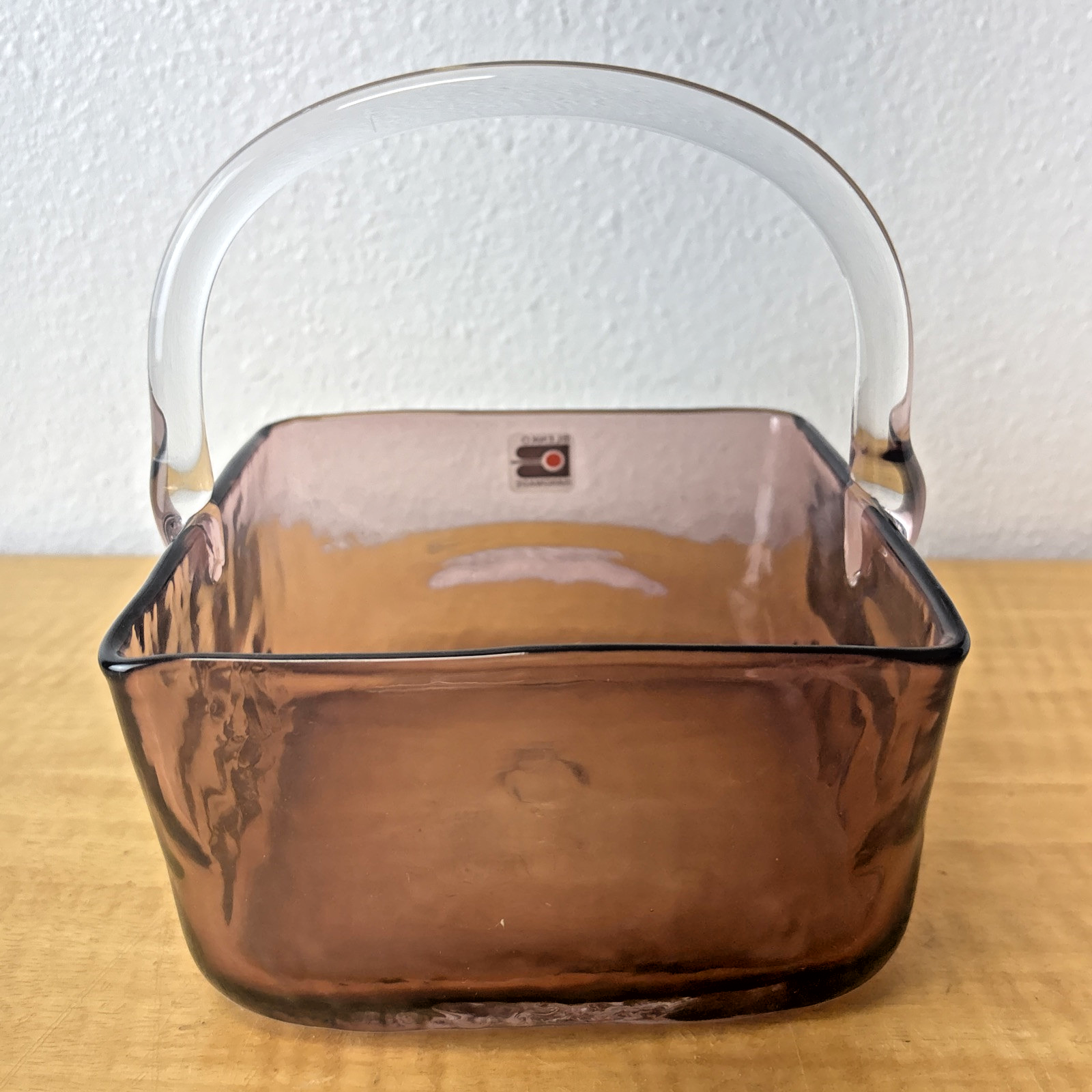 Blenko Handmade Lavender Art Glass Basket with Clear Applied Handle