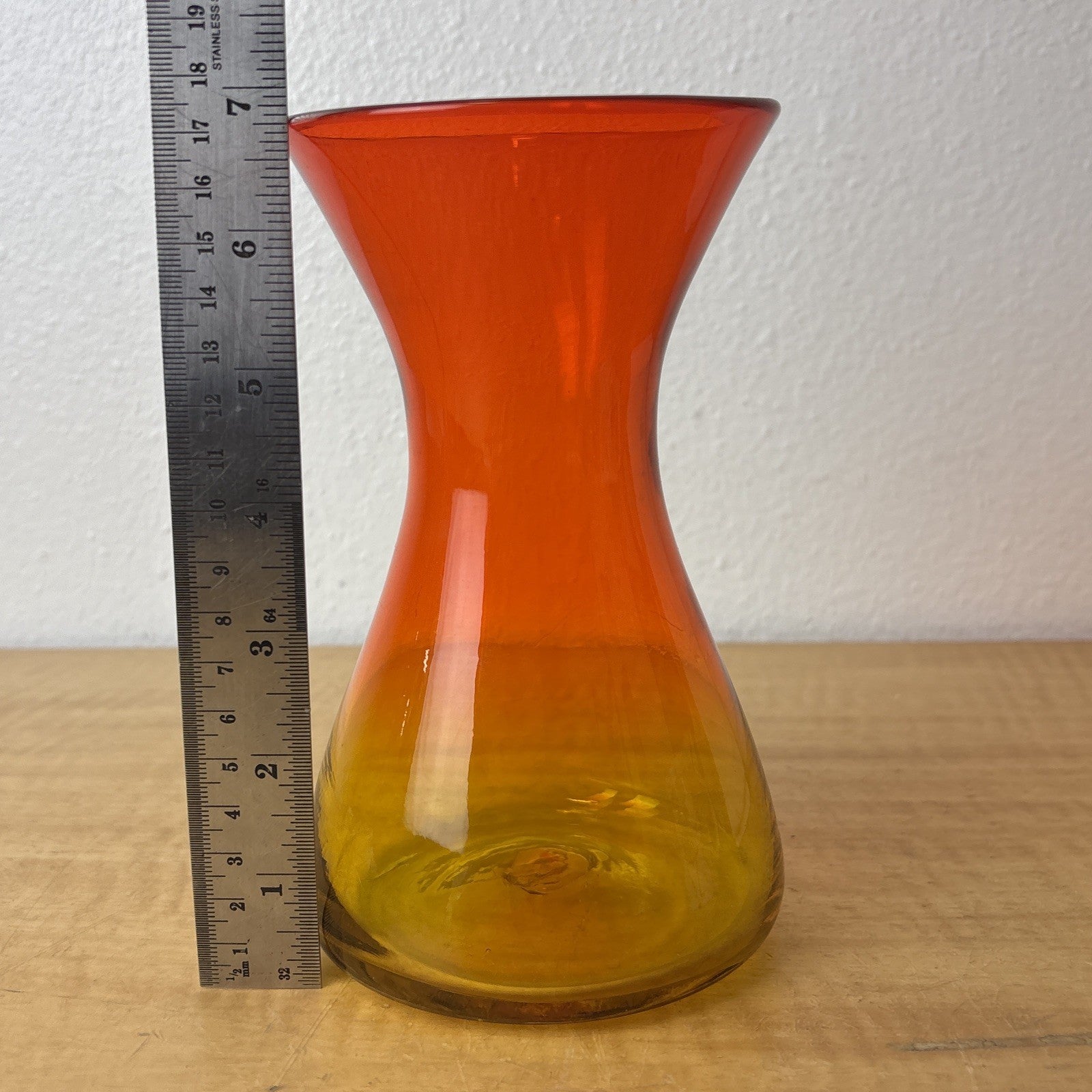 Blenko Tangerine Glass Rare Hourglass Shaped Vase