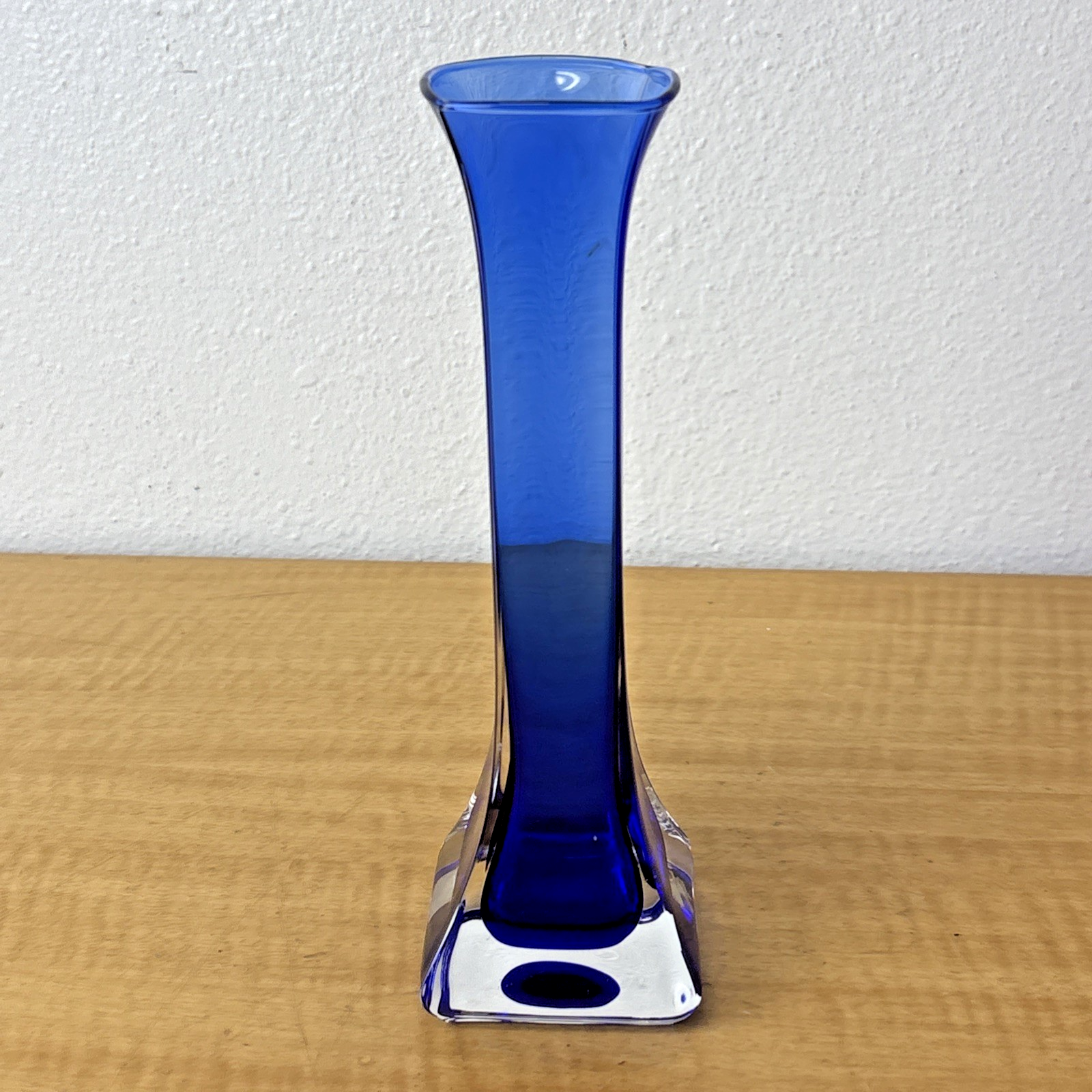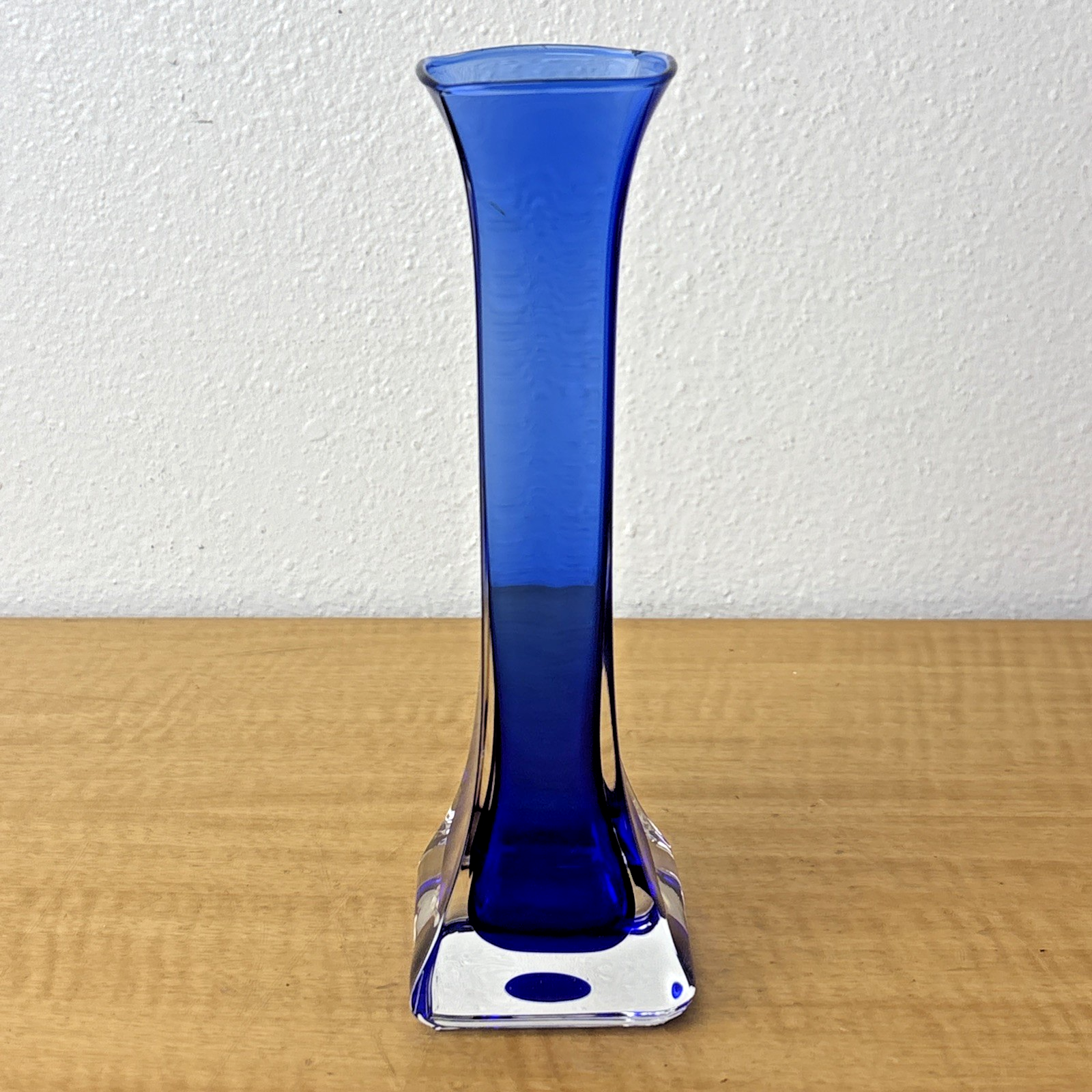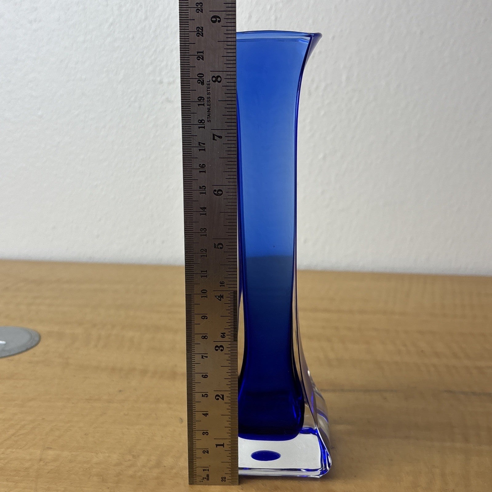Blue Cobalt Art Glass square Flared Vase Murano Style