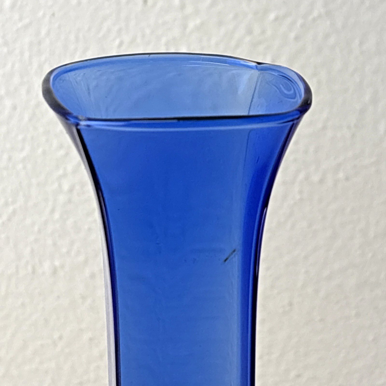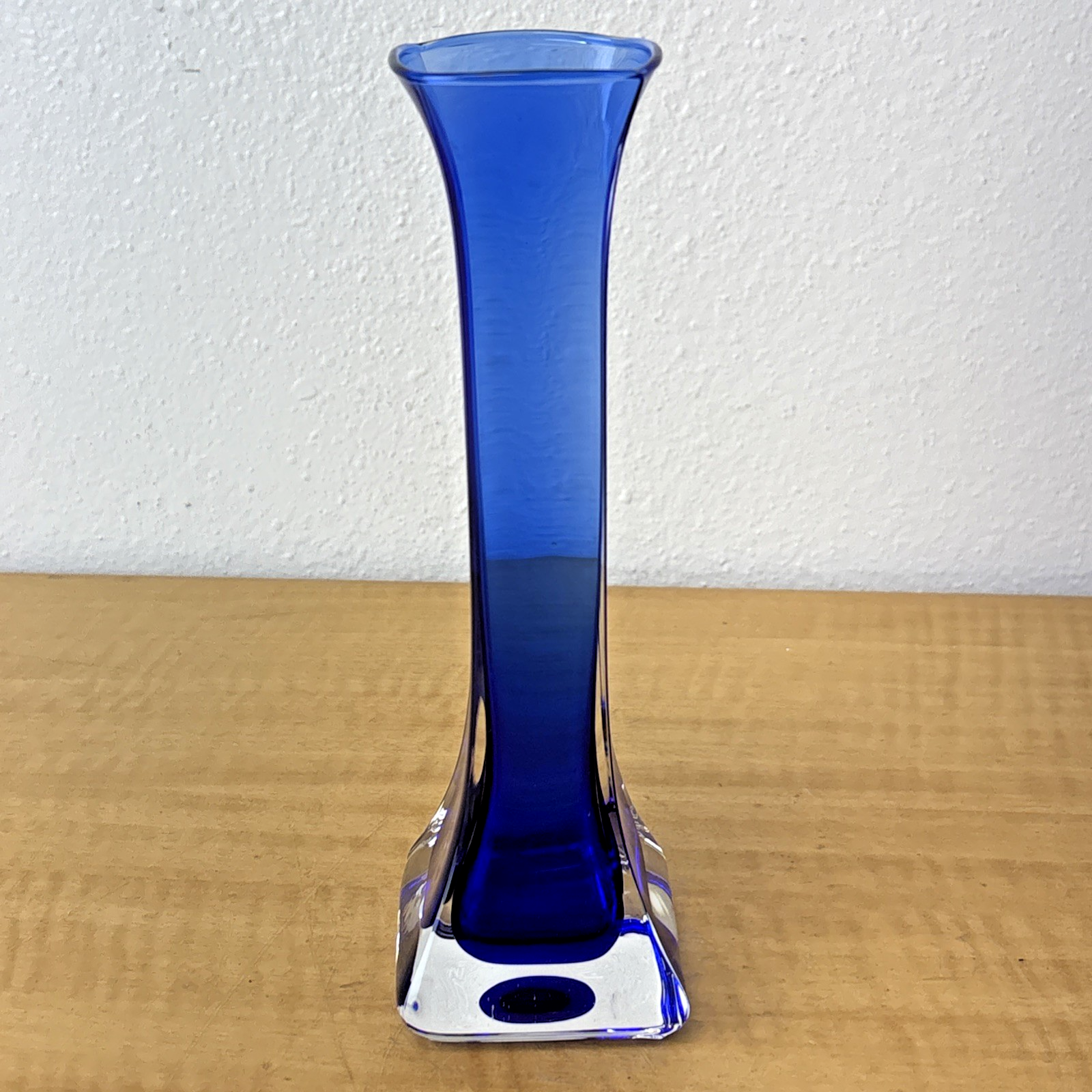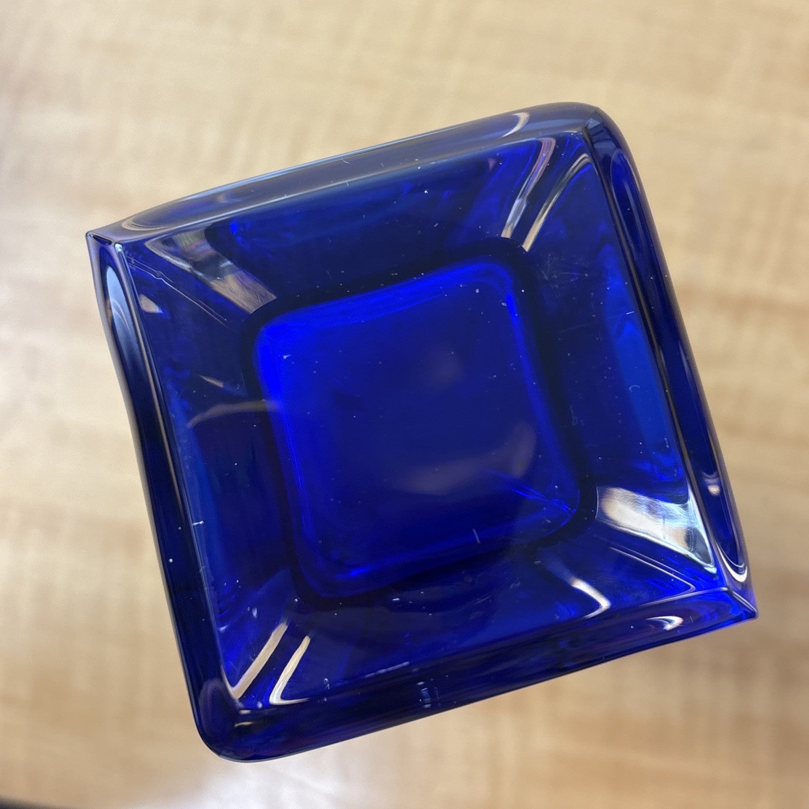 Blue Cobalt Art Glass square Flared Vase Murano Style