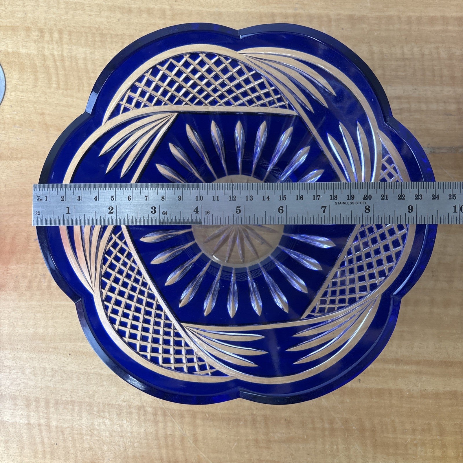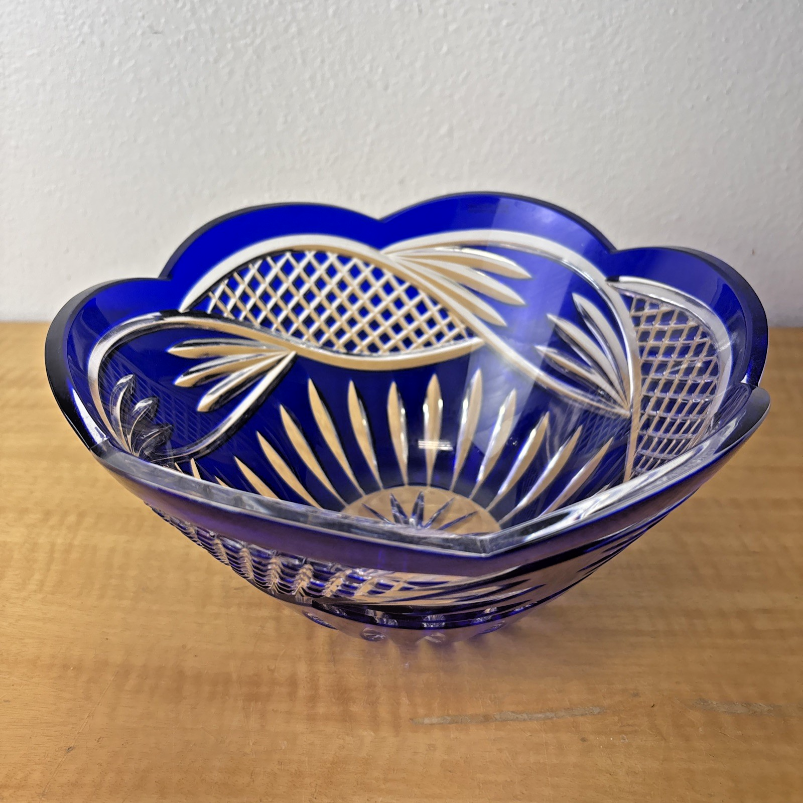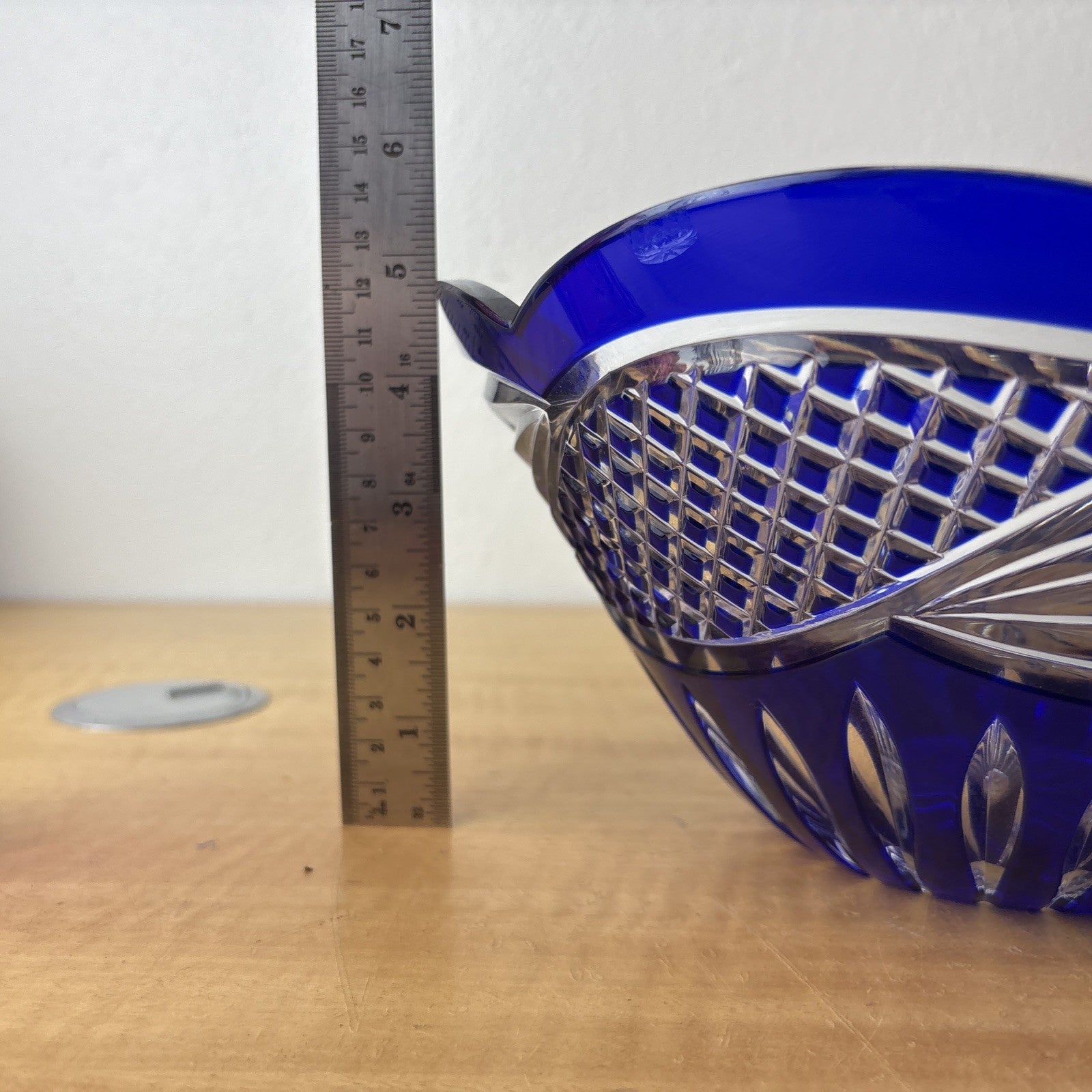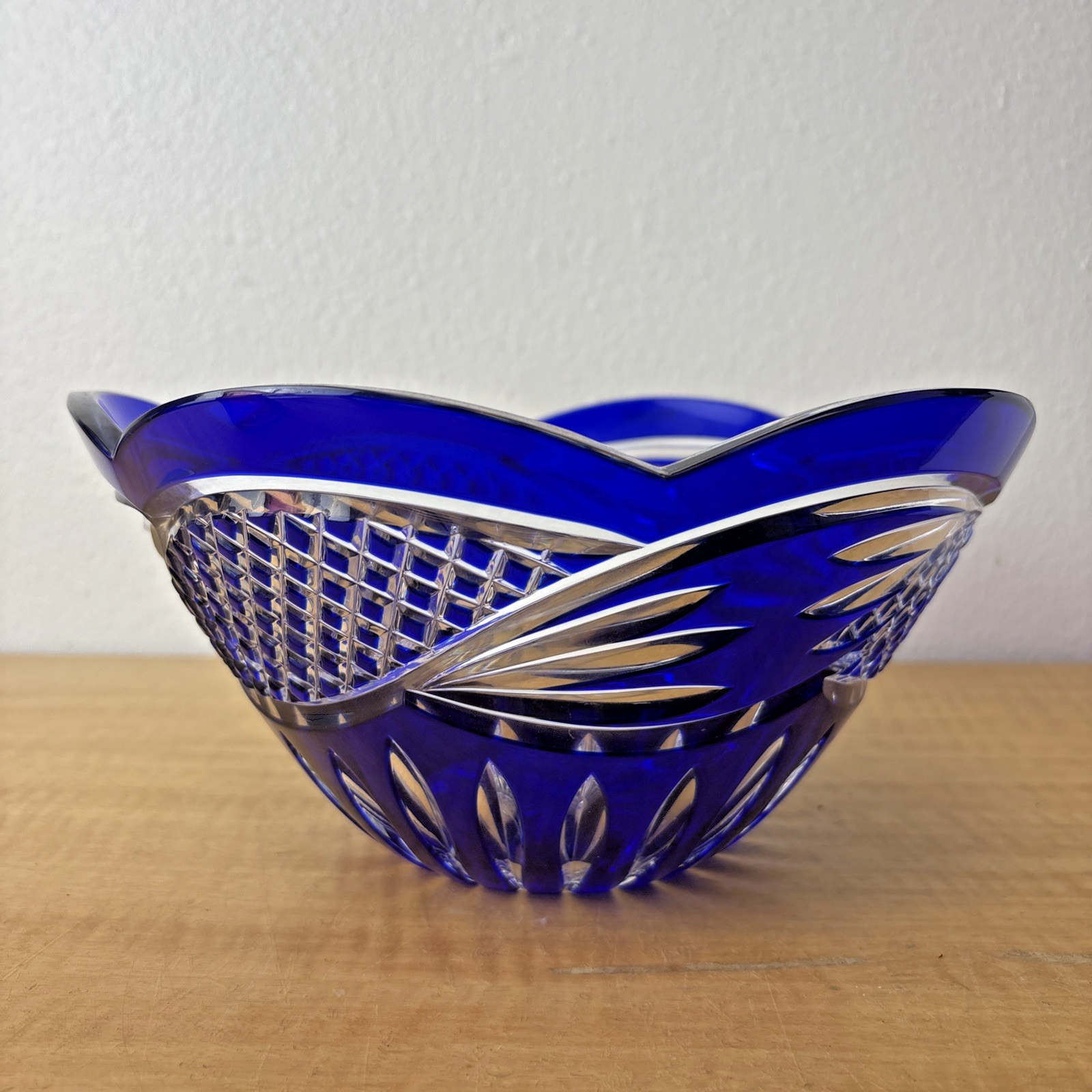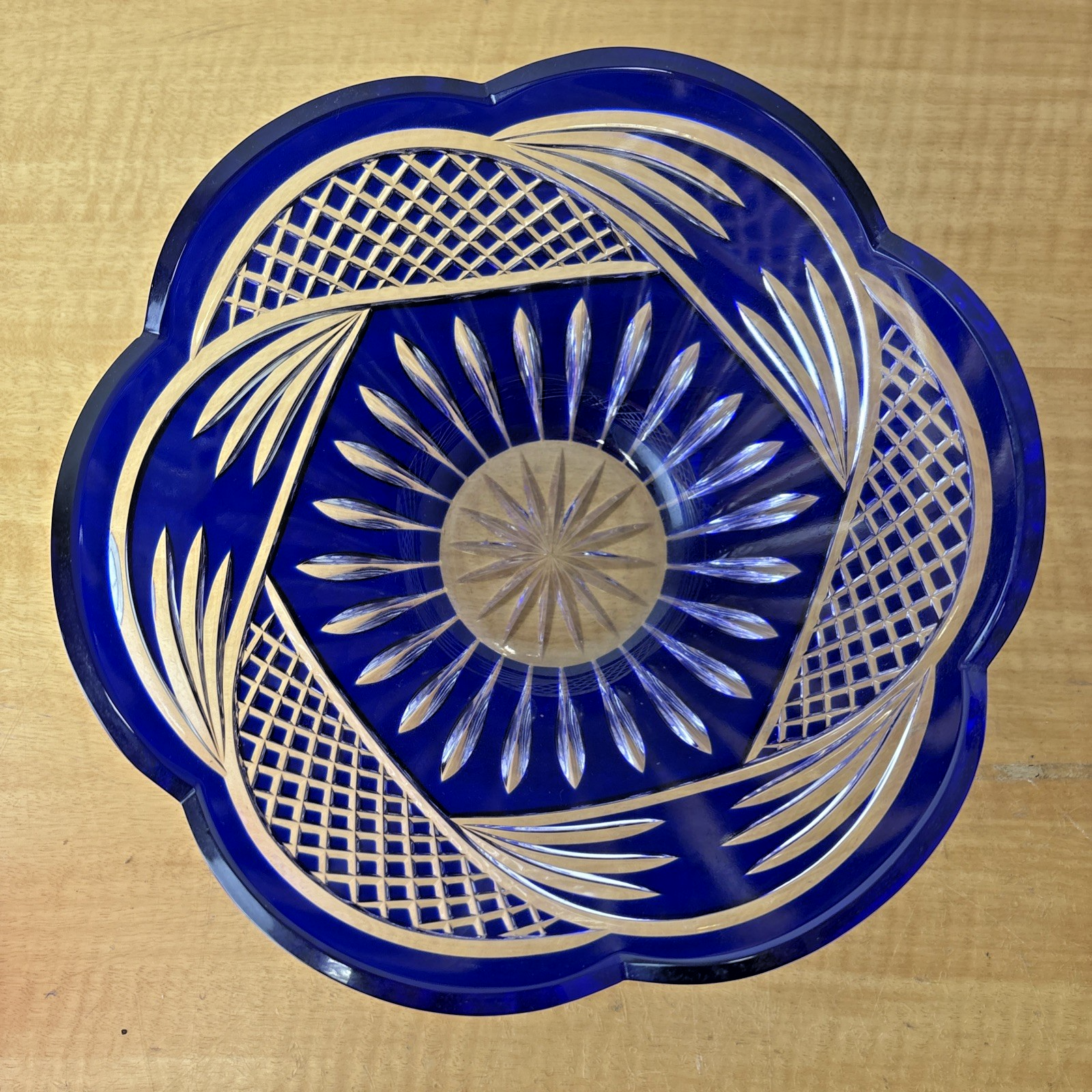 Bohemian Bowl Cobalt Blue Cut Glass 24% Lead Crystal Serving Bowl / Fruit Bowl