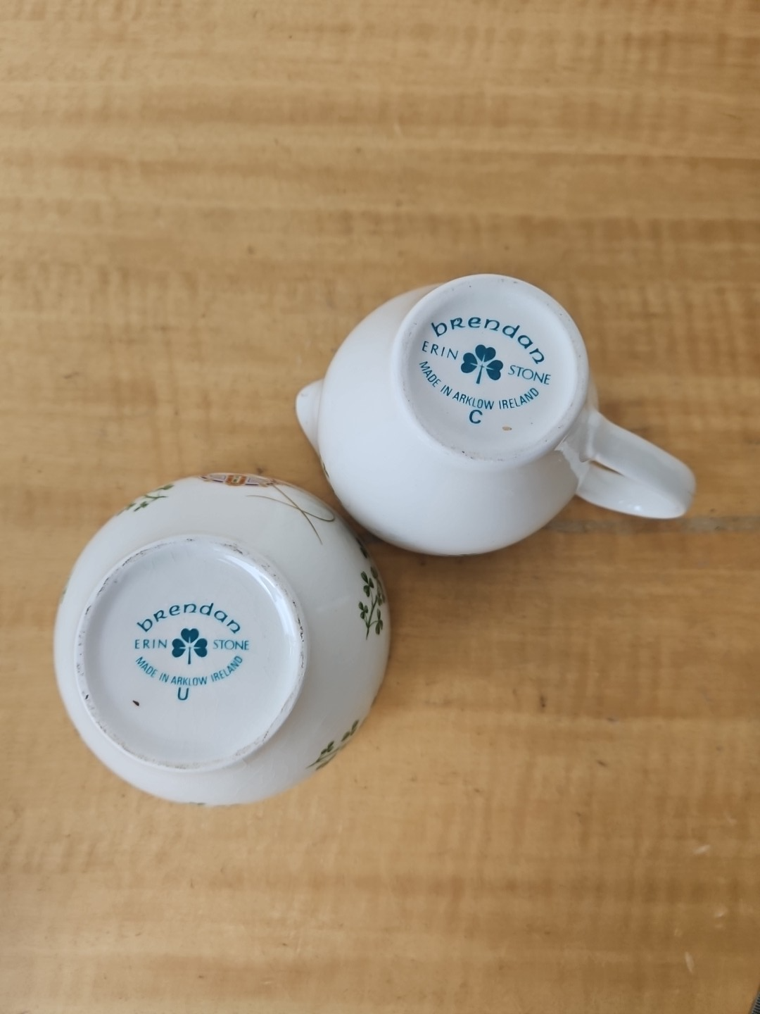 Brendan- Erin Stone- Arklow Ireland Shamrock Cream and Sugar Set C,U