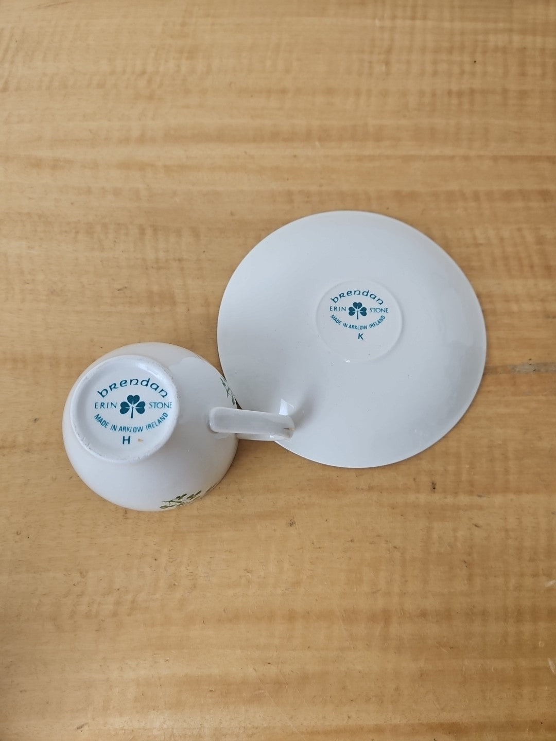 Brendan- Erin Stone- Arklow Ireland Shamrock Tea Cup & Saucer Set H, K (6 avail)
