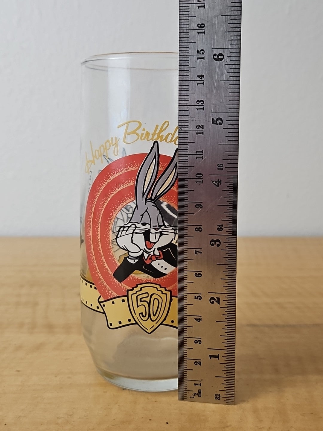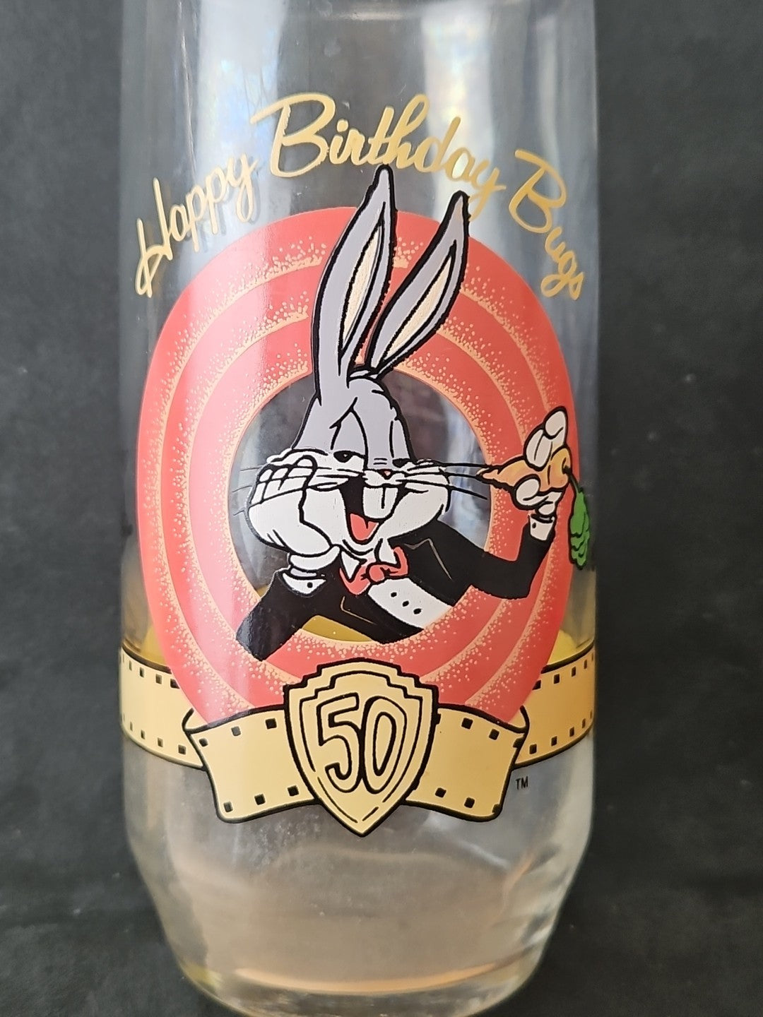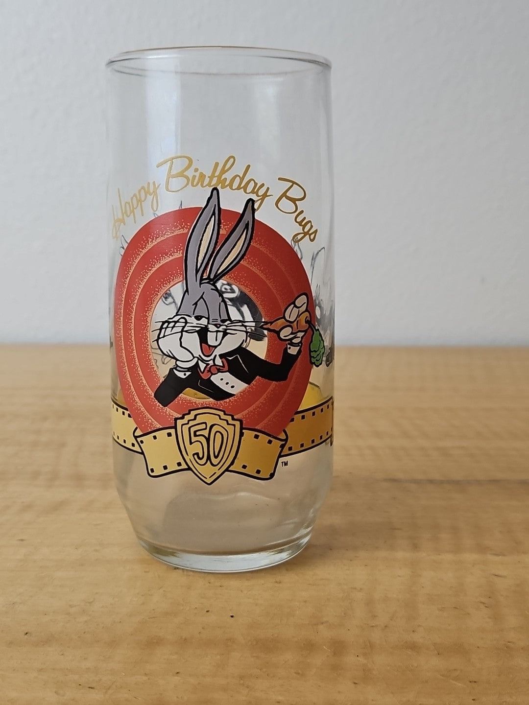 Bugs Bunny Happy Birthday Glass 50th Anniversary 1990 Vintage Looney Tunes WB