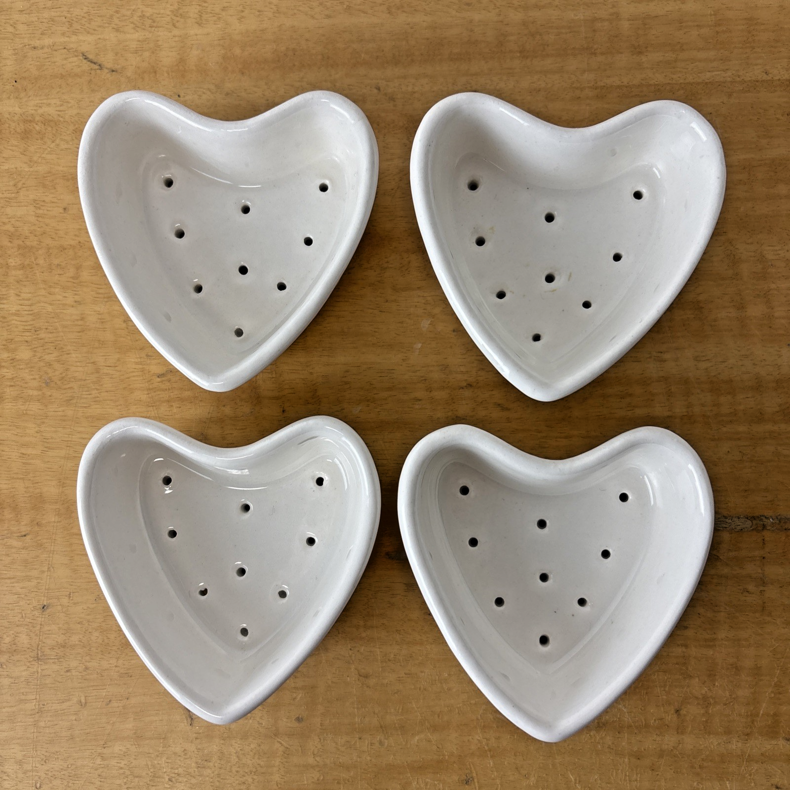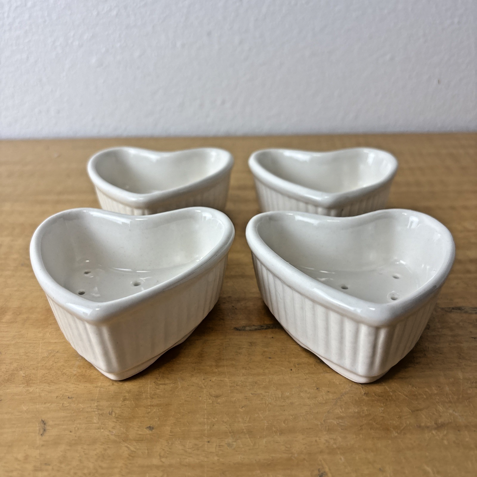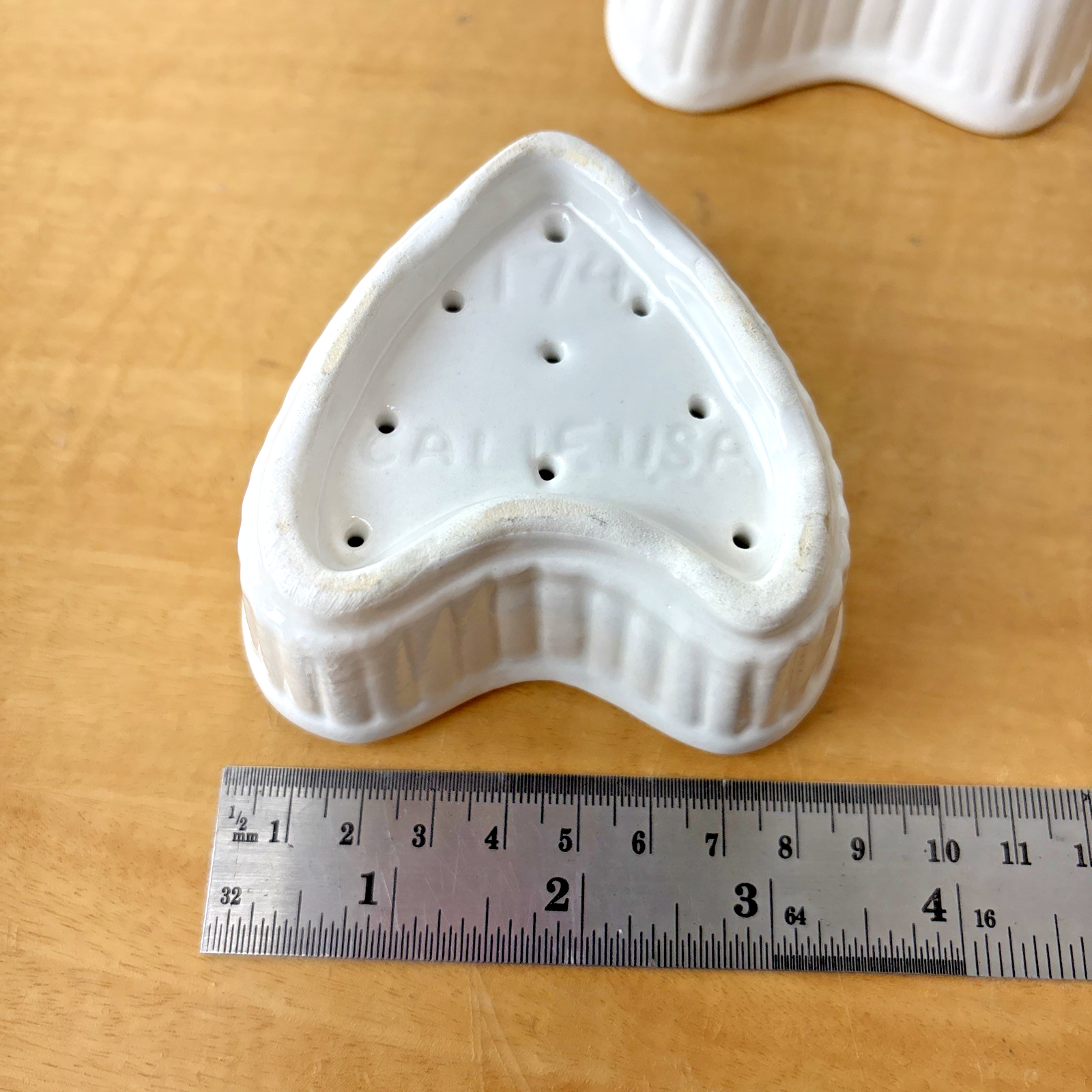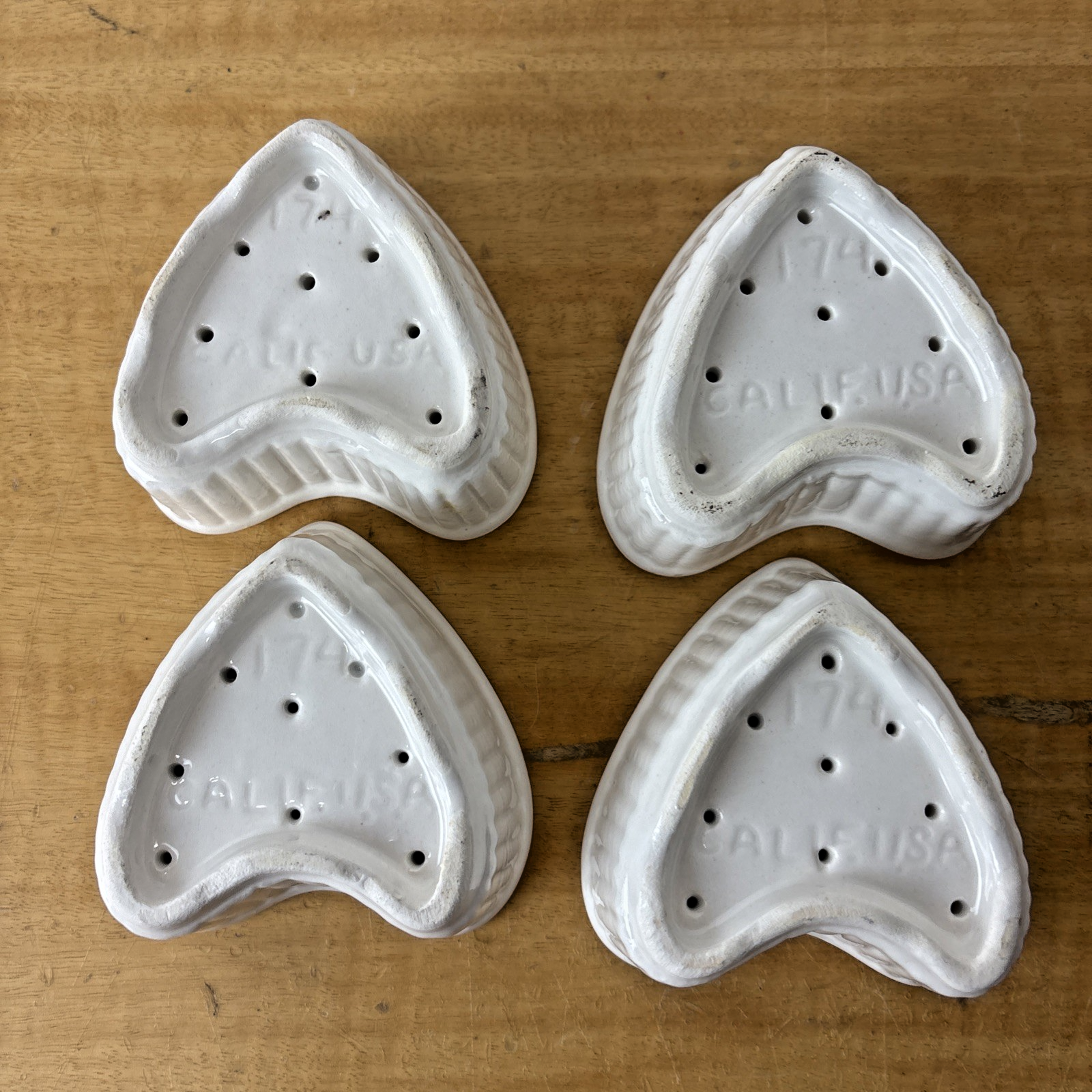 California "174" Pottery Set 4 Coeur a la Crème Cheese Mold Heart Shaped White