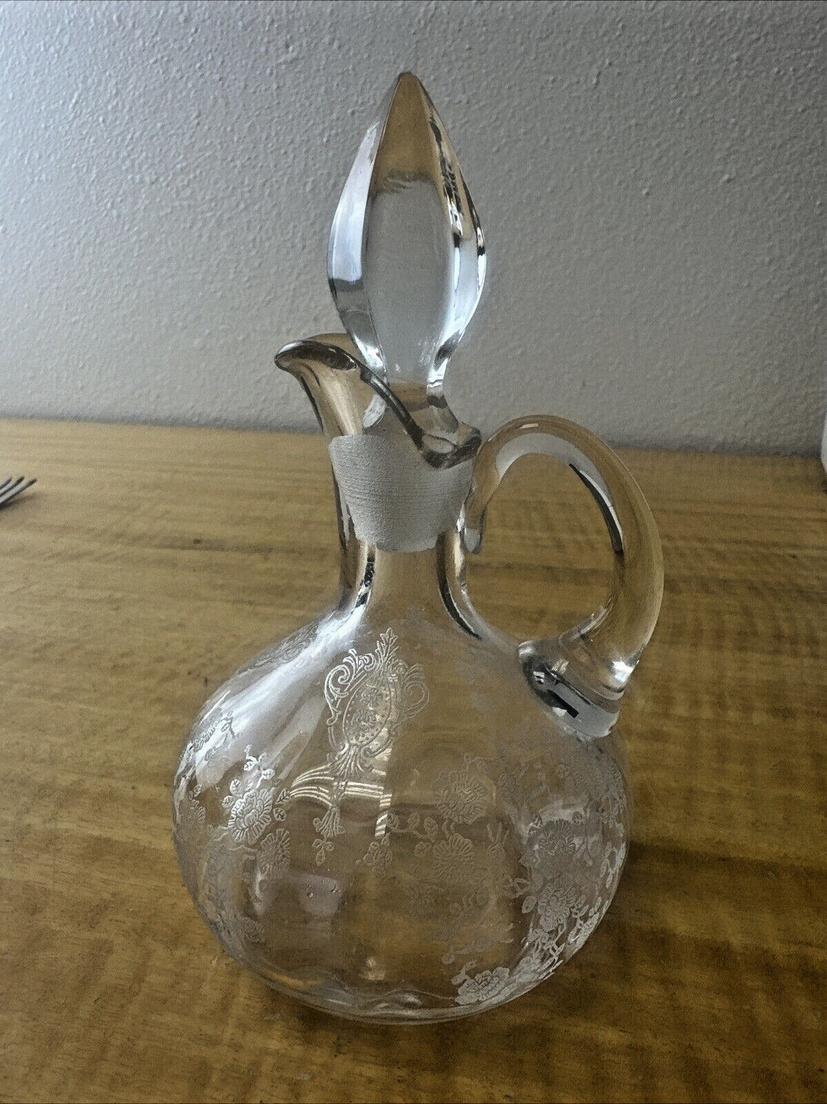 Cambridge Glass Rose Point Oil Cruet Loop Handle