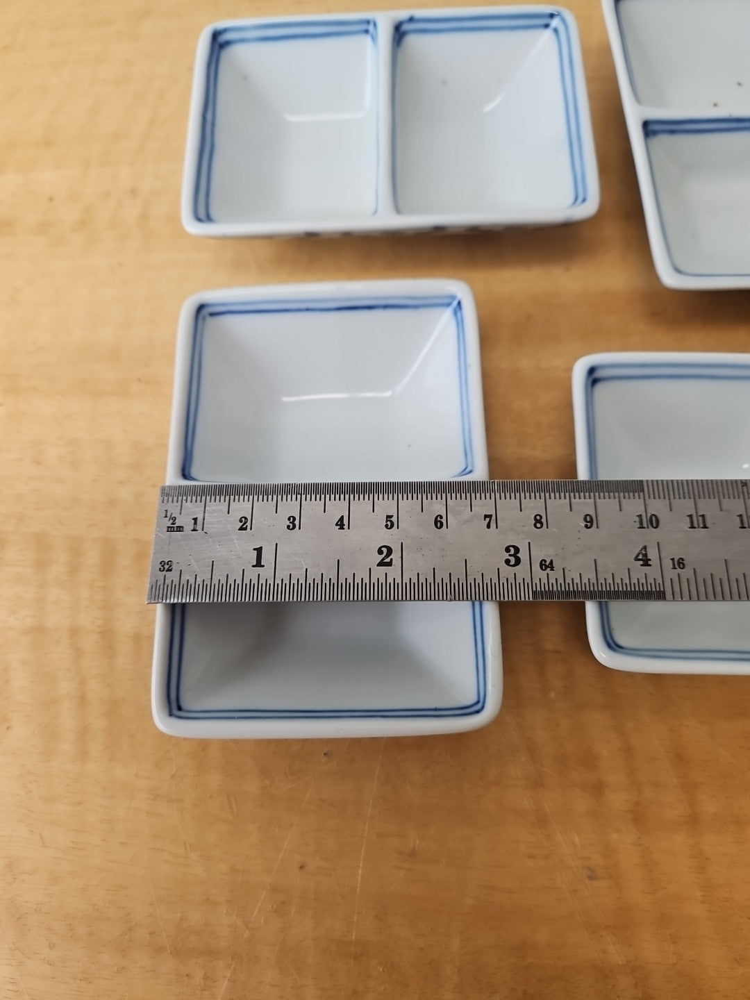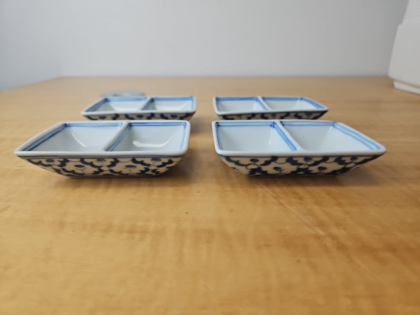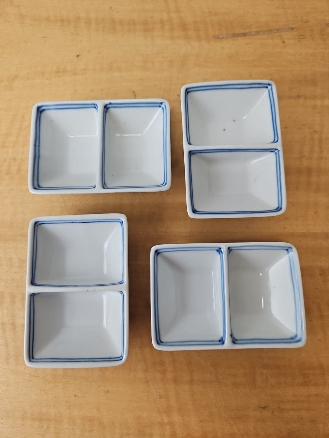 Ceramic Japanese divided dish *SET of 4* Soy Sauce, Condiment, dipping rectangle