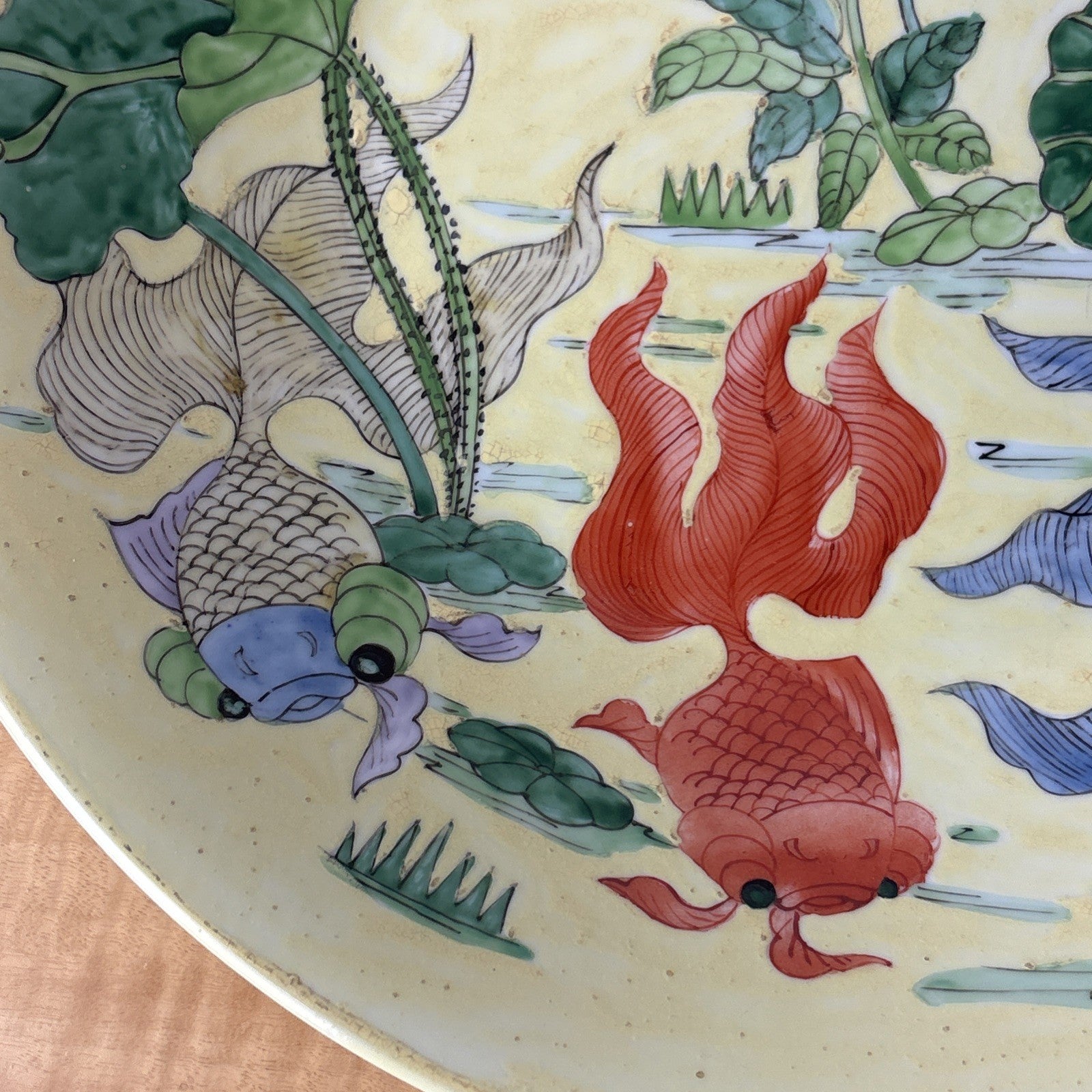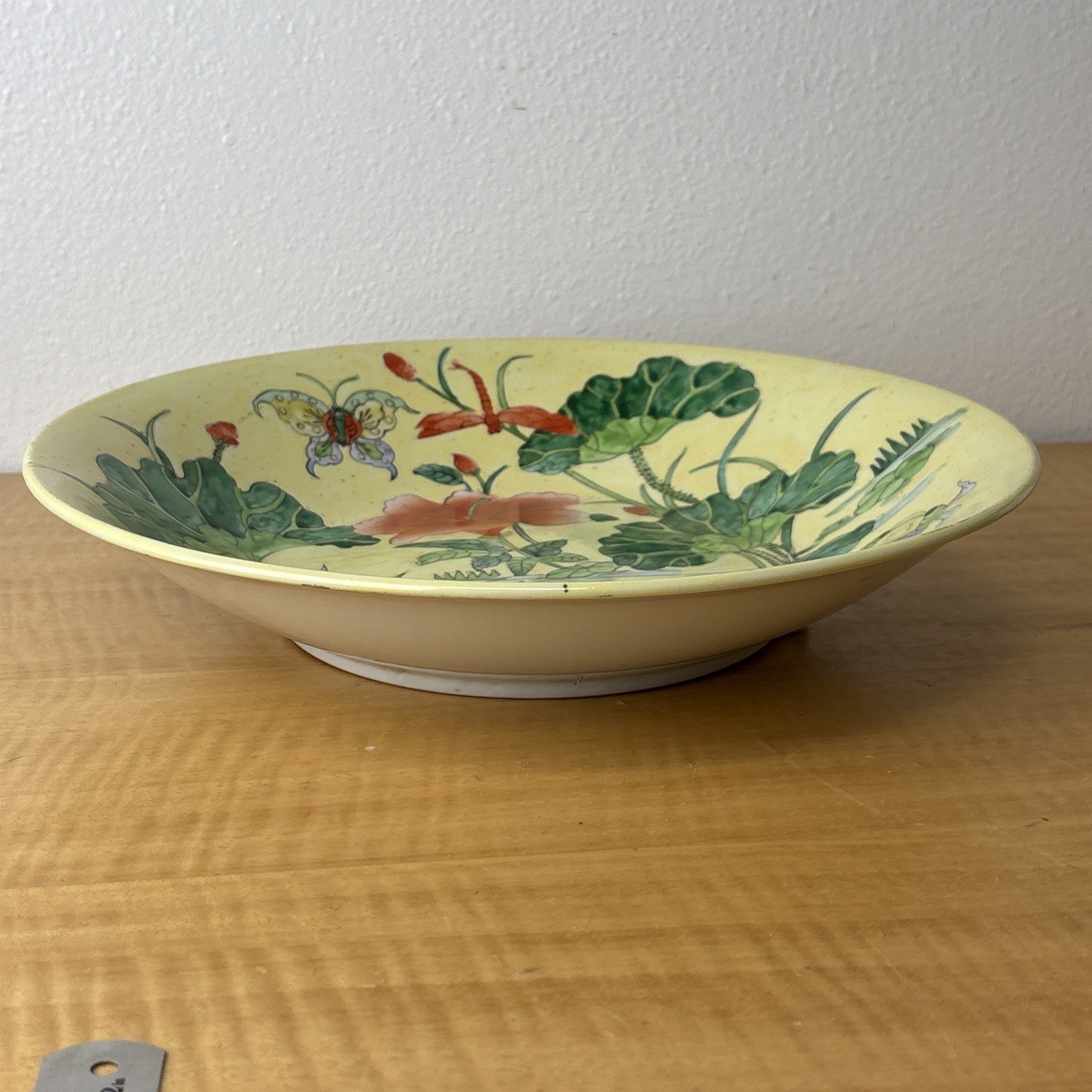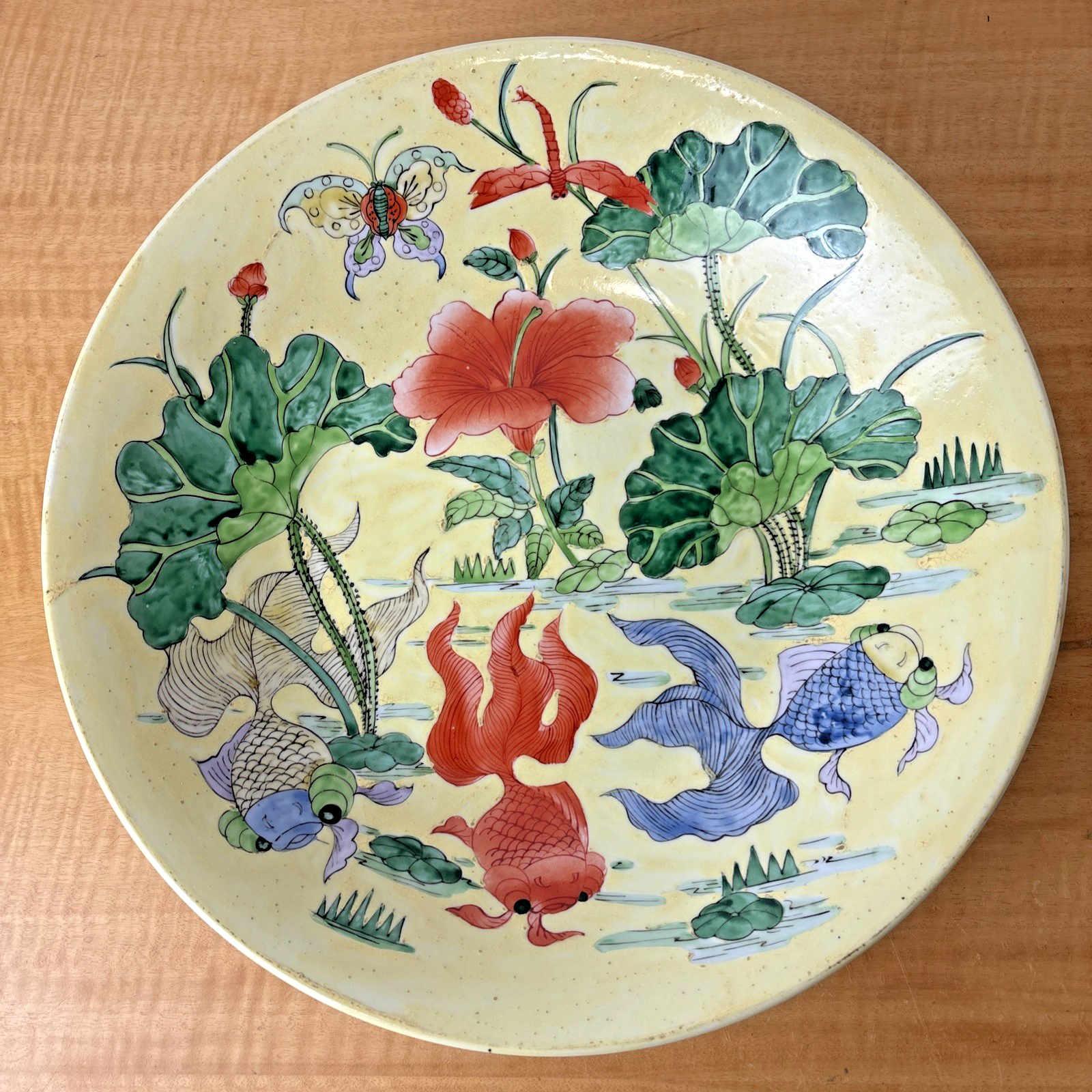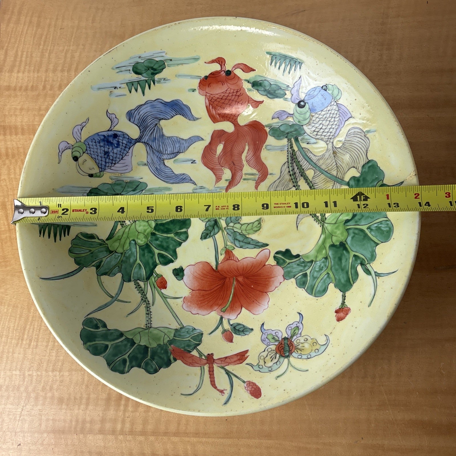 Chinese Koi Fish Floral Butterfly Hibiscus Dragonfly Painted Centerpiece Bowl