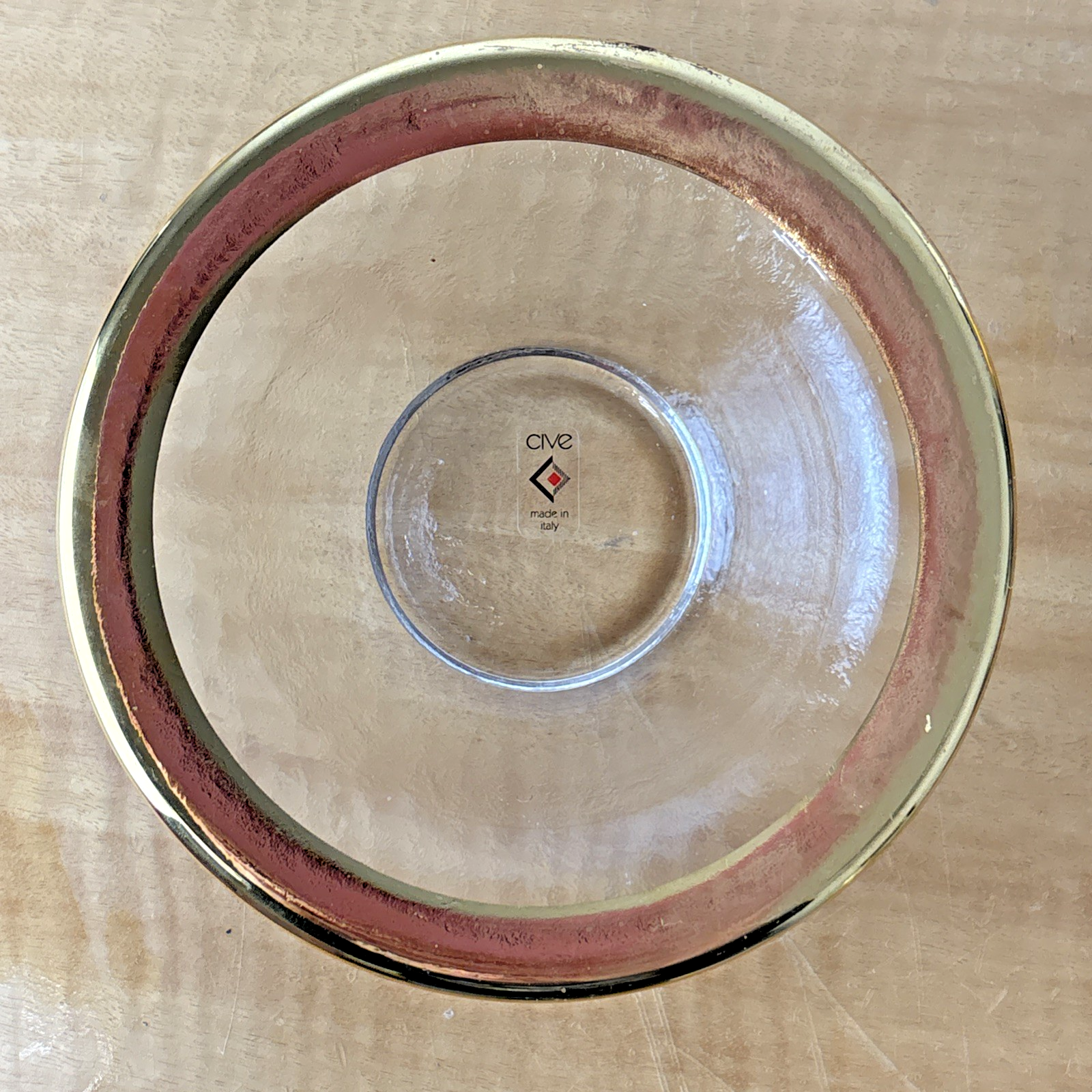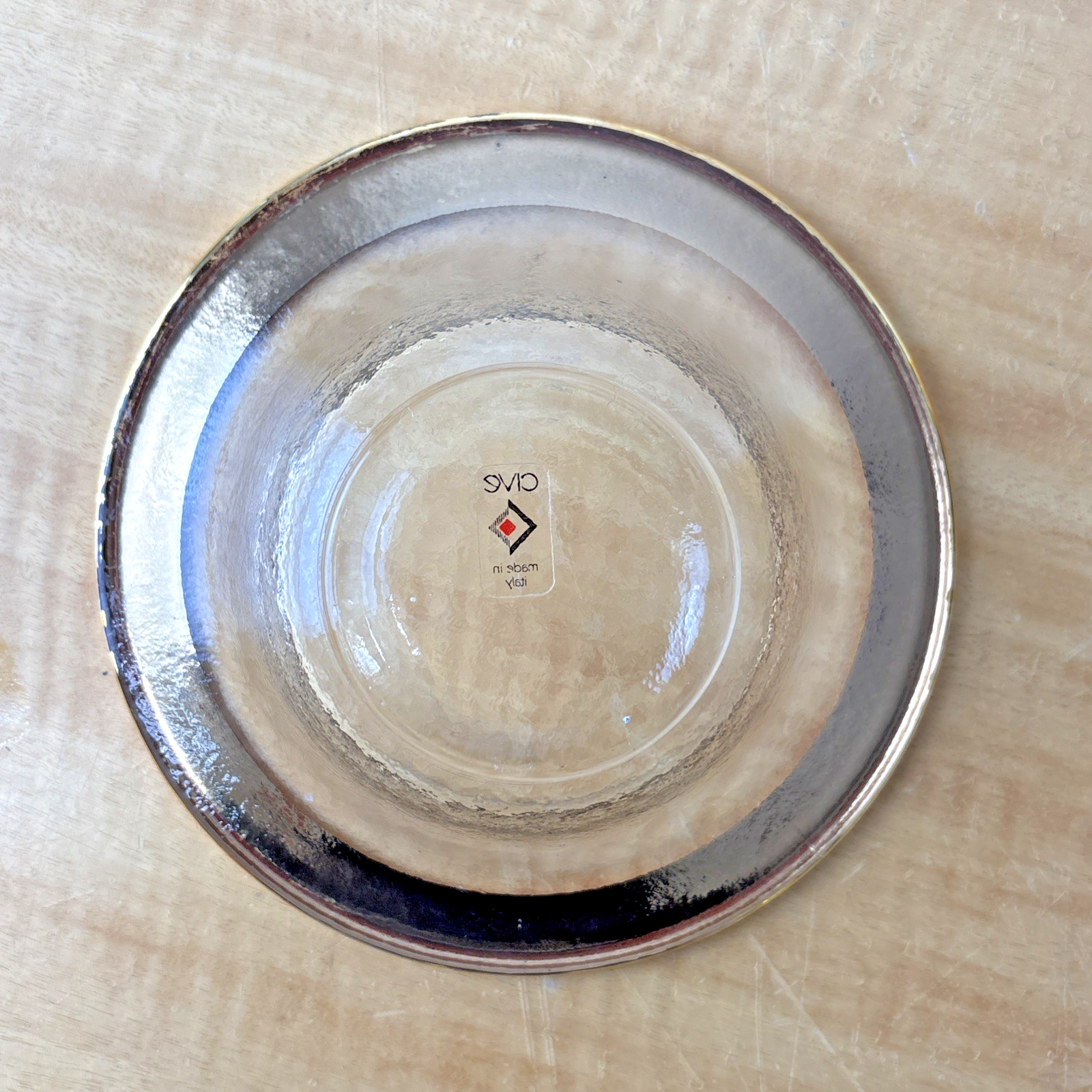 Cive Hand Crafted Studio Art Glass Italy Bowl Textured Glass w/Gold Rim 6.25"