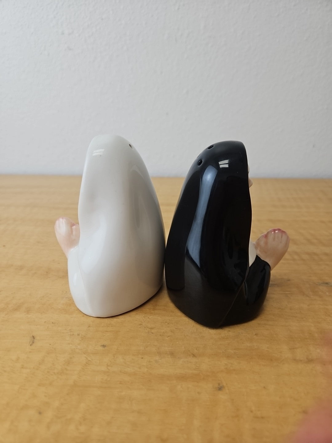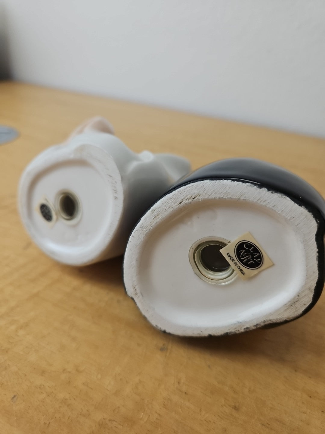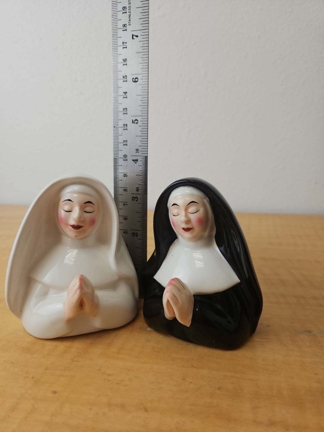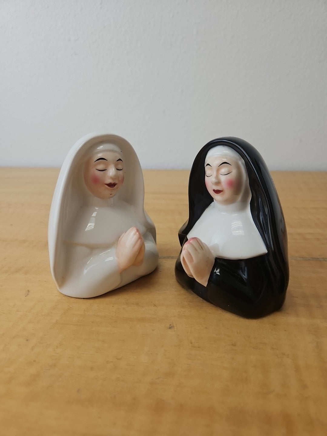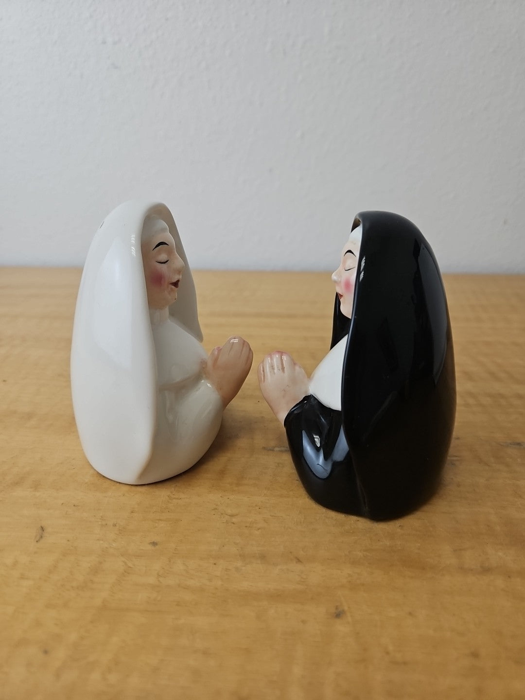Clay Art Praying Catholic Nuns Salt & Pepper Shaker Set Ceramic black and white
