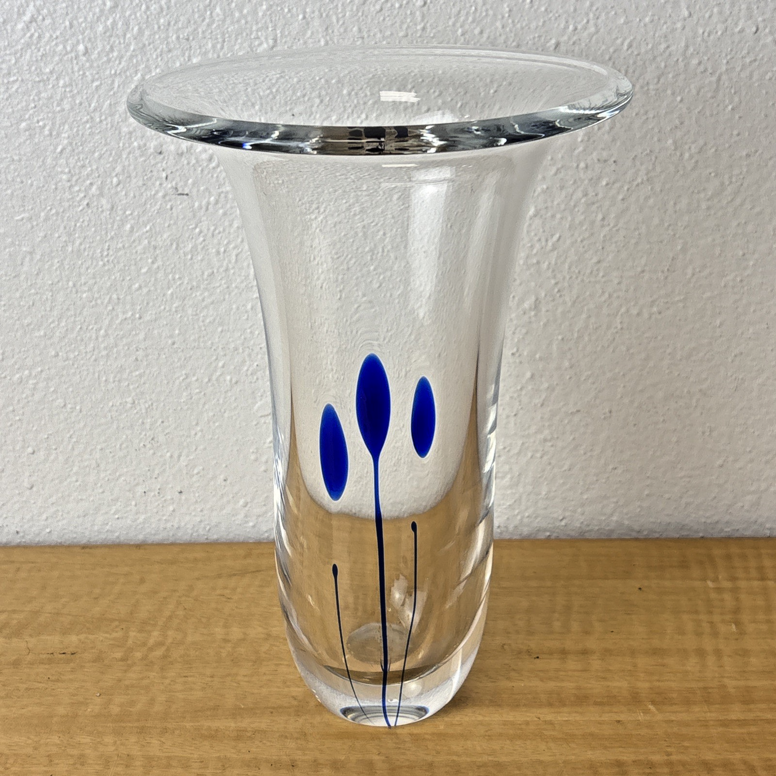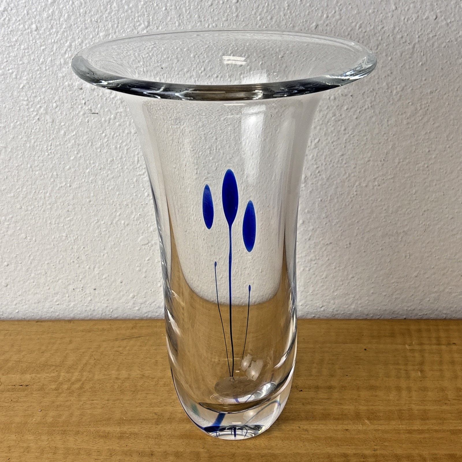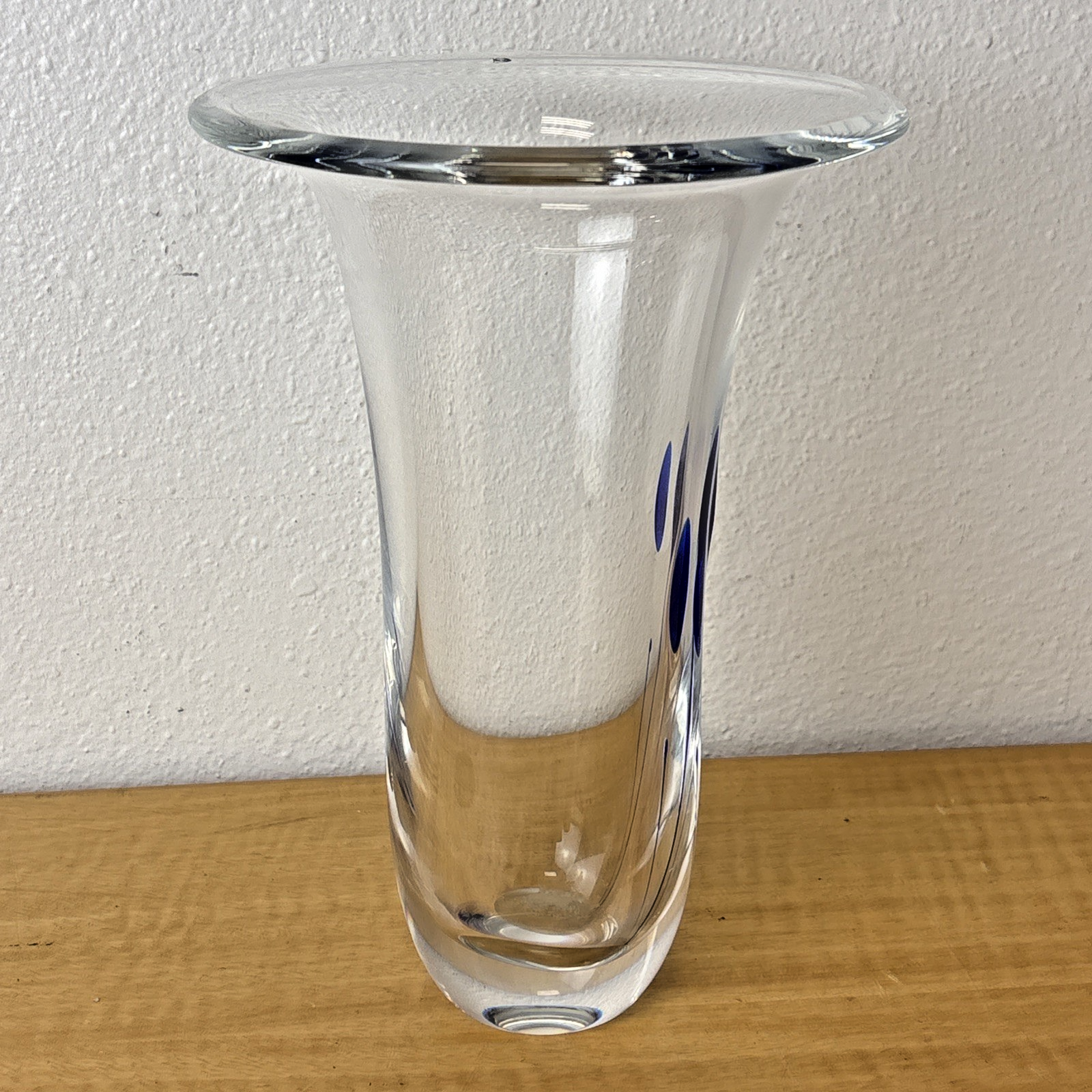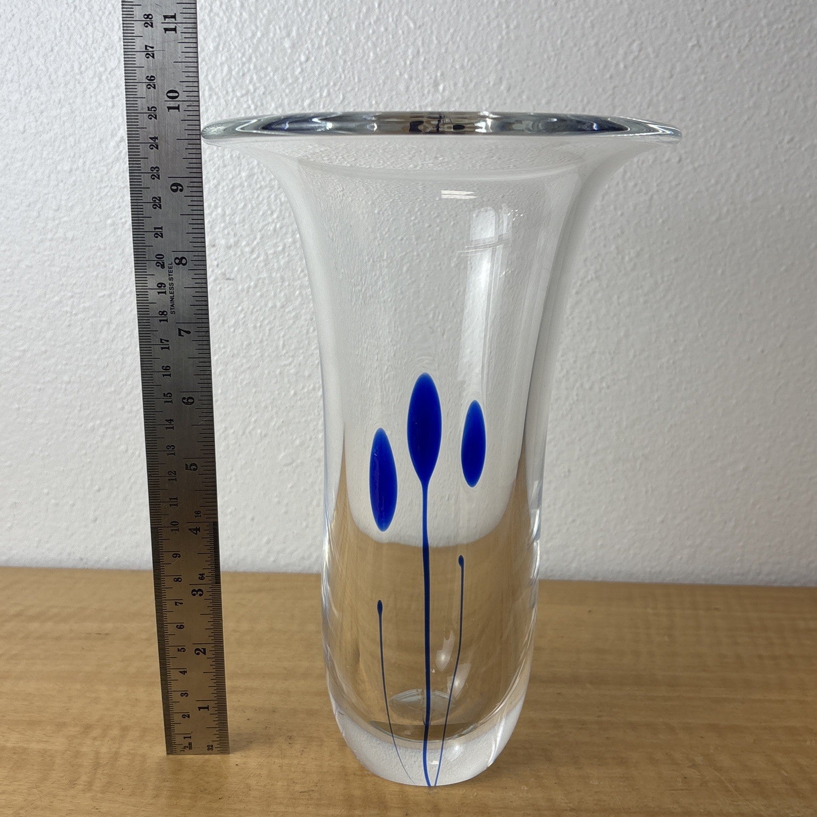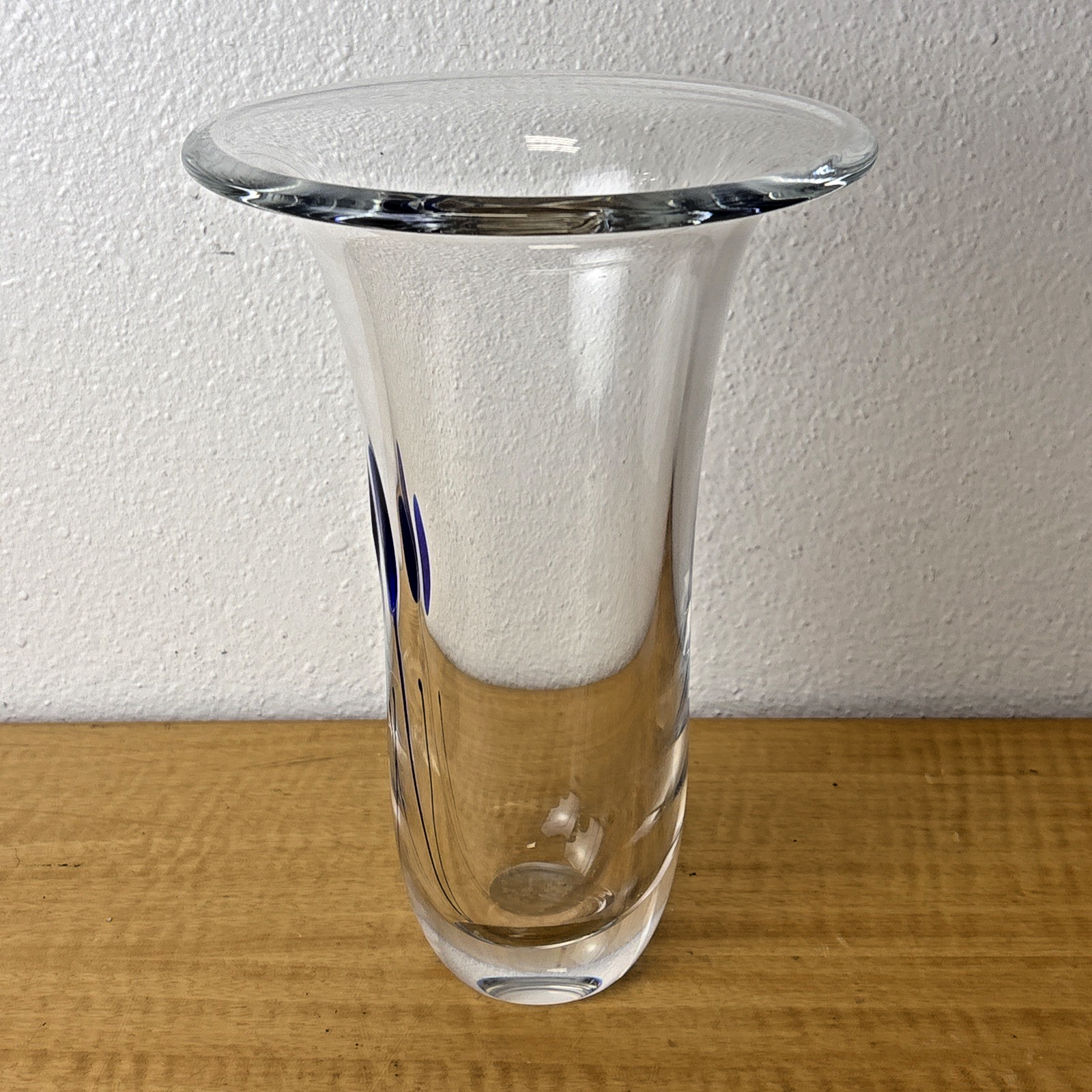 Clear & Cobalt Vase Fused Art Glass Large 10" Vase