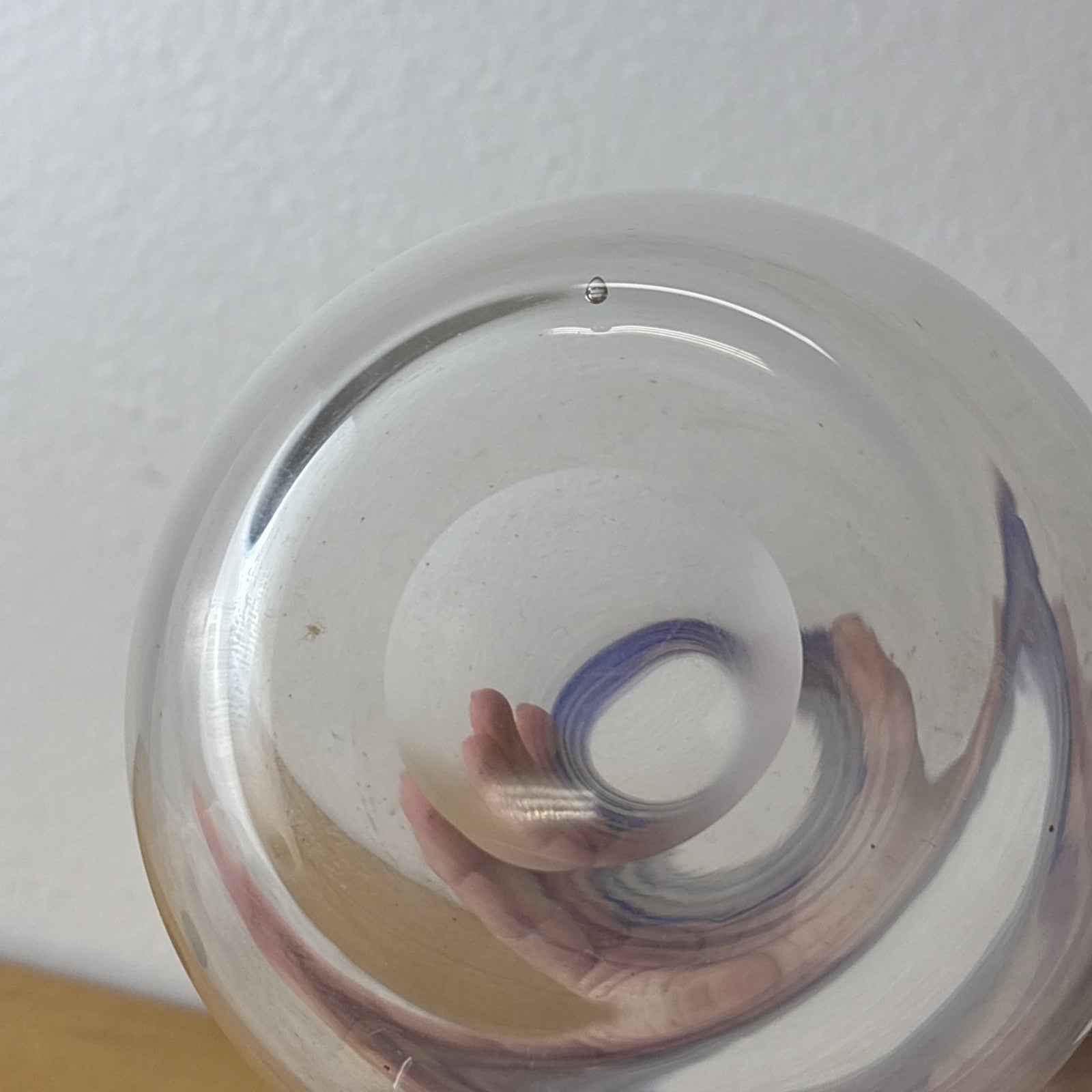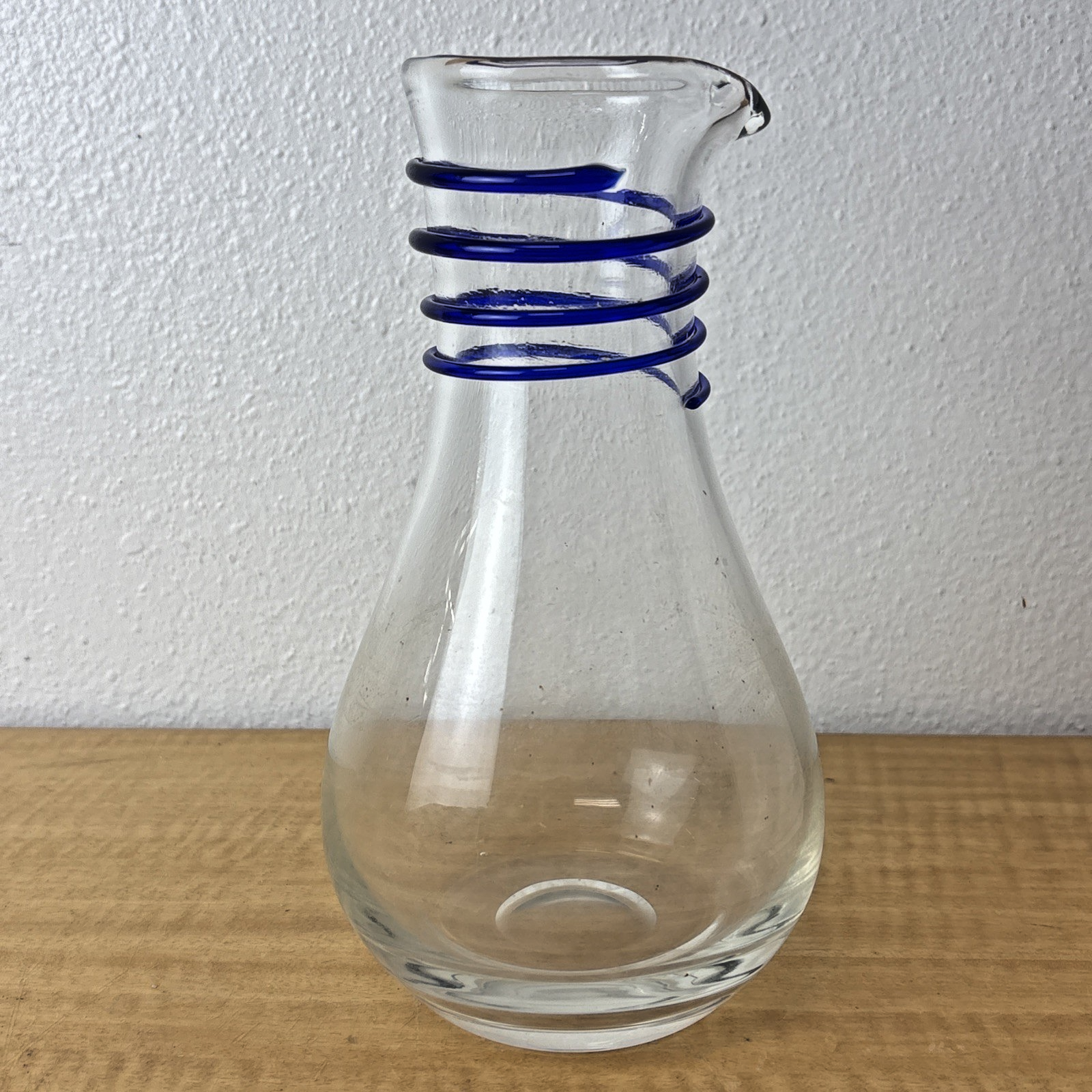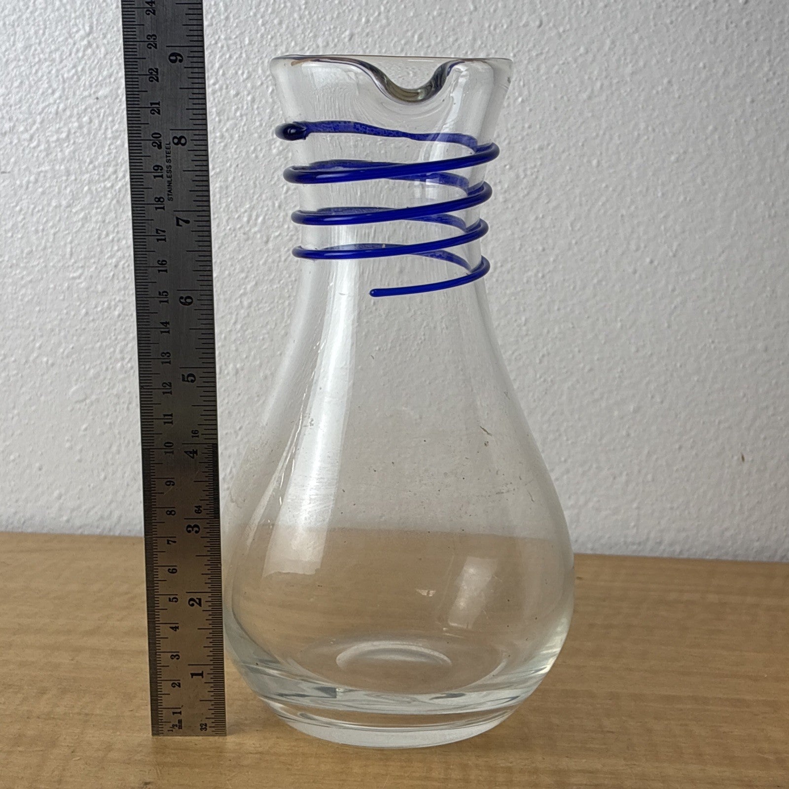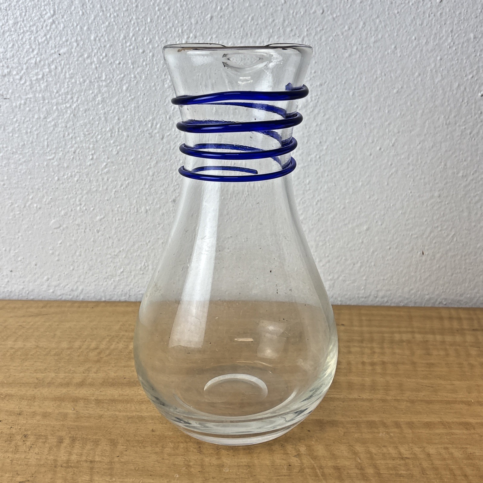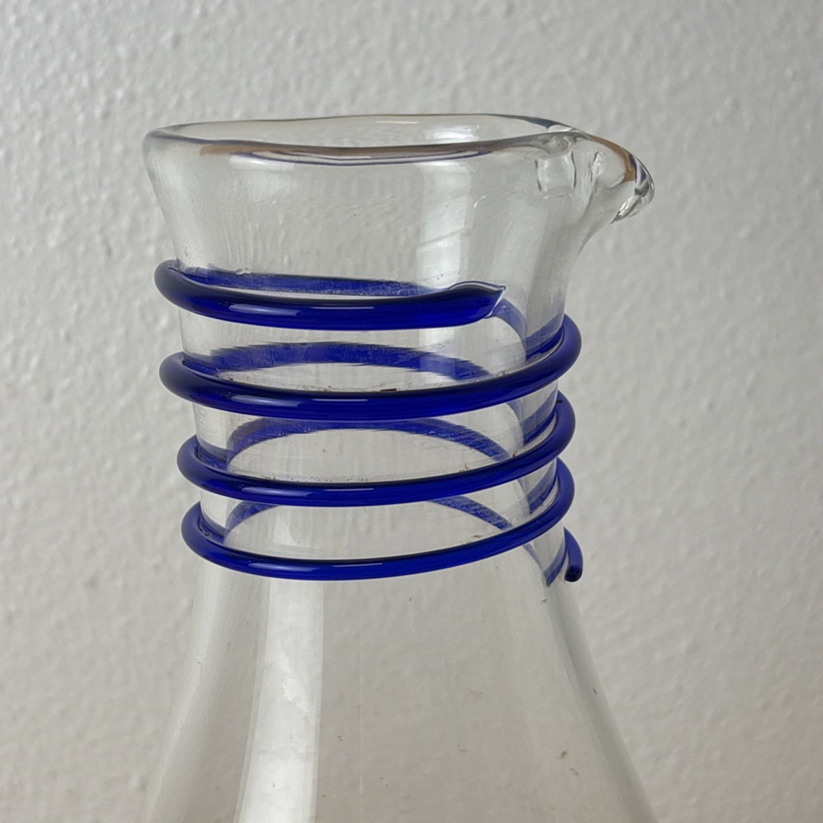 Clear Glass Carafe Decanter with Colbalt Blue Applied Ribbon Stripe Art Glass