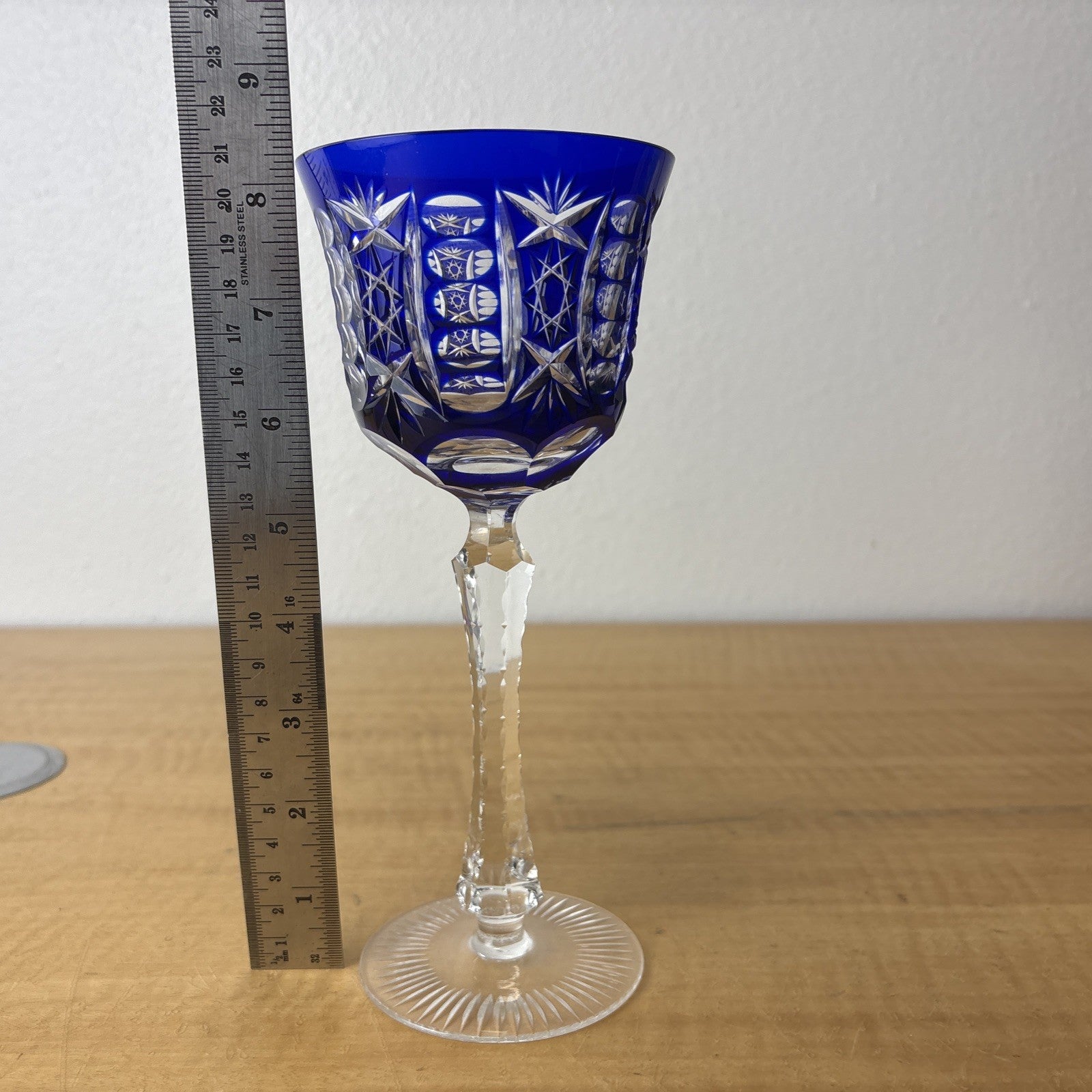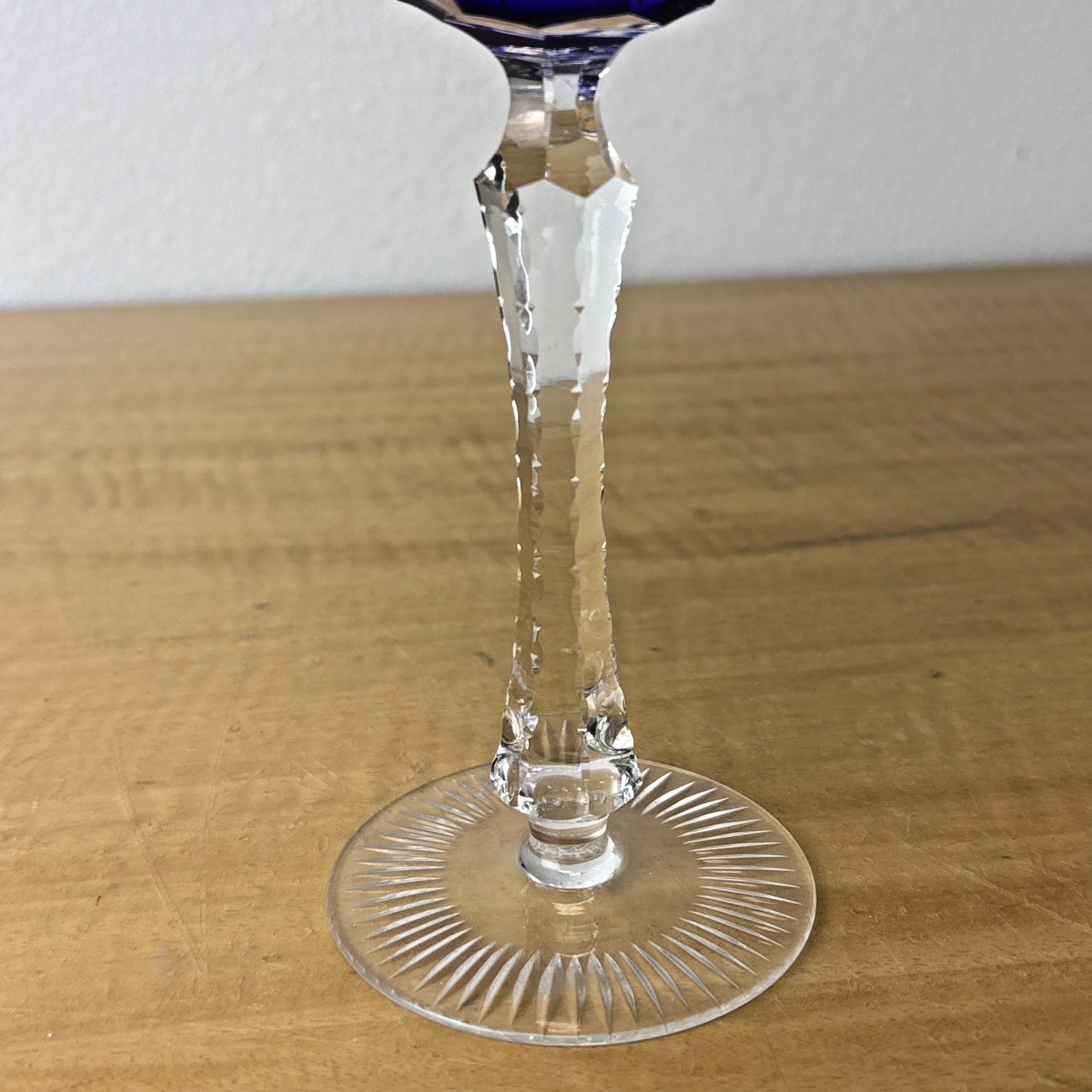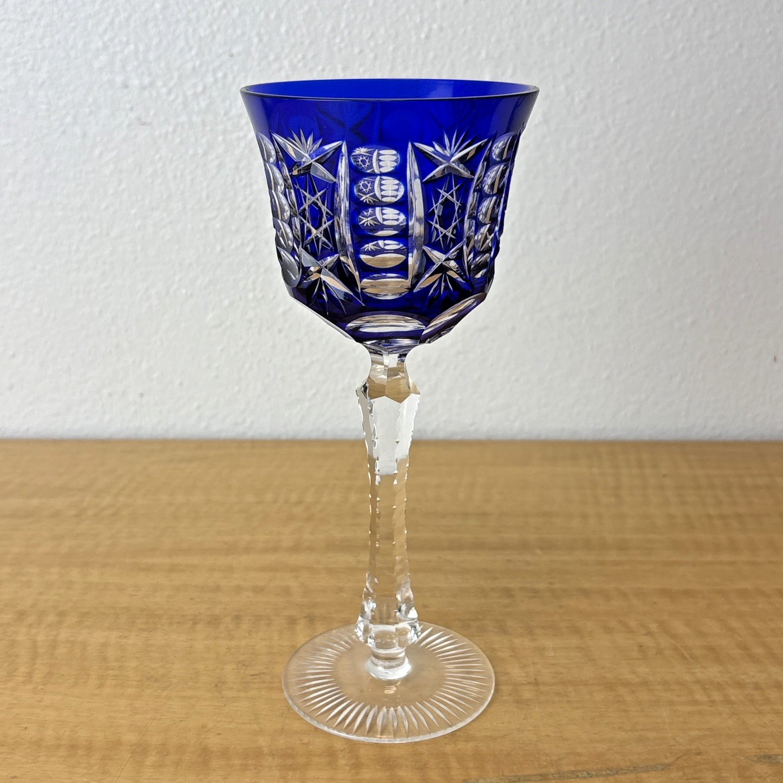 Cobalt Blue Cut to Clear Crystal Hock Wine Glass Goblet