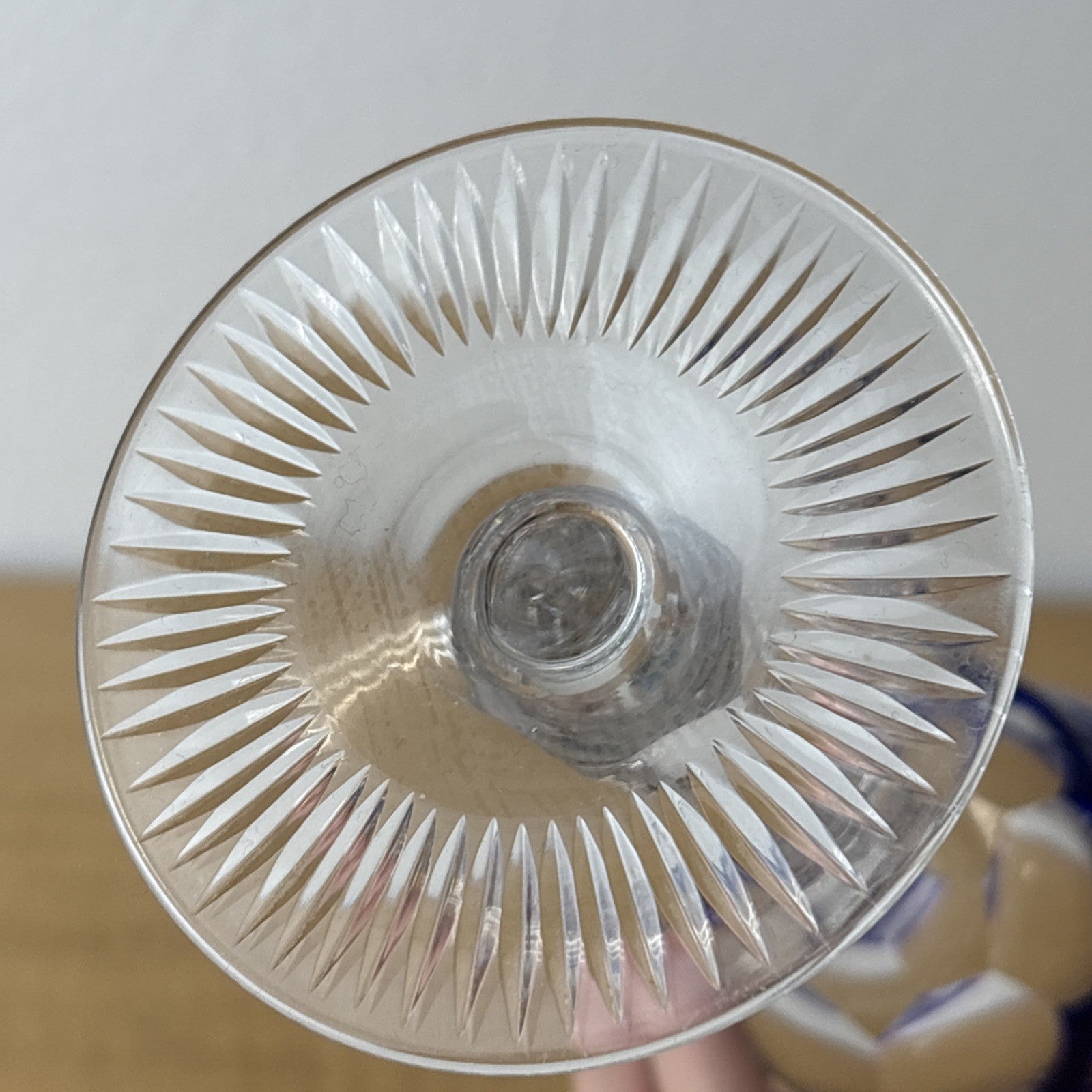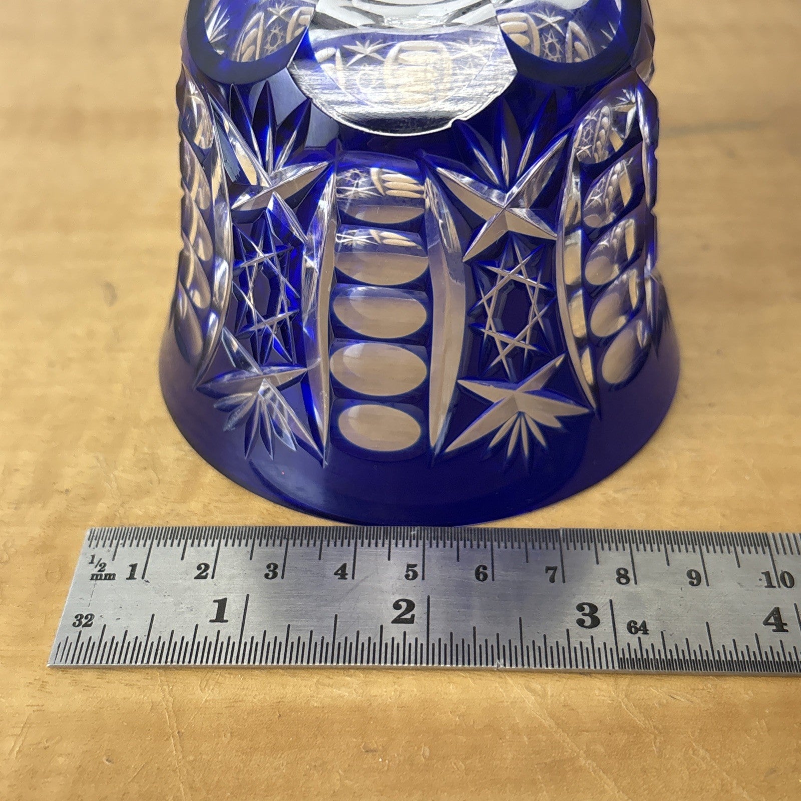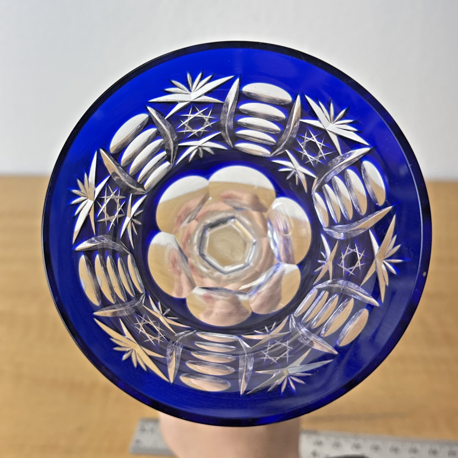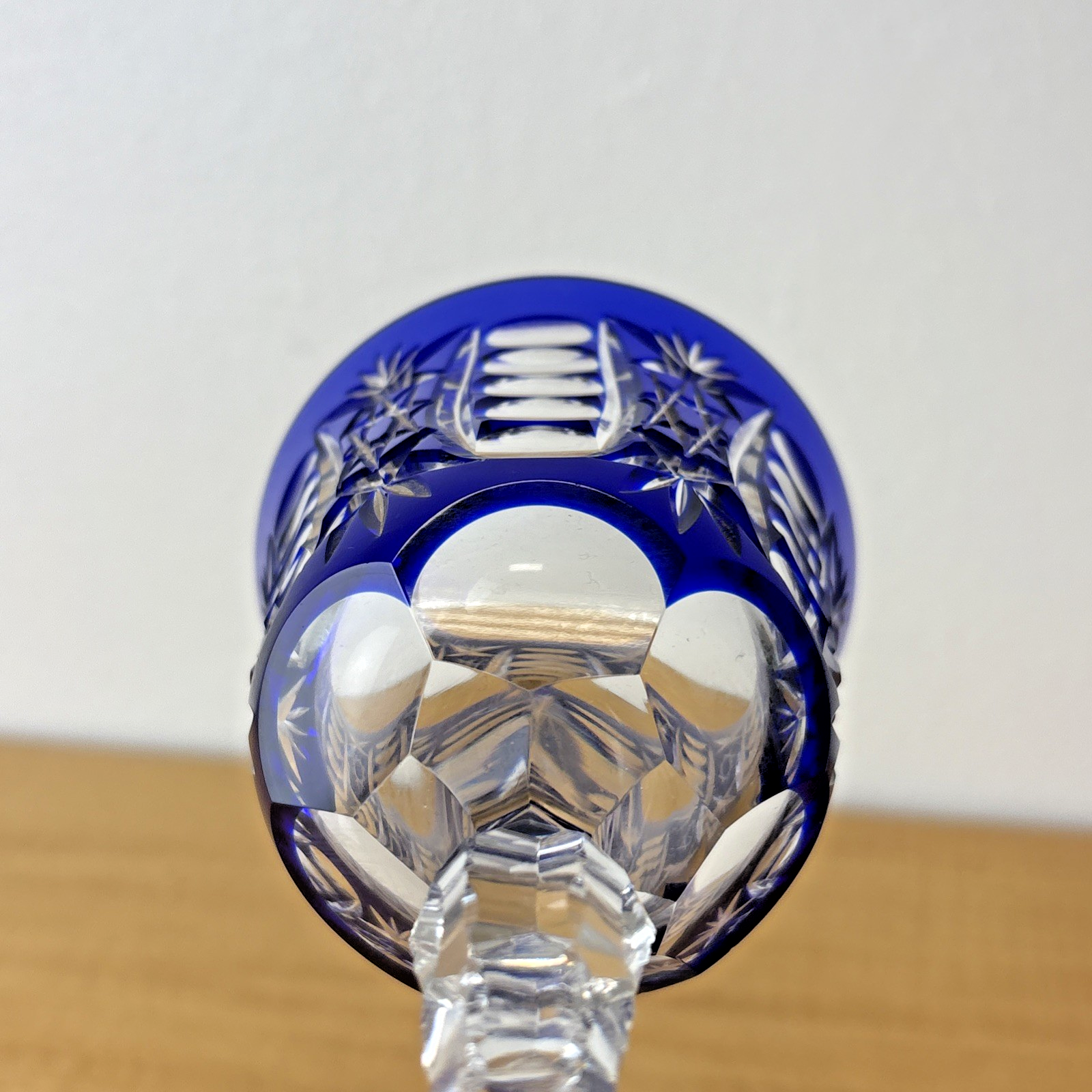Cobalt Blue Cut to Clear Crystal Hock Wine Glass Goblet