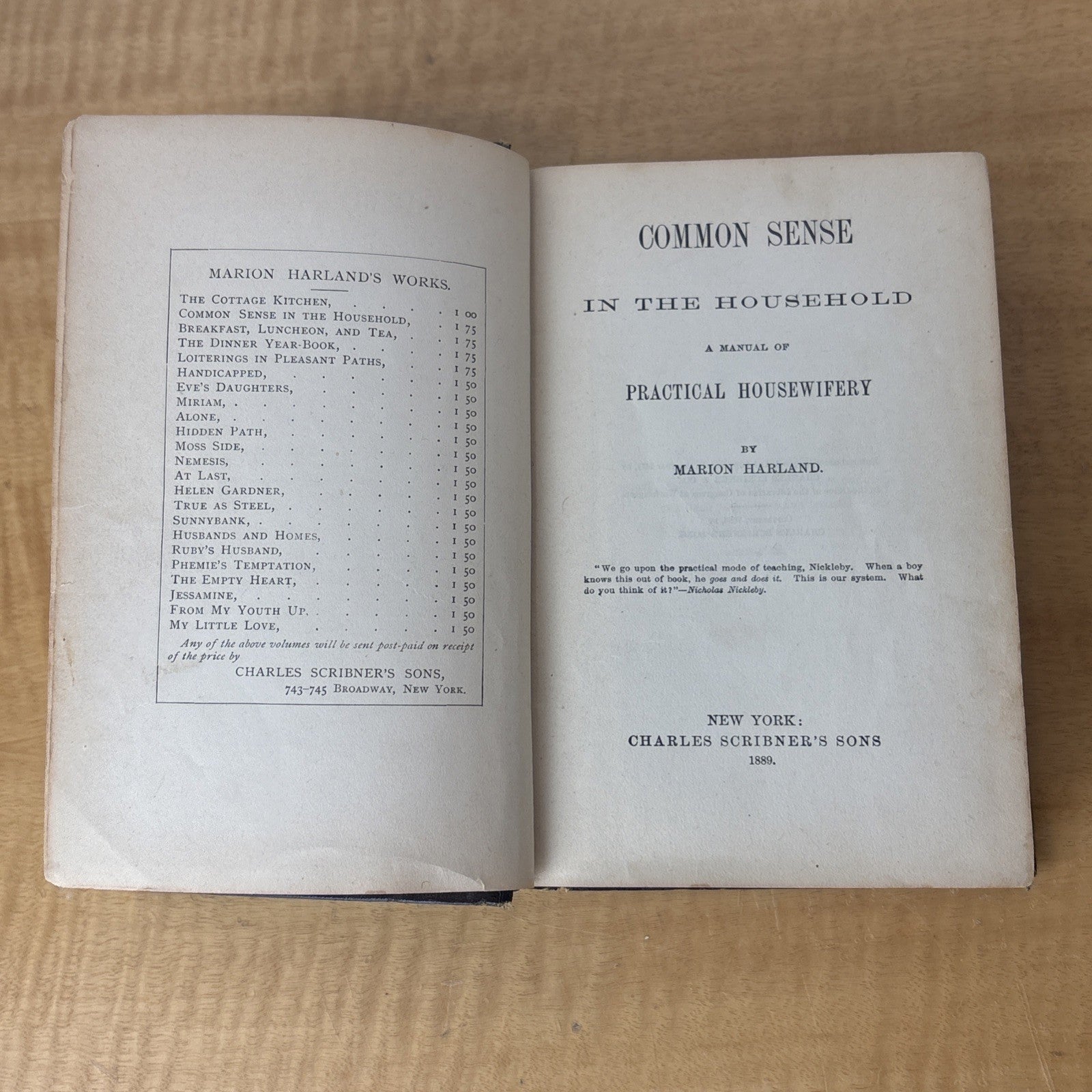Common Sense in the Household by Marion Harlan 1889 Hardcover Book