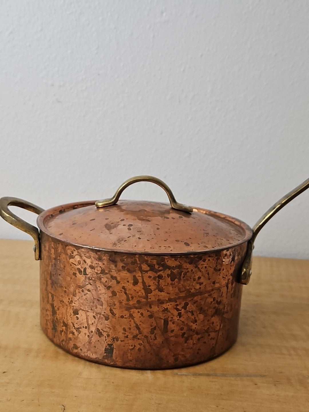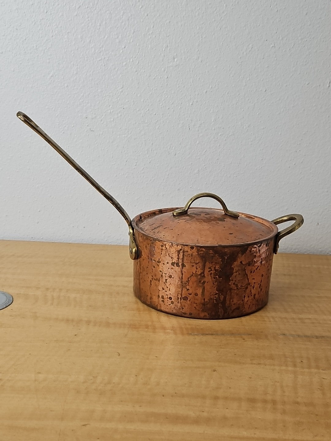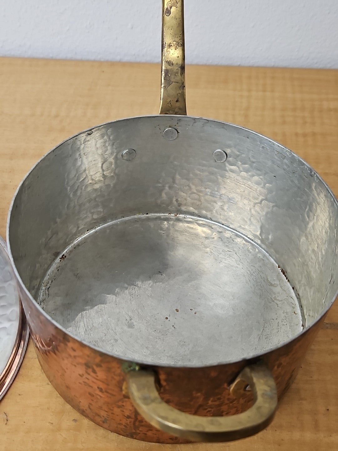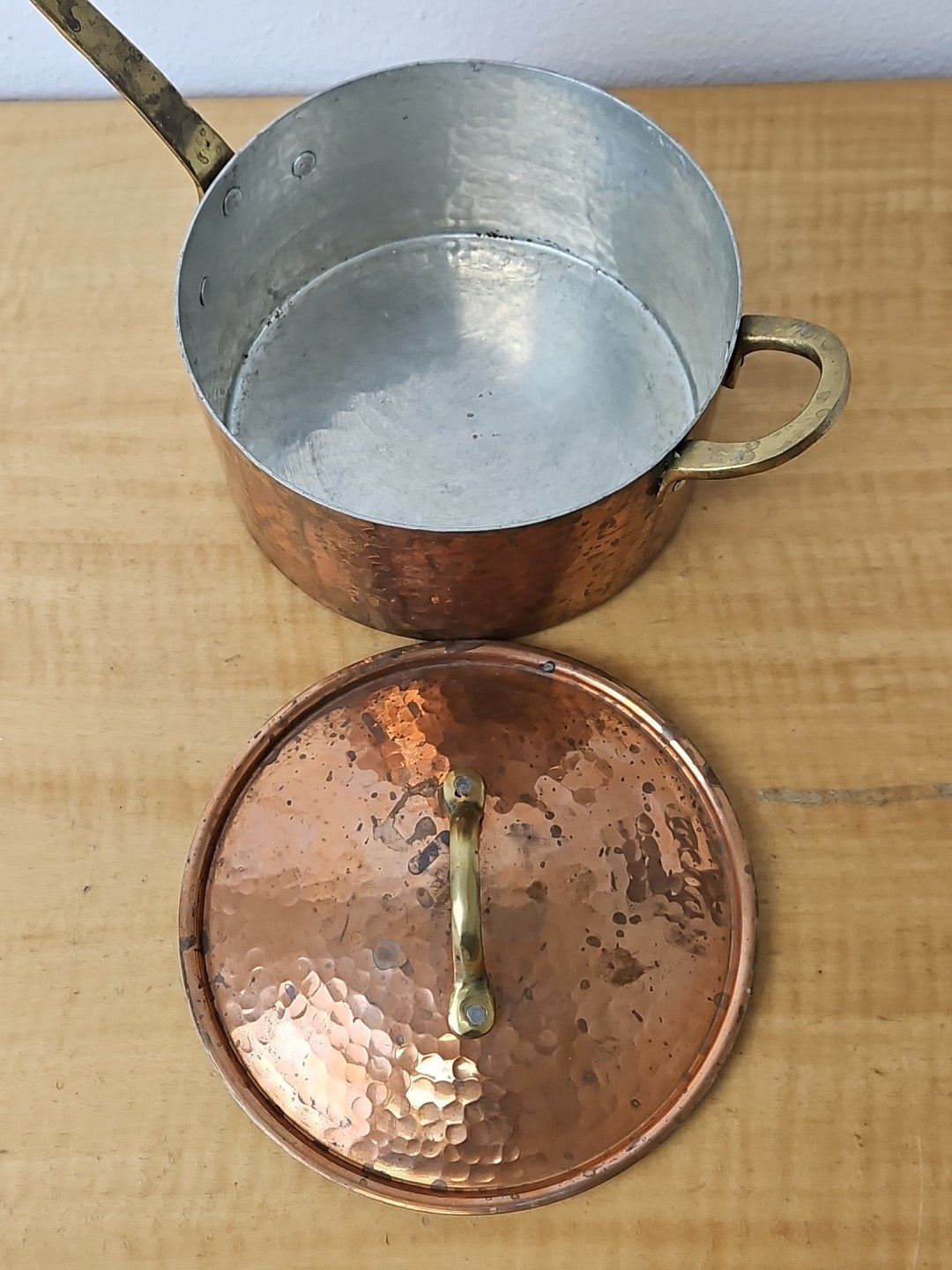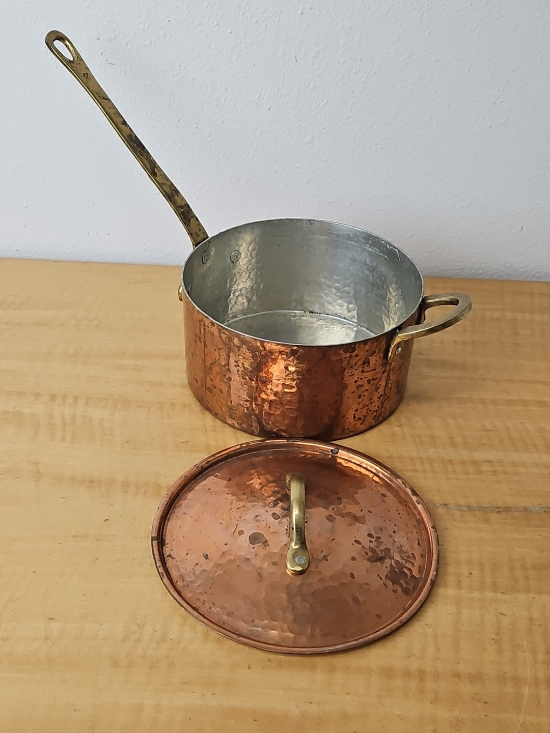 Copper and Brass Sauté Sauce Pan with Lid, Tin Lining 6 3/4 diameter