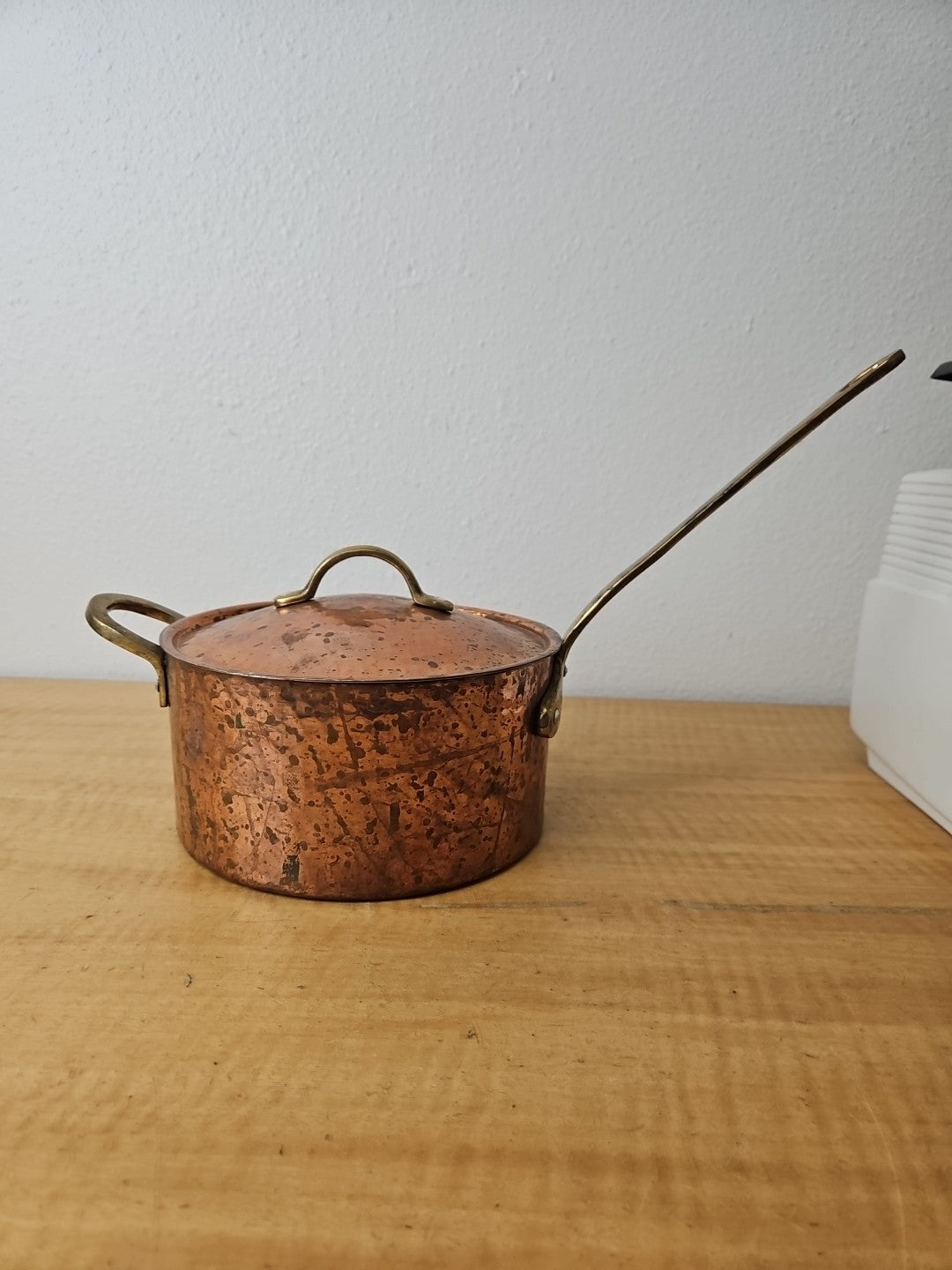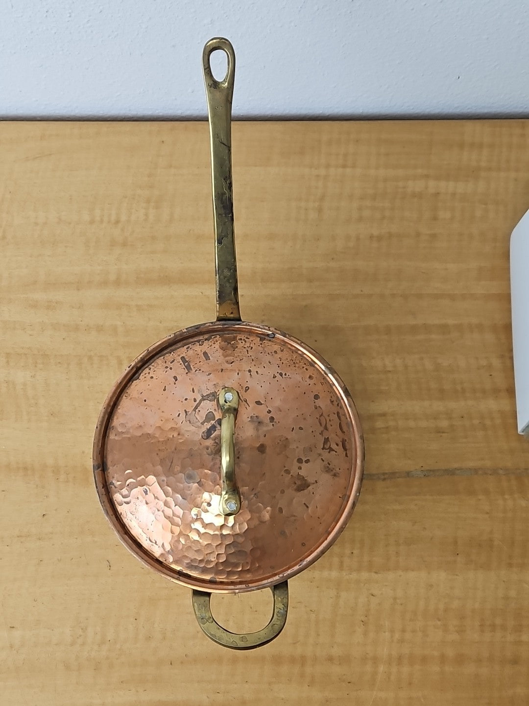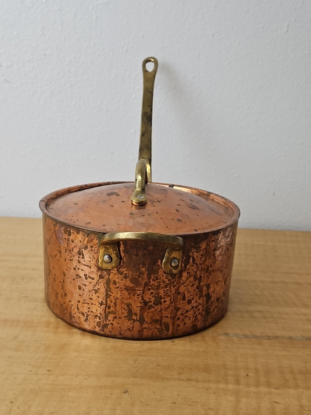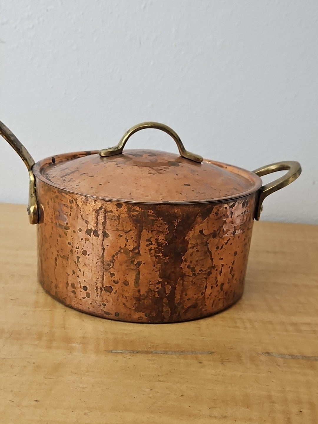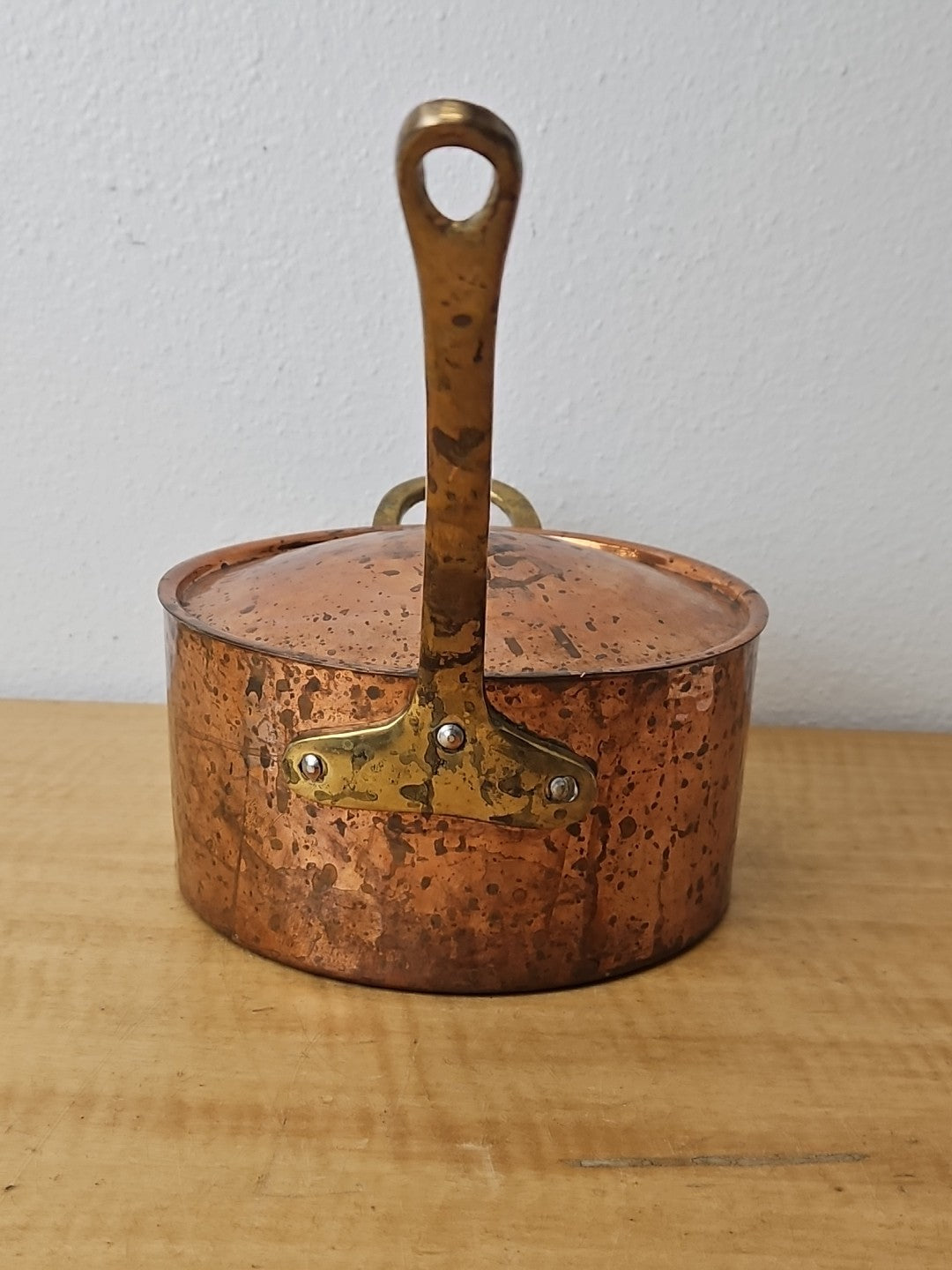 Copper and Brass Sauté Sauce Pan with Lid, Tin Lining 6 3/4 diameter