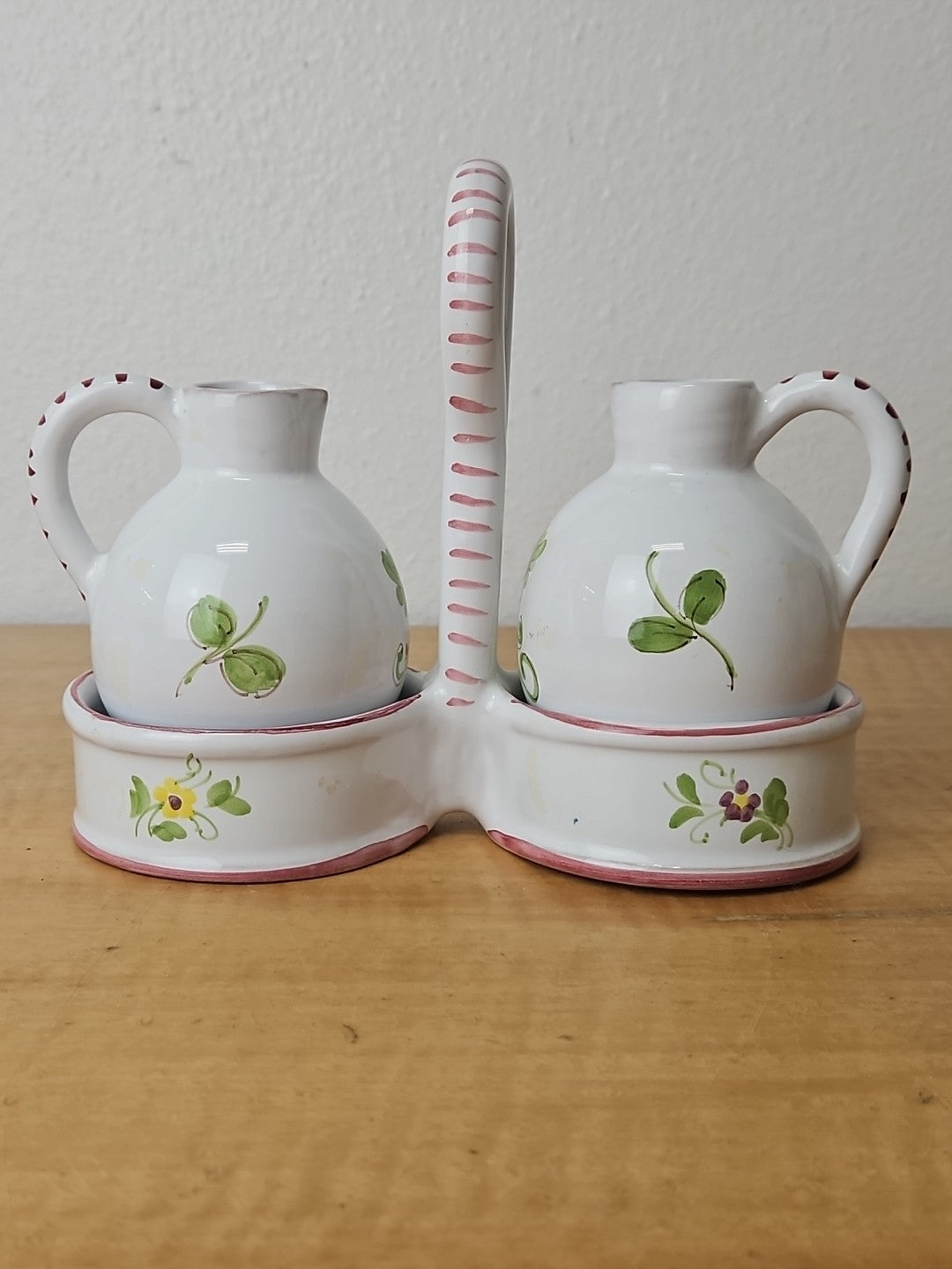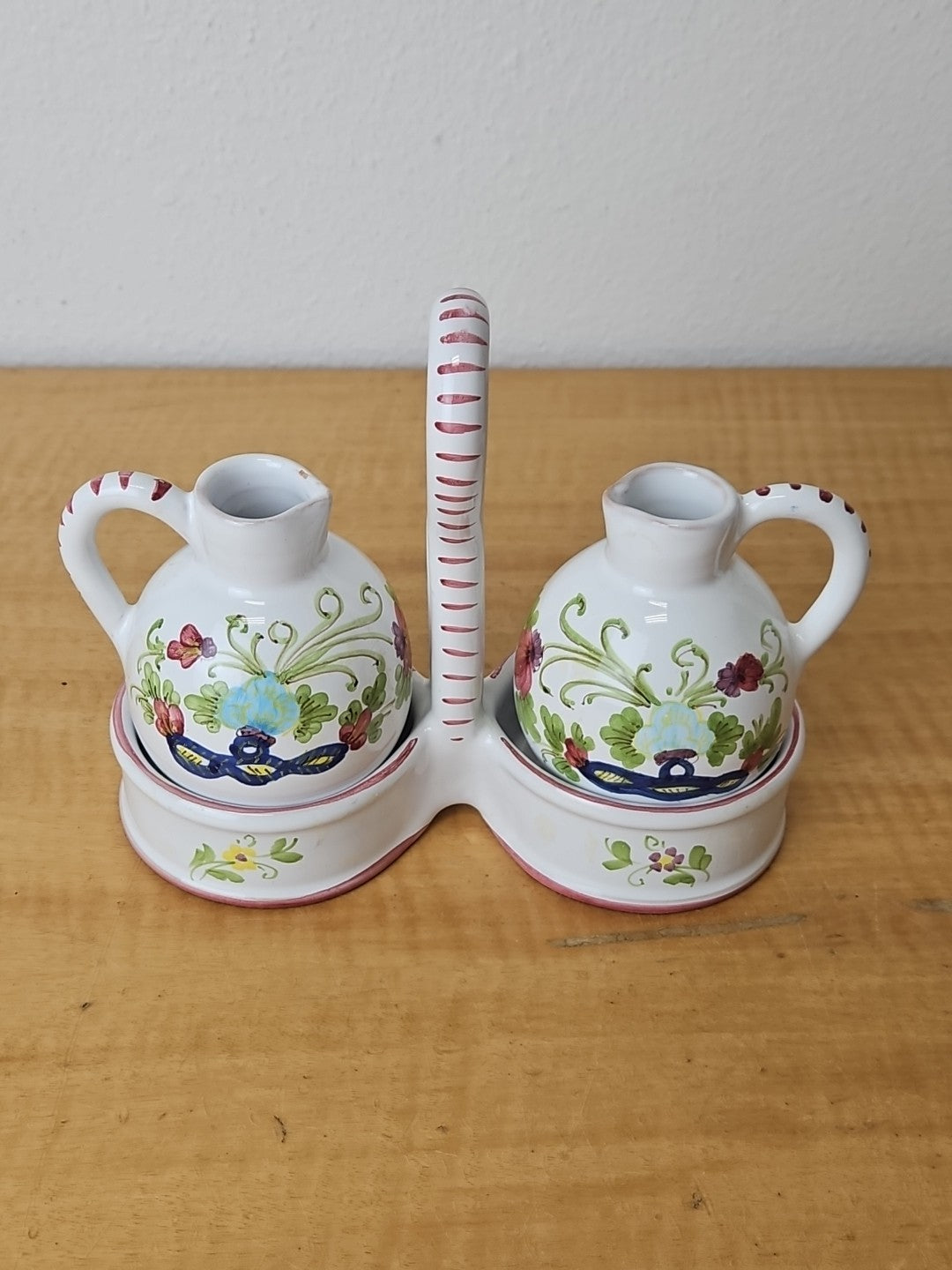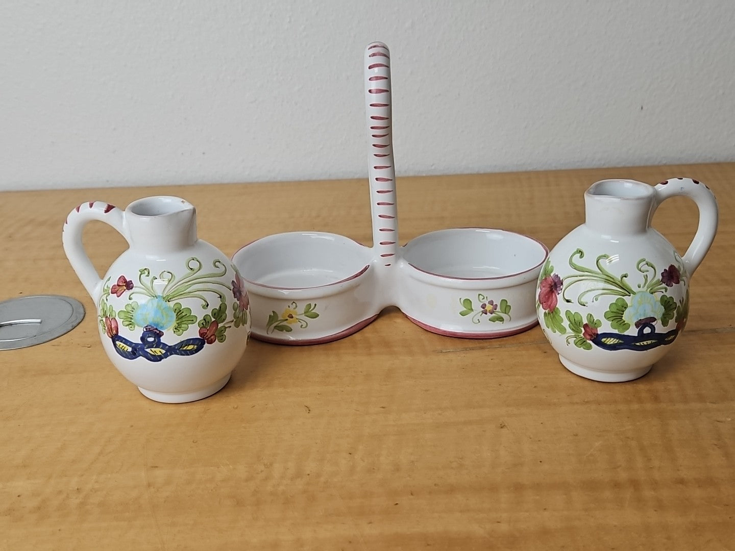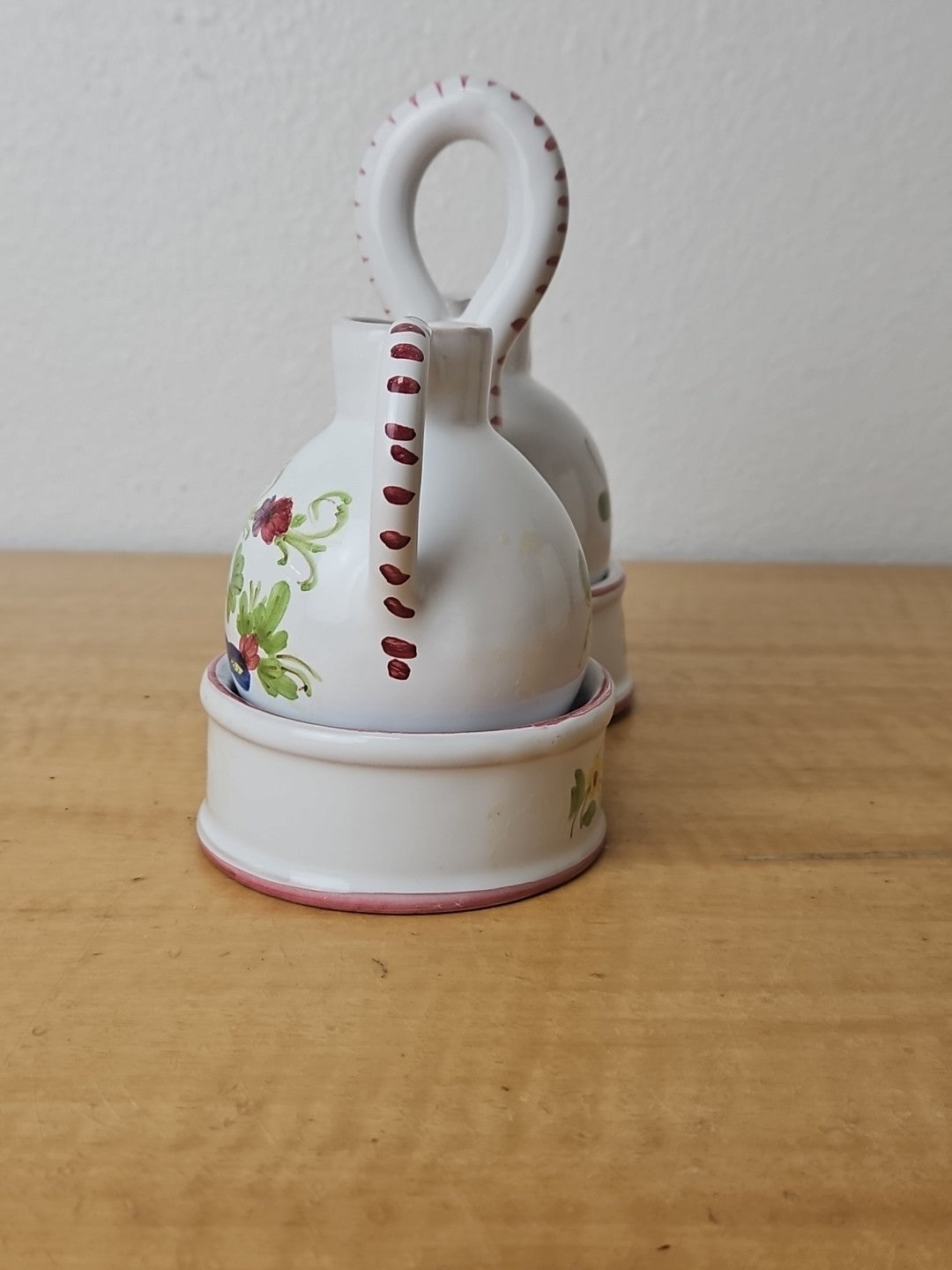 Cottura made in Italy Oil Vinegar Cruet Set & Holder hand painted, white, floral