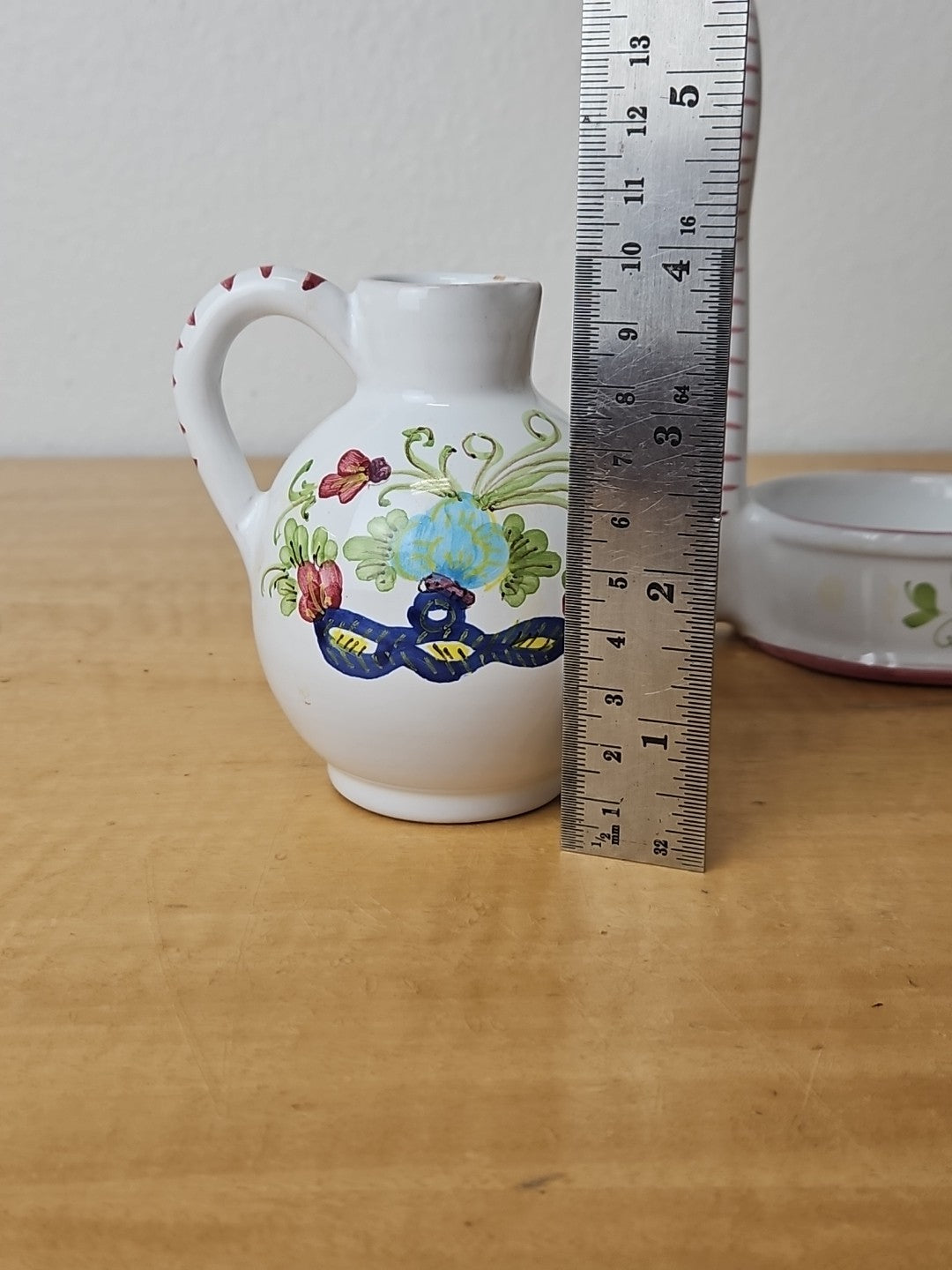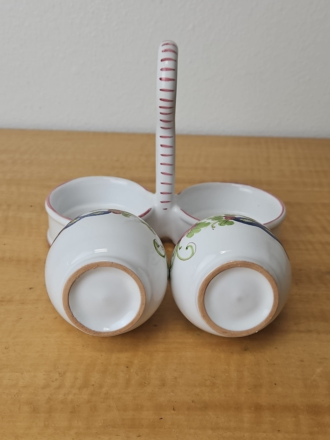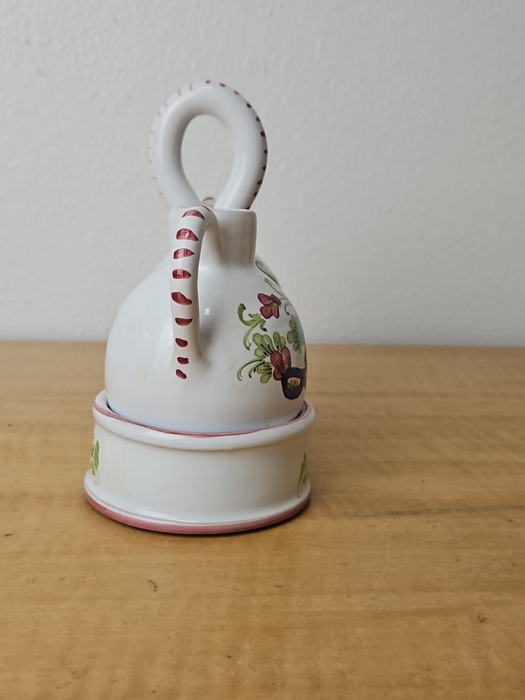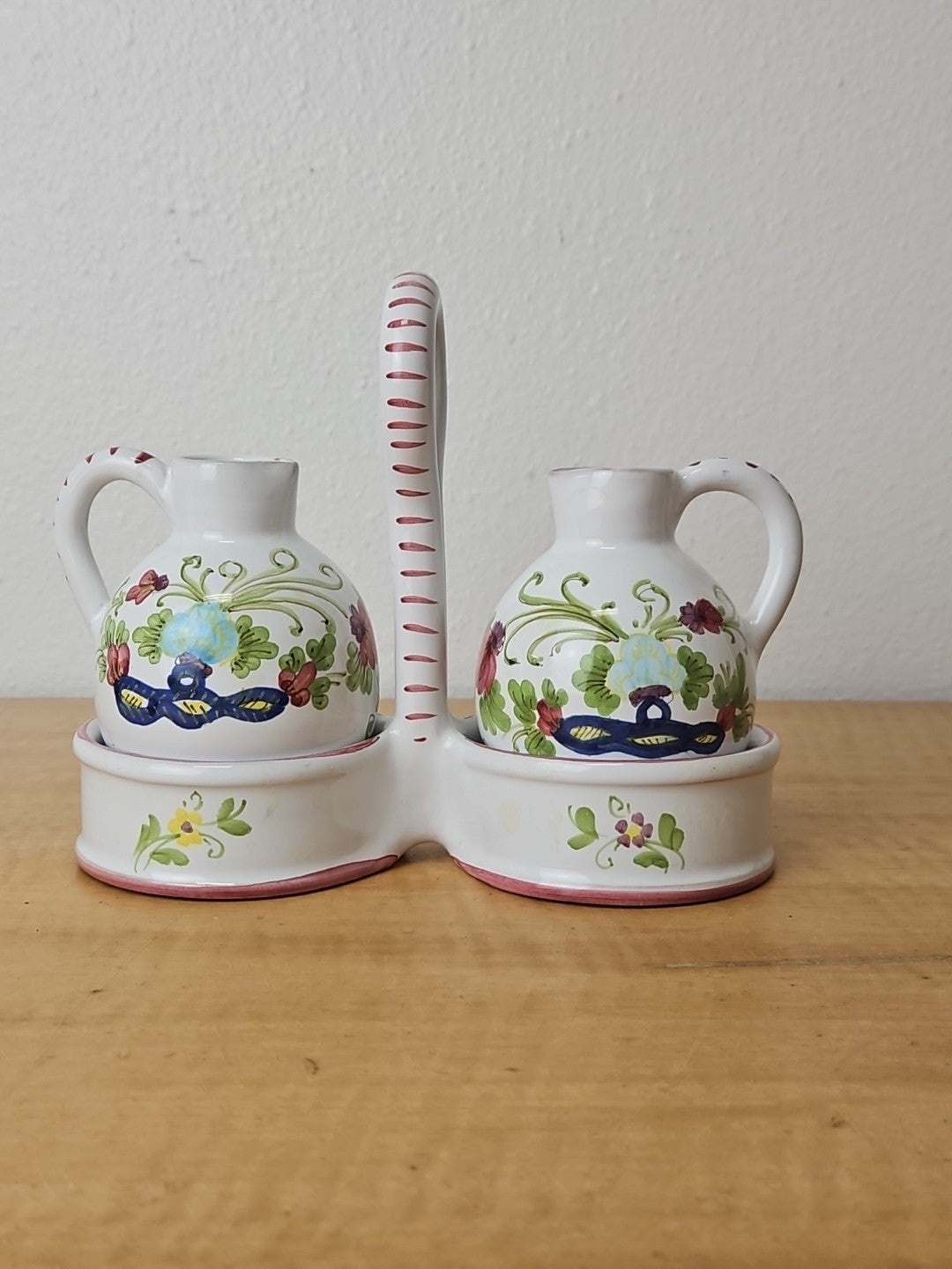 Cottura made in Italy Oil Vinegar Cruet Set & Holder hand painted, white, floral