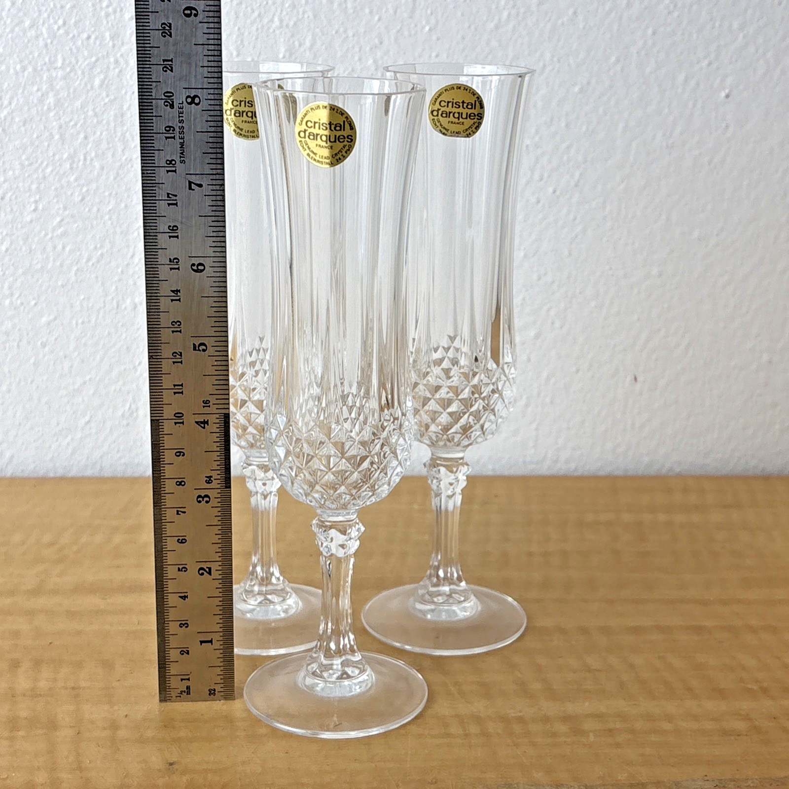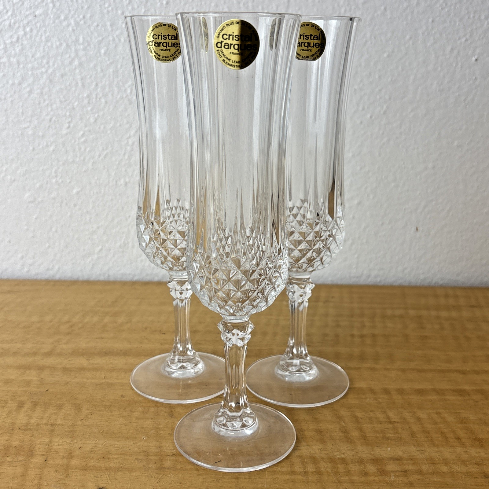 CRISTAL D’ ARQUES Longchamp Crystal Champagne Flutes 8" Set Of 3 FRANCE
