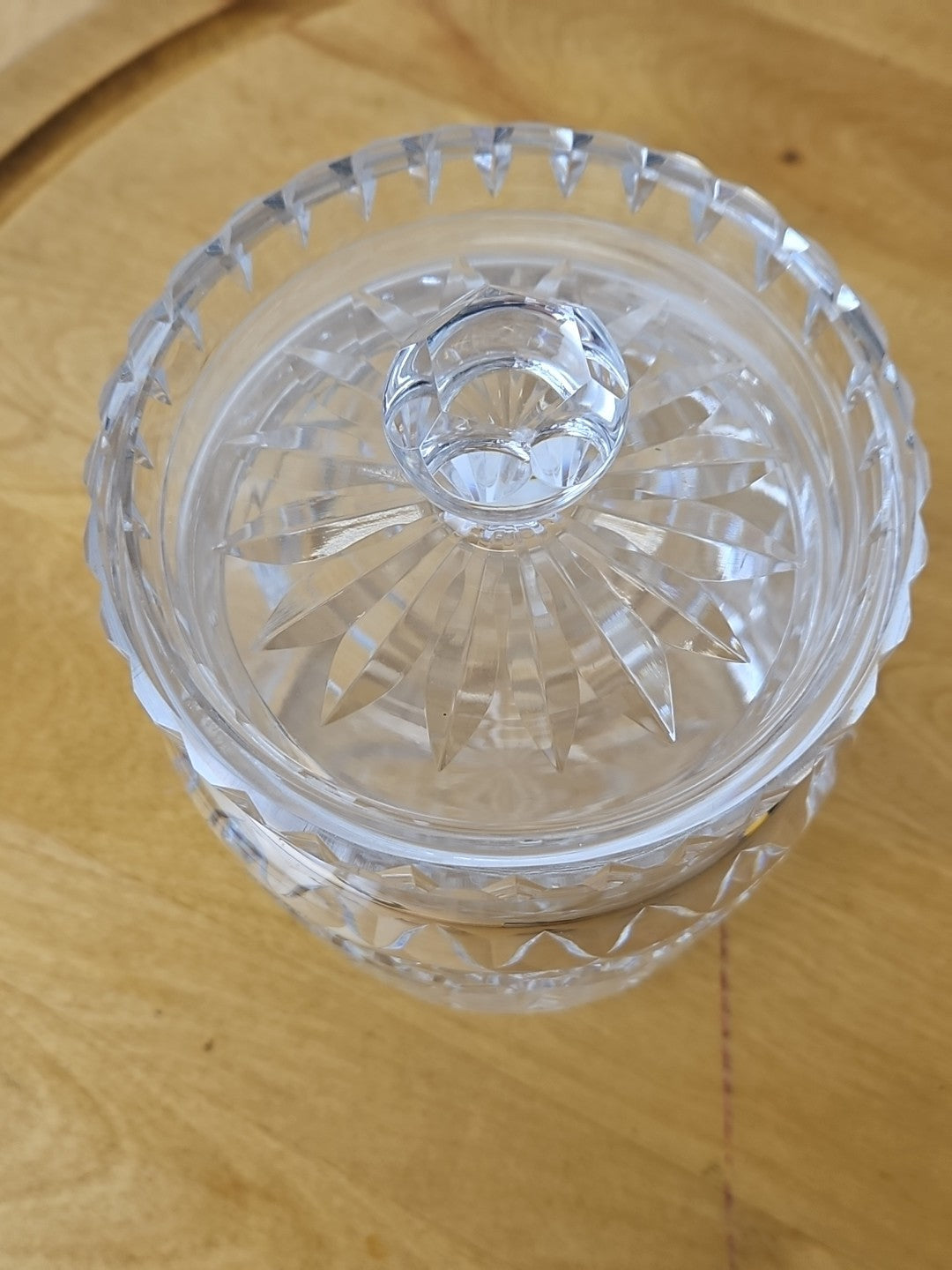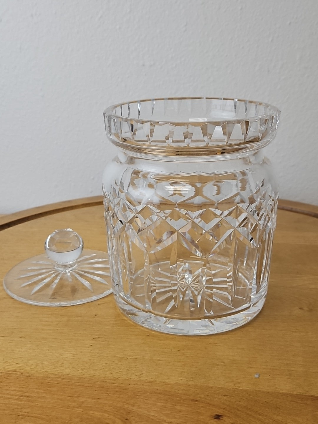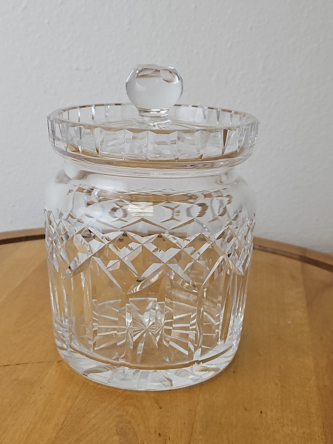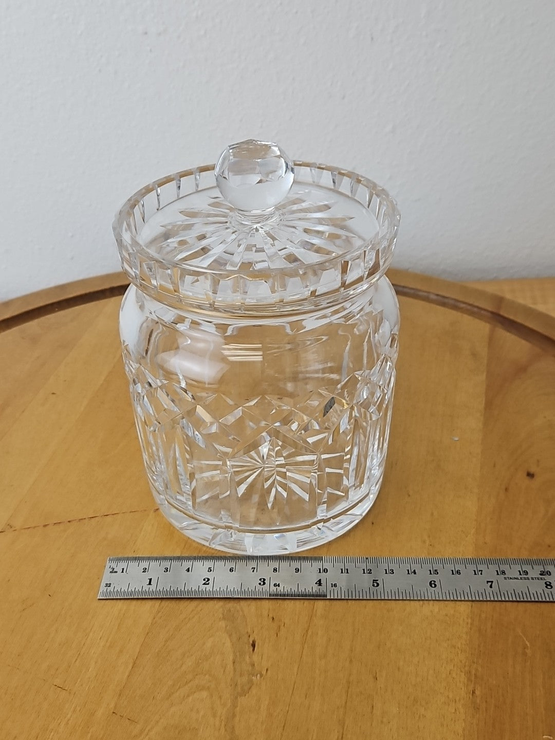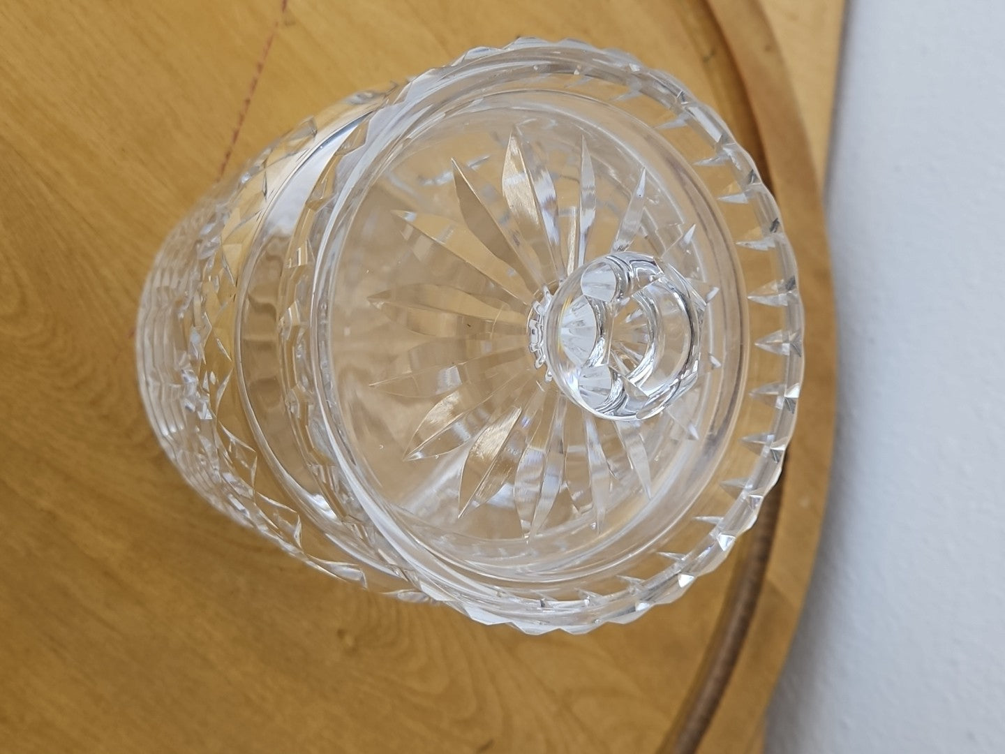 Cut Glass Biscuit Barrel Cookie Jar with lid Diamond Cut (similar to Waterford)