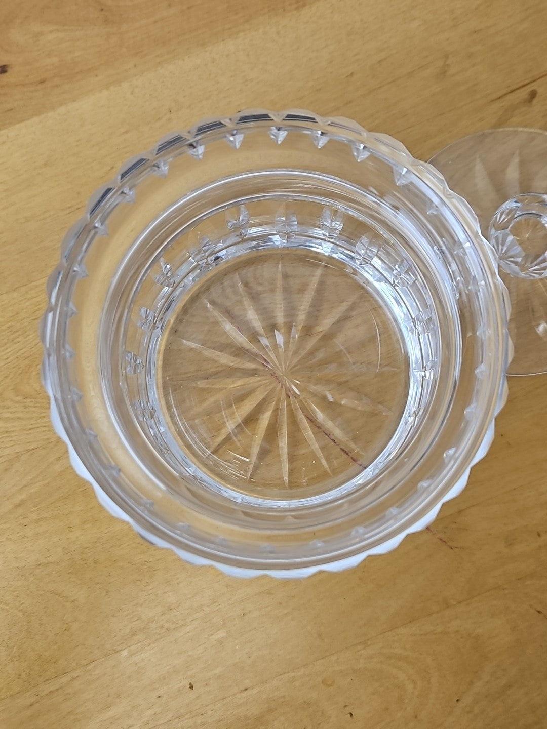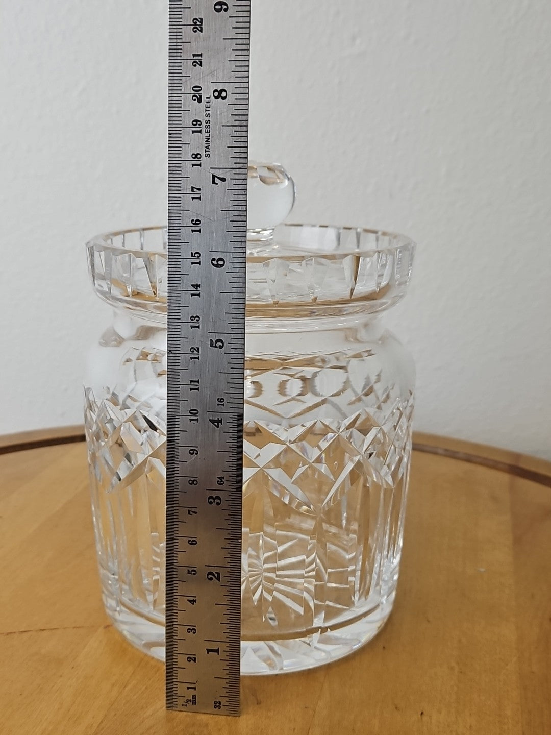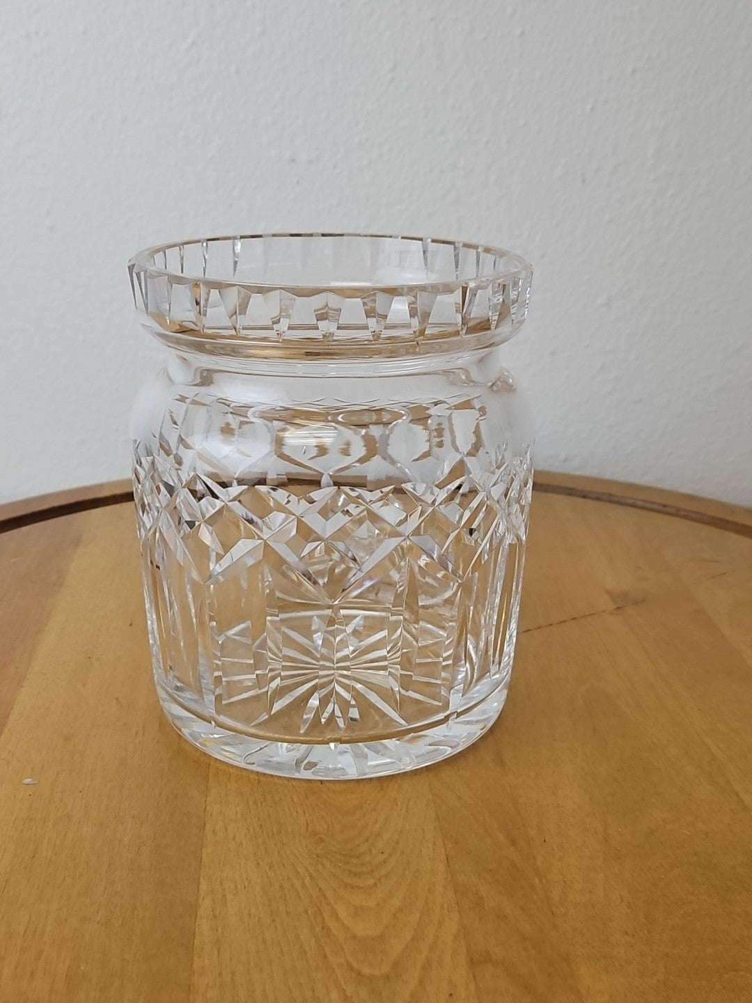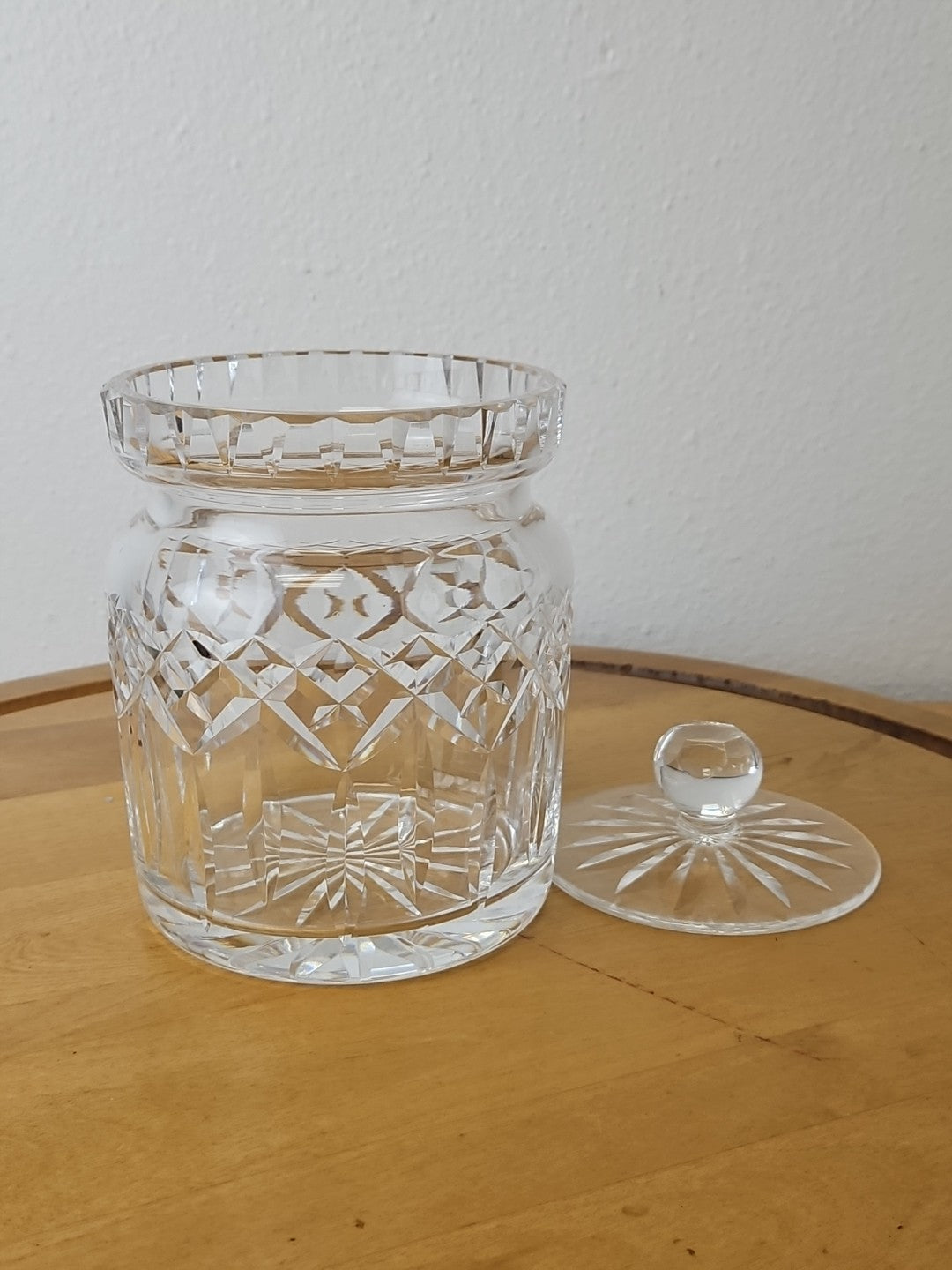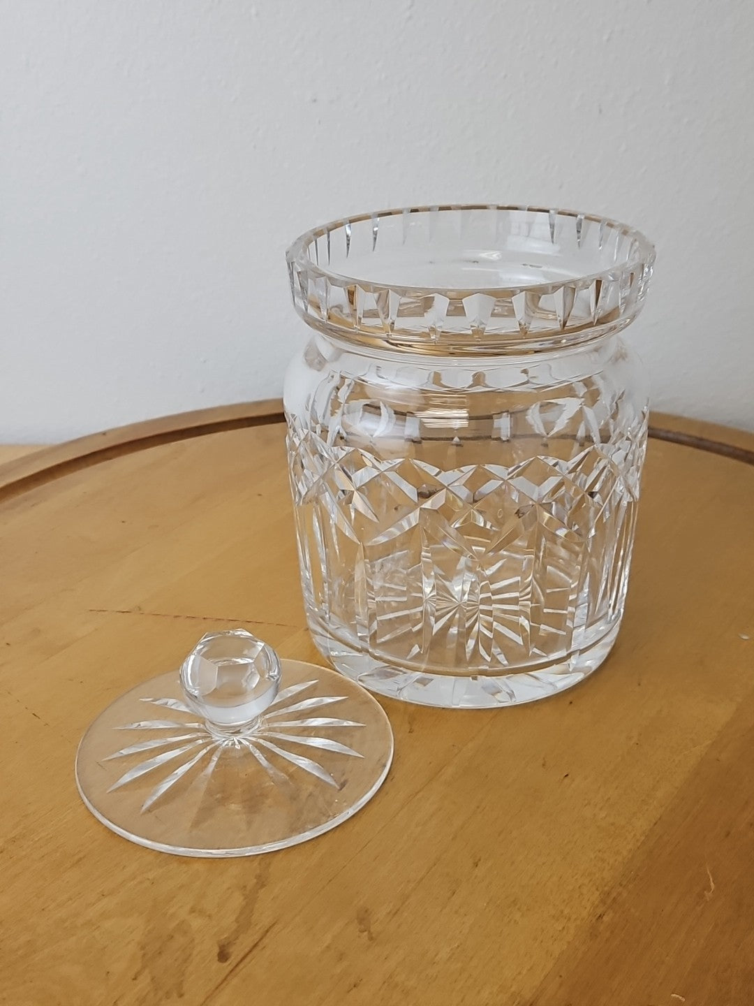 Cut Glass Biscuit Barrel Cookie Jar with lid Diamond Cut (similar to Waterford)