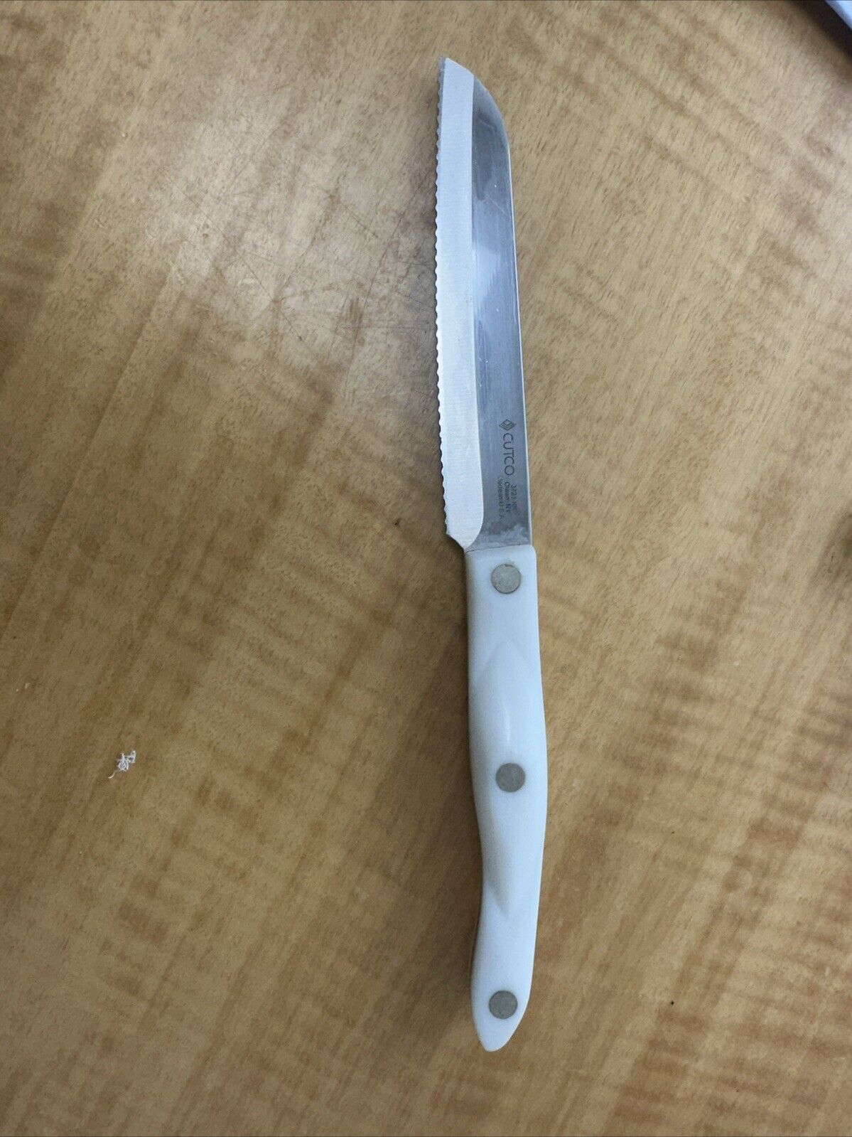 Cutco 3721 KO Santoku Serrated Kitchen Knife Pearl White Handle Vintage