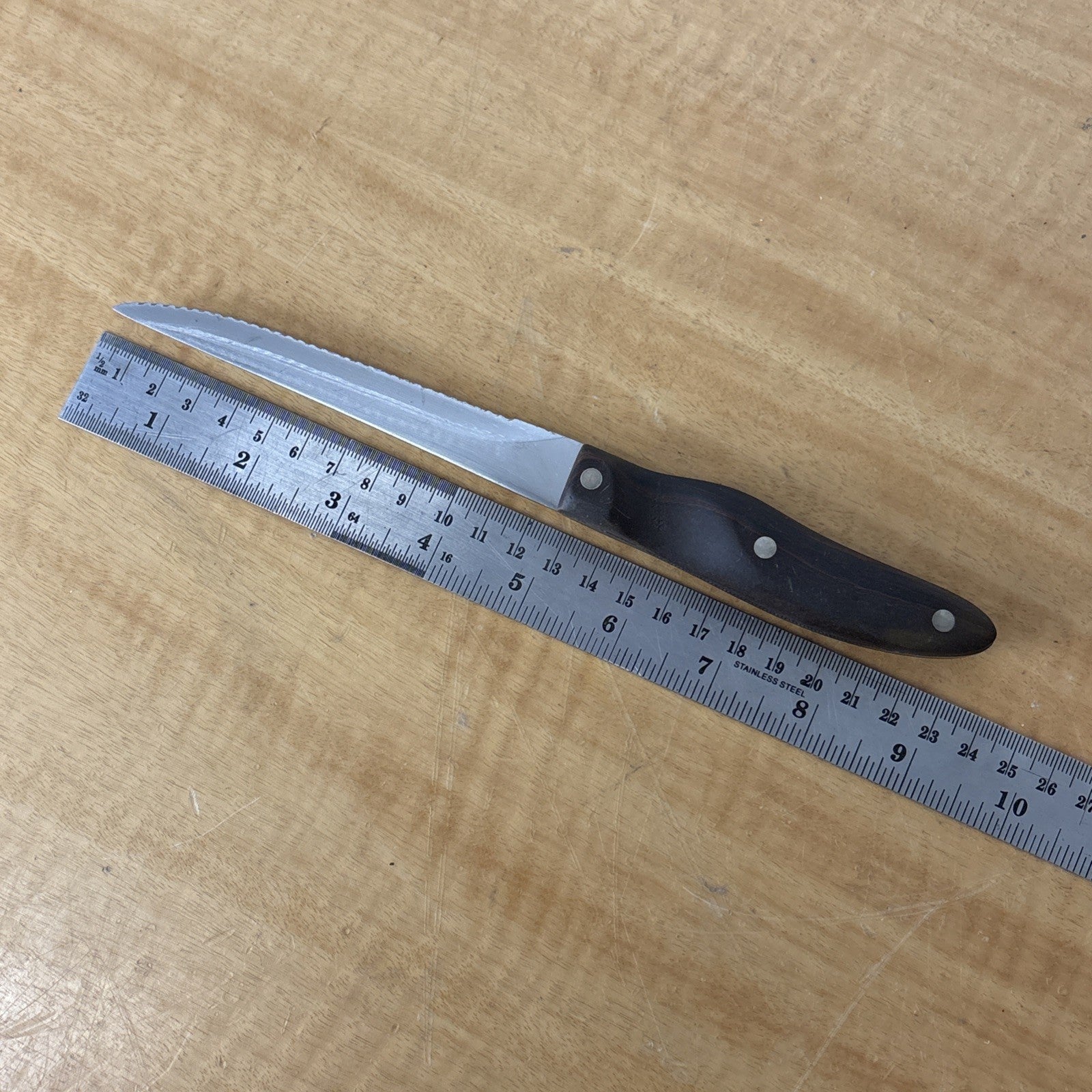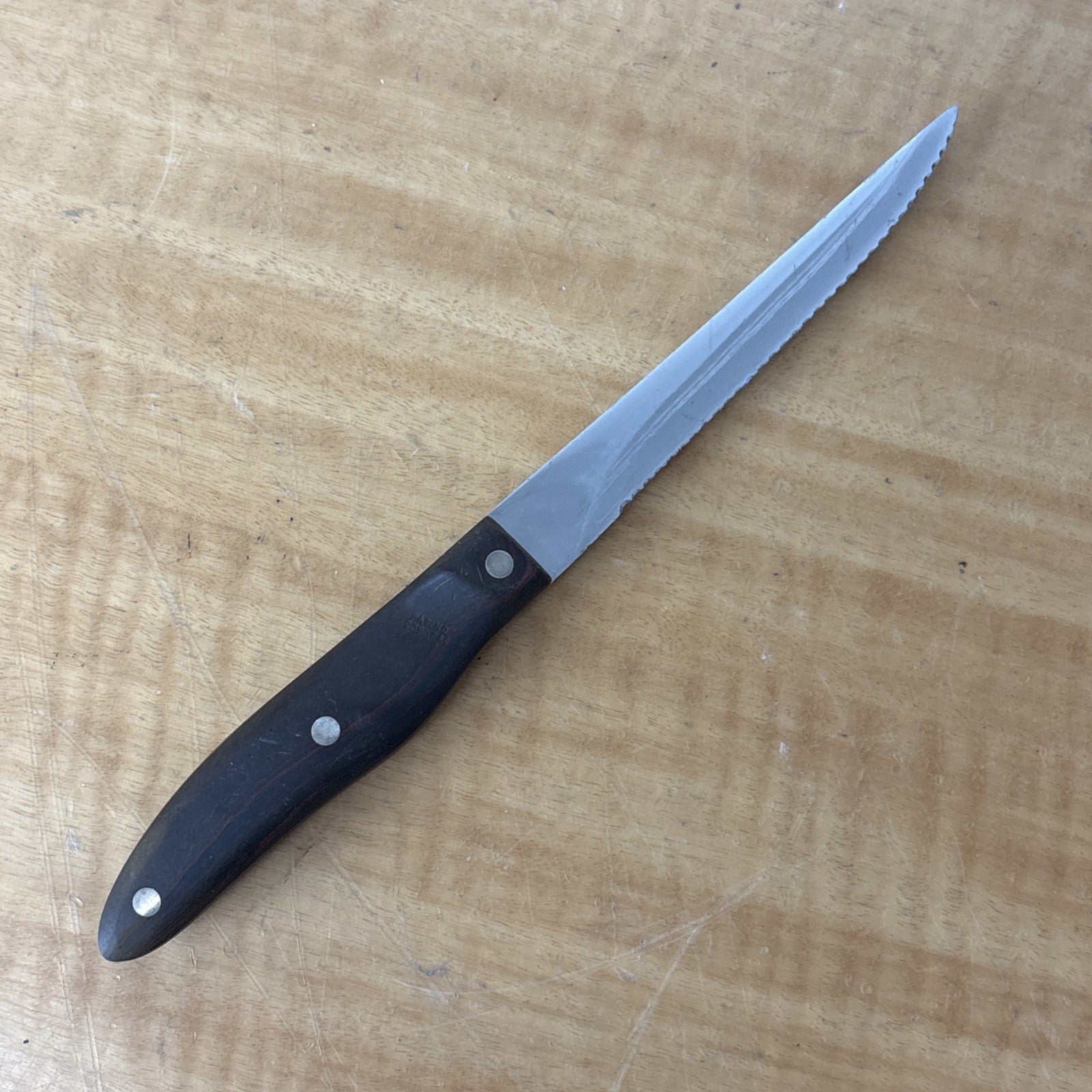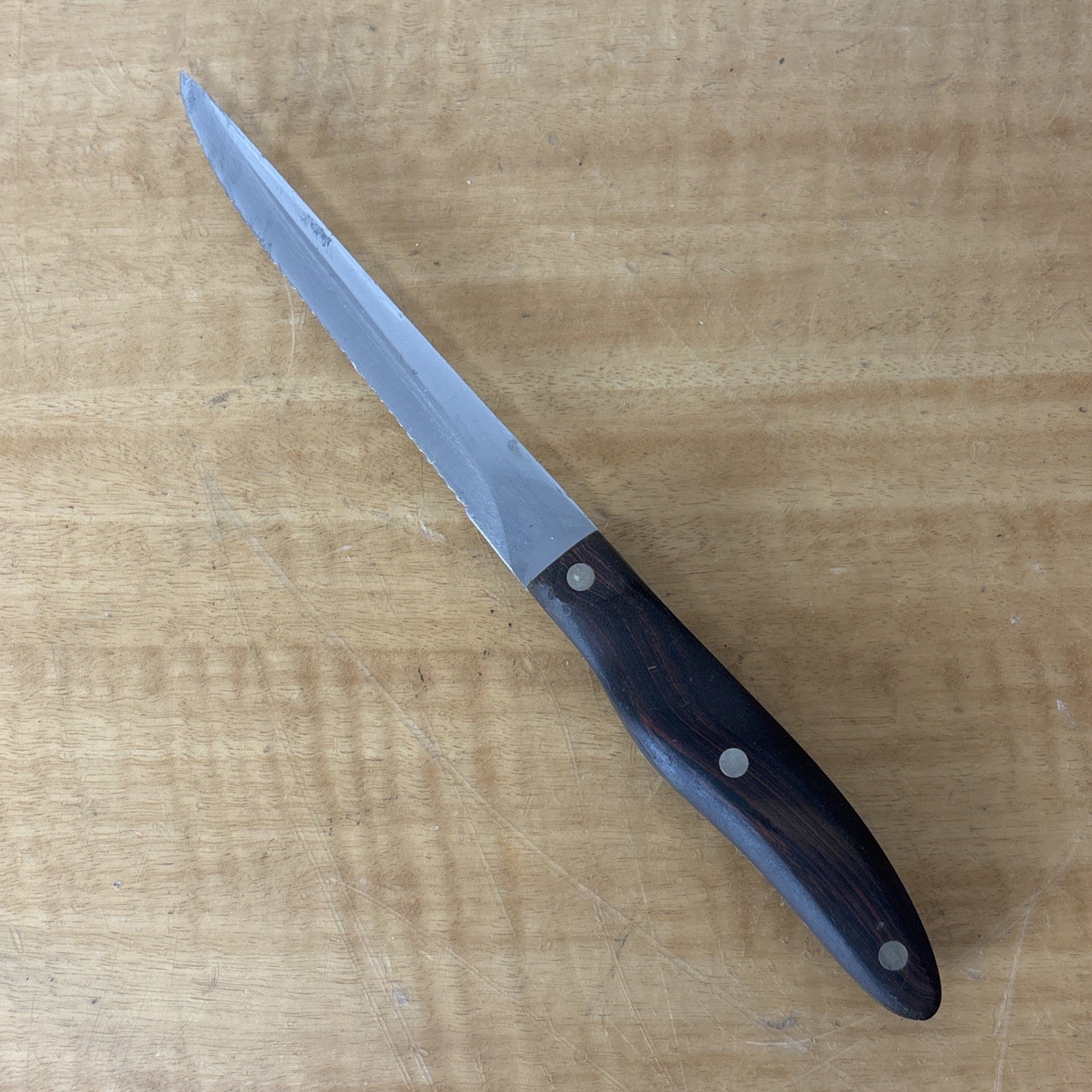 Cutco Serrated Trimming Knife No. 1021 Brown Wooden Orange Swirl Handle