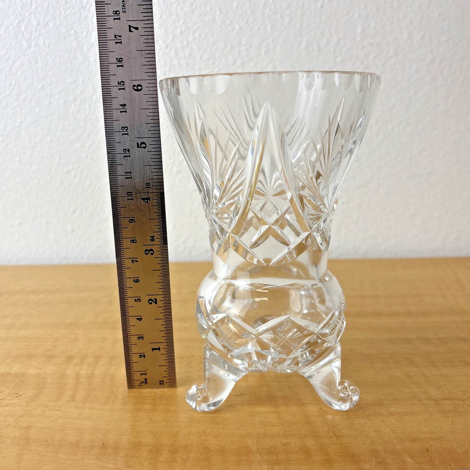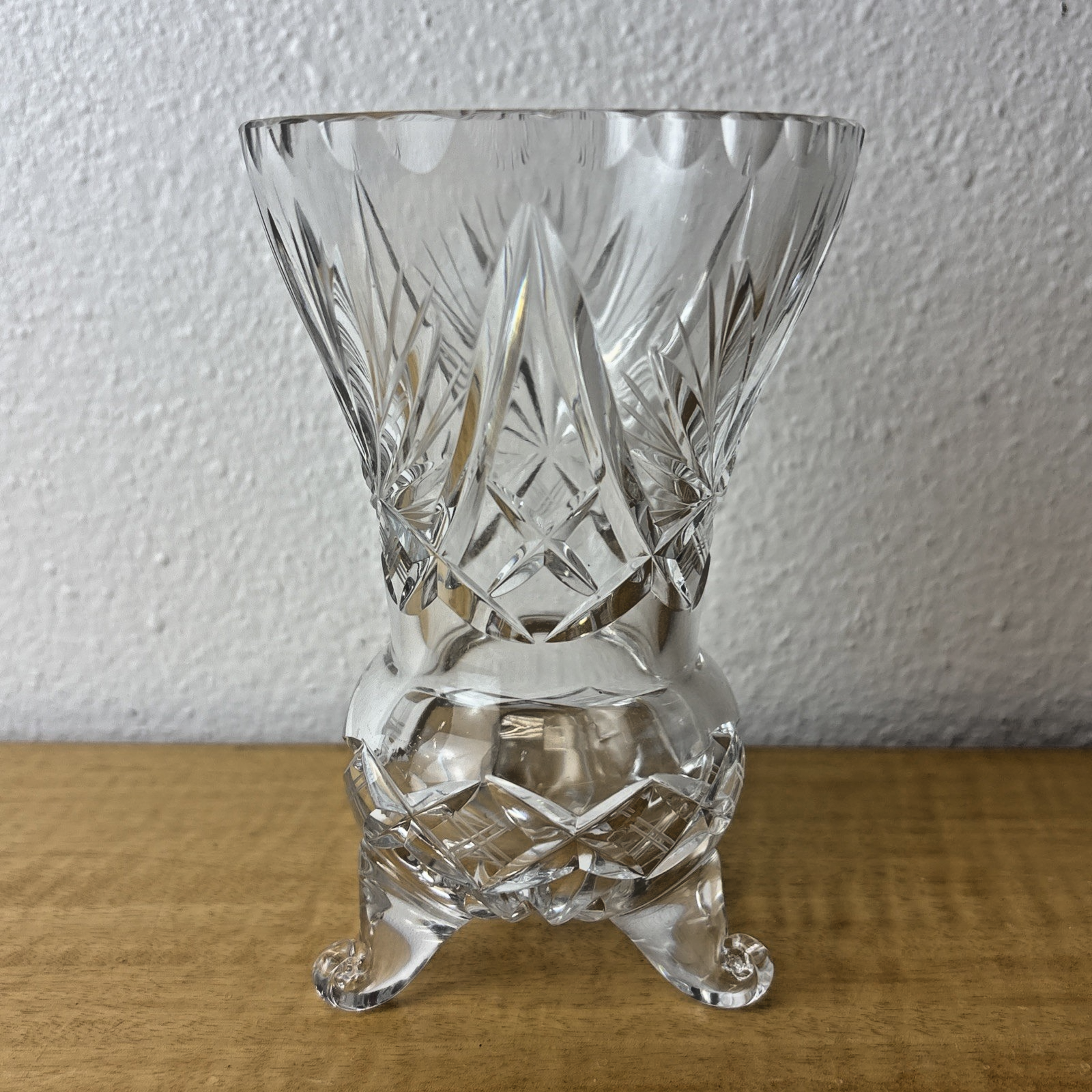 Czechoslovakia Lead Crystal Three Footed Cut Glass Vase 6"