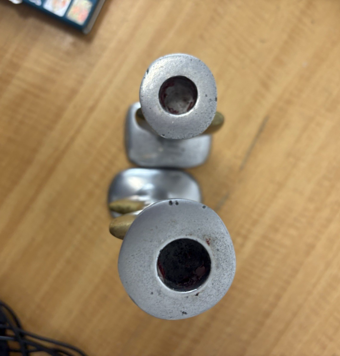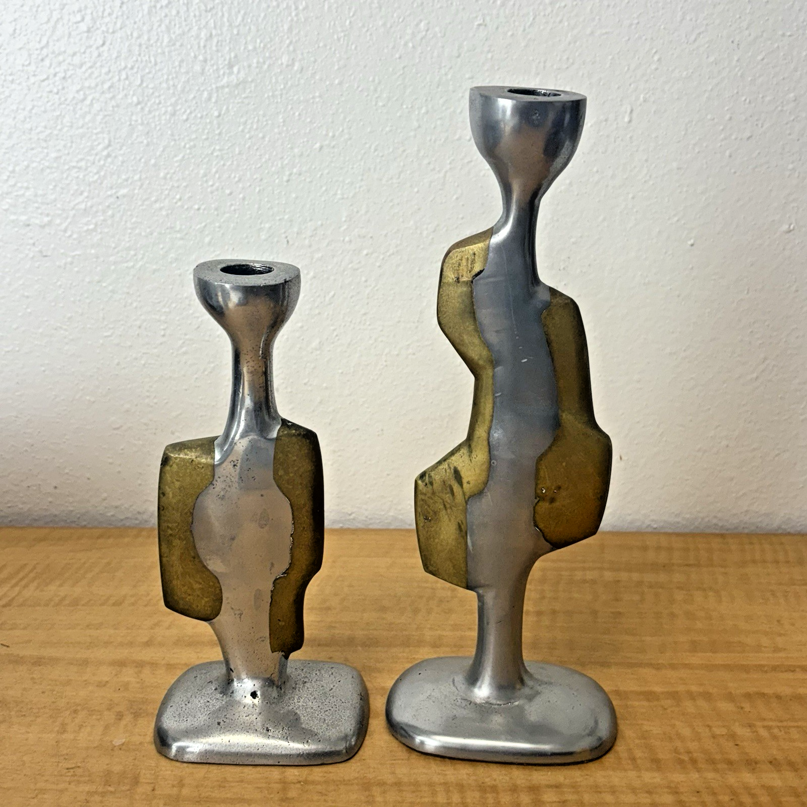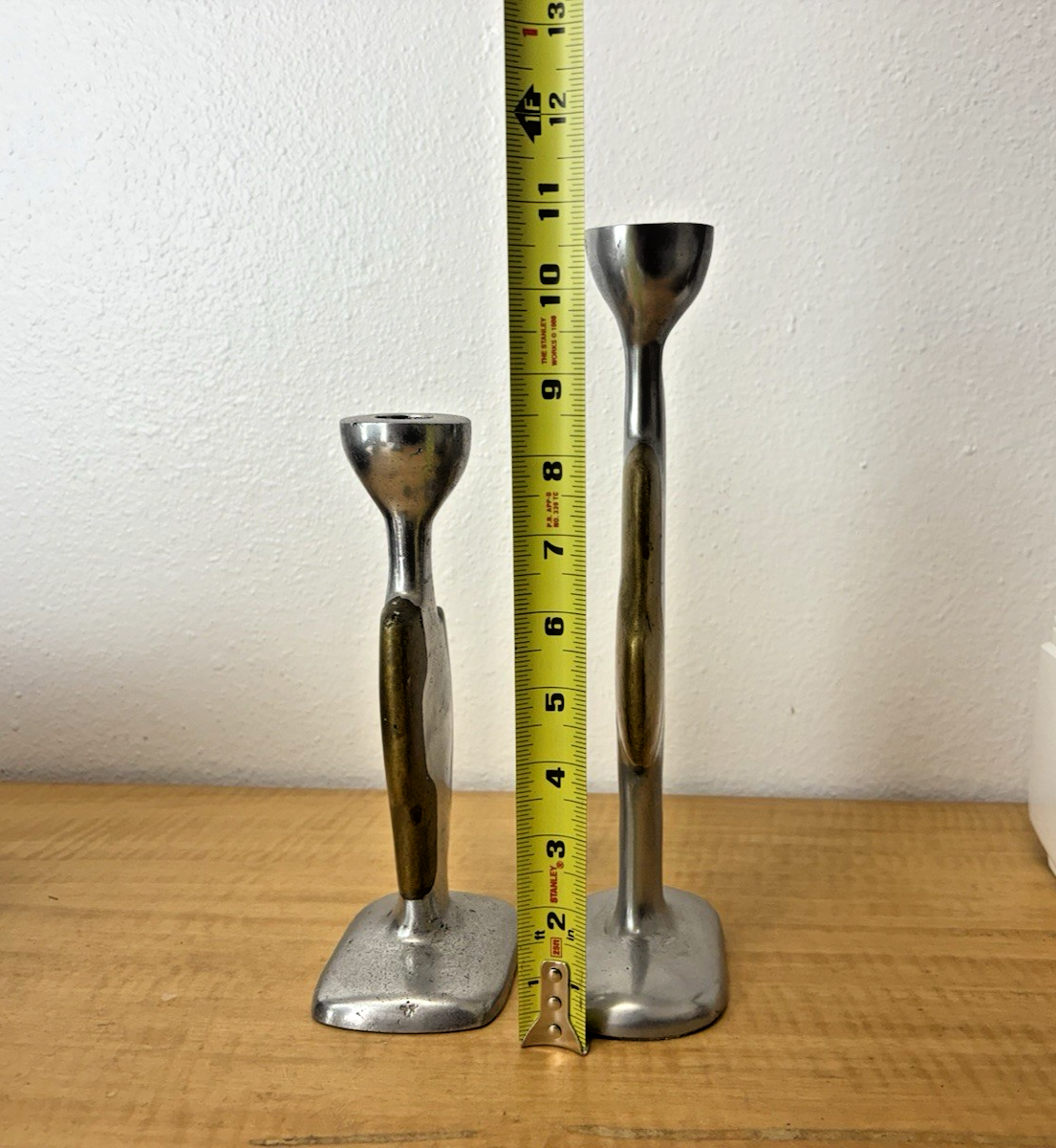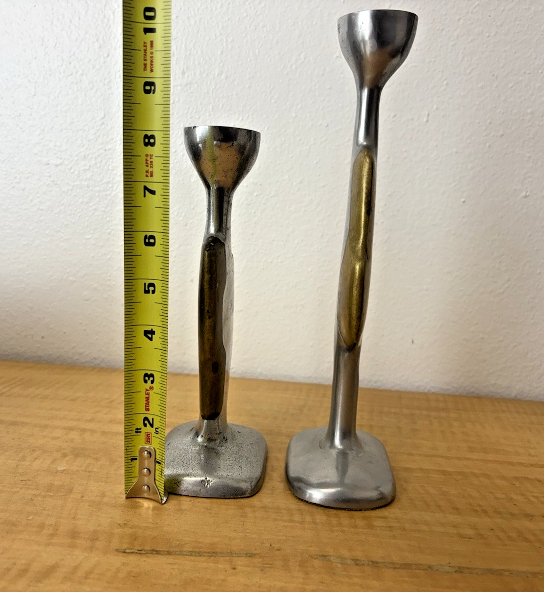 David Marshall Brass Aluminum Brutalist Candlestick Holders Set of 2
