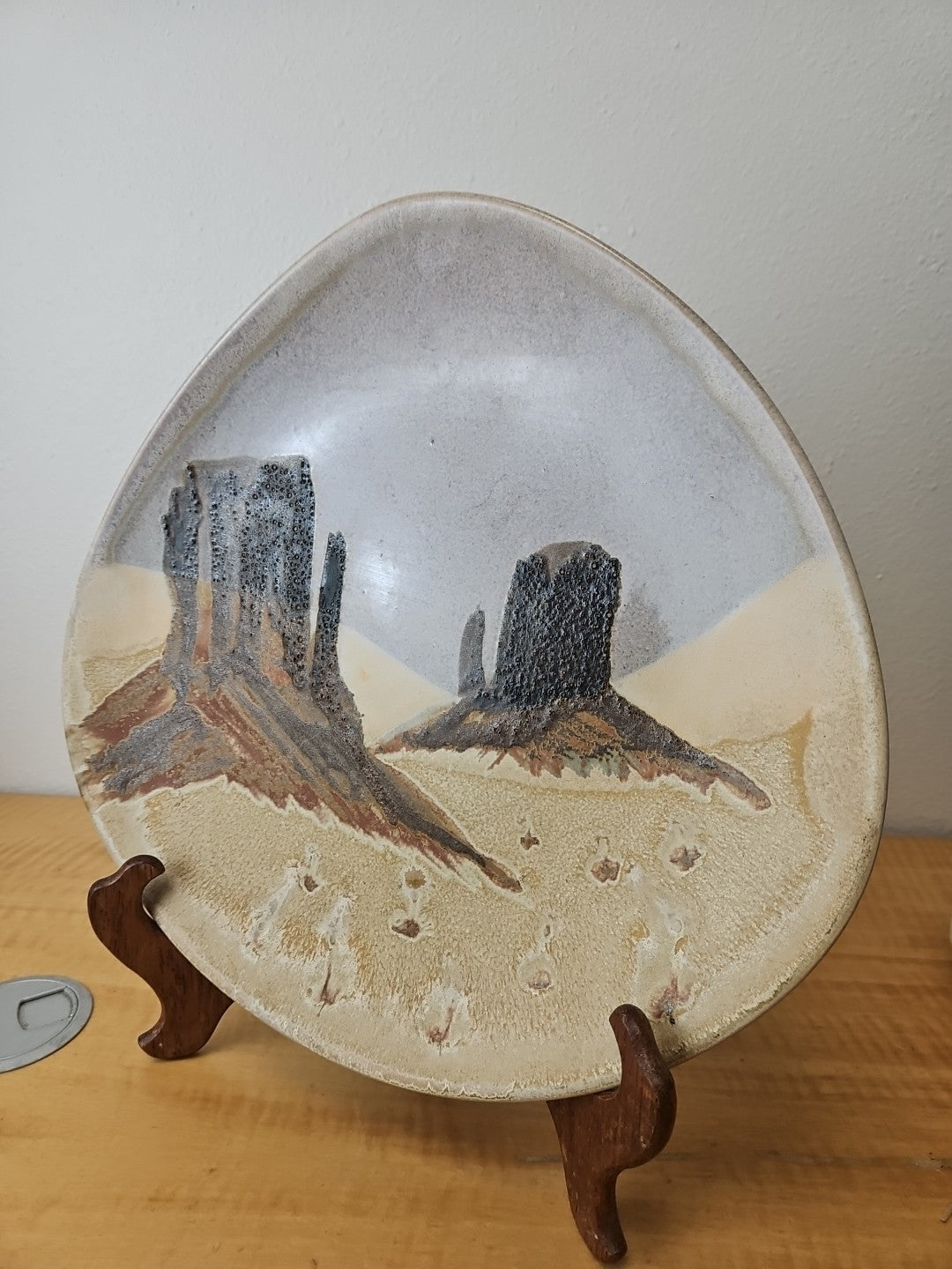 David Salk Hand Made Glazed Pottery Plate 13" Signed 2000 design
