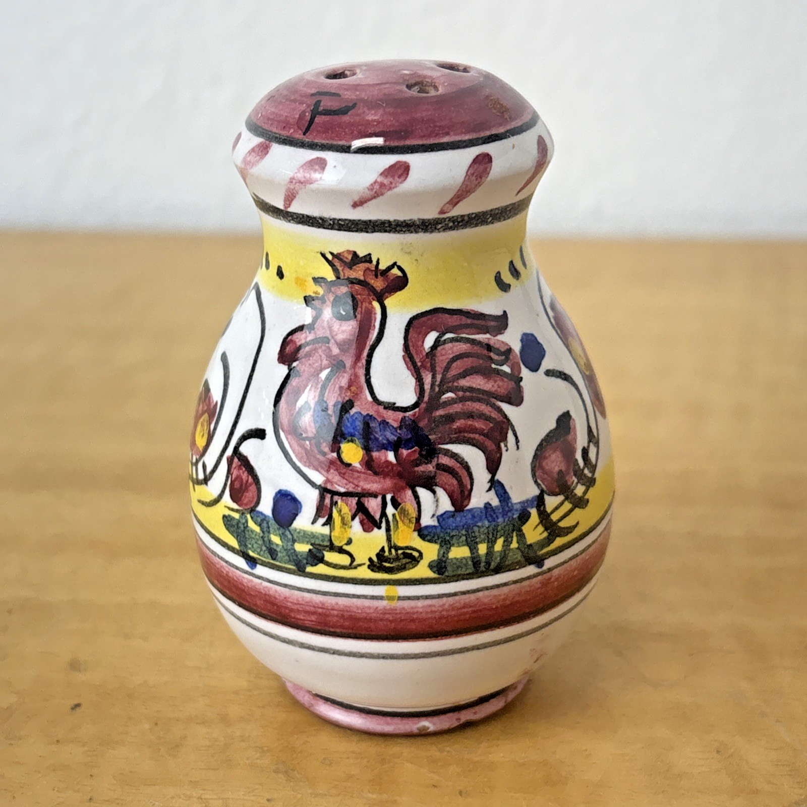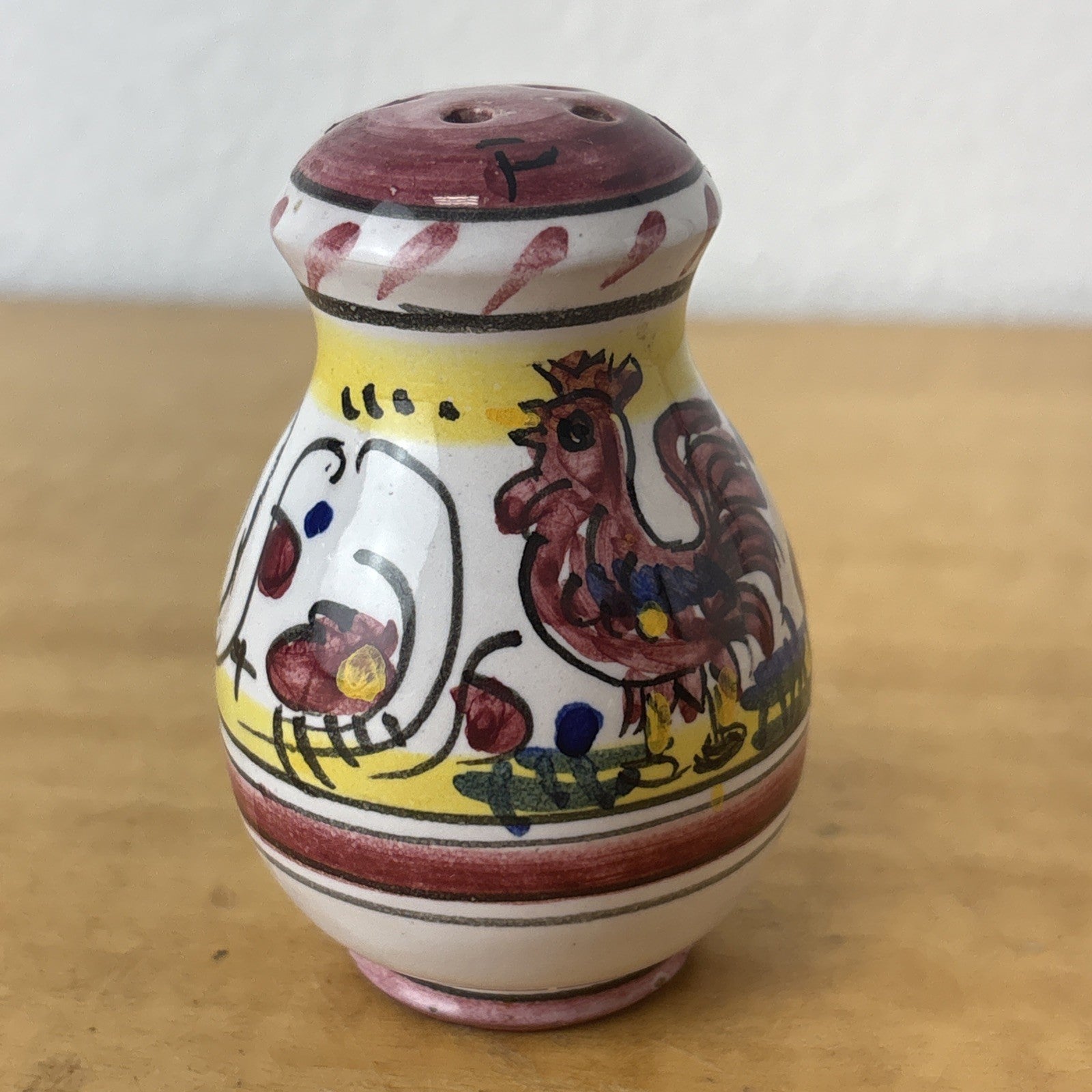 Deruta / Parrini Looking Salt Shaker w/ Red Rooster Handpainted
