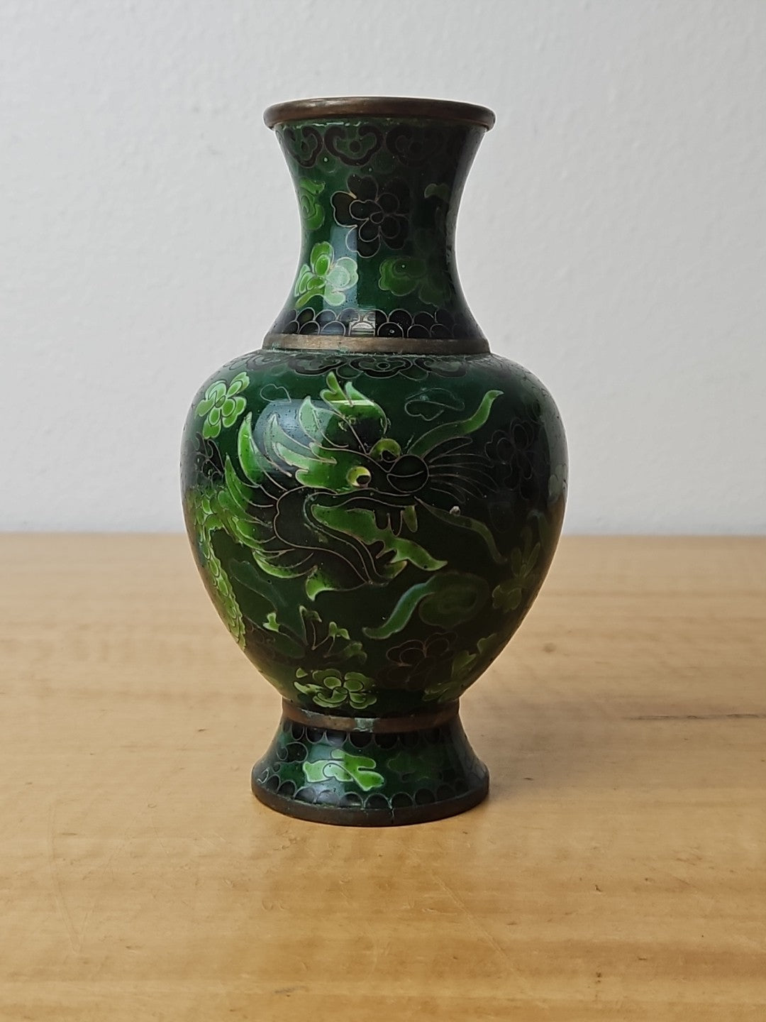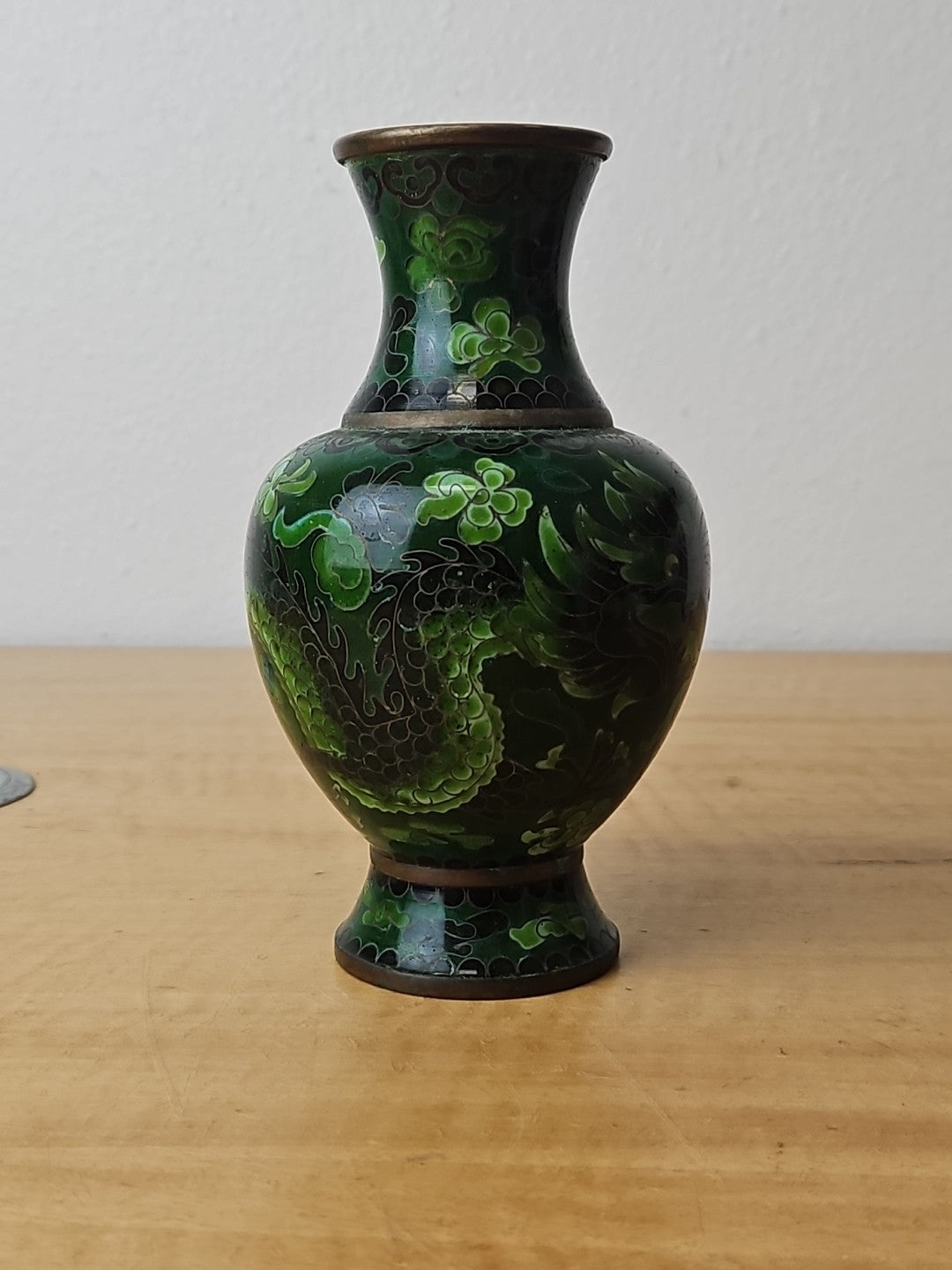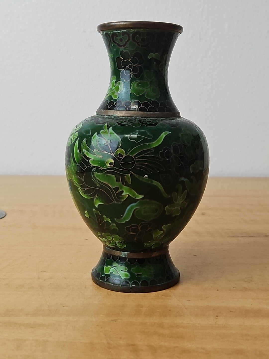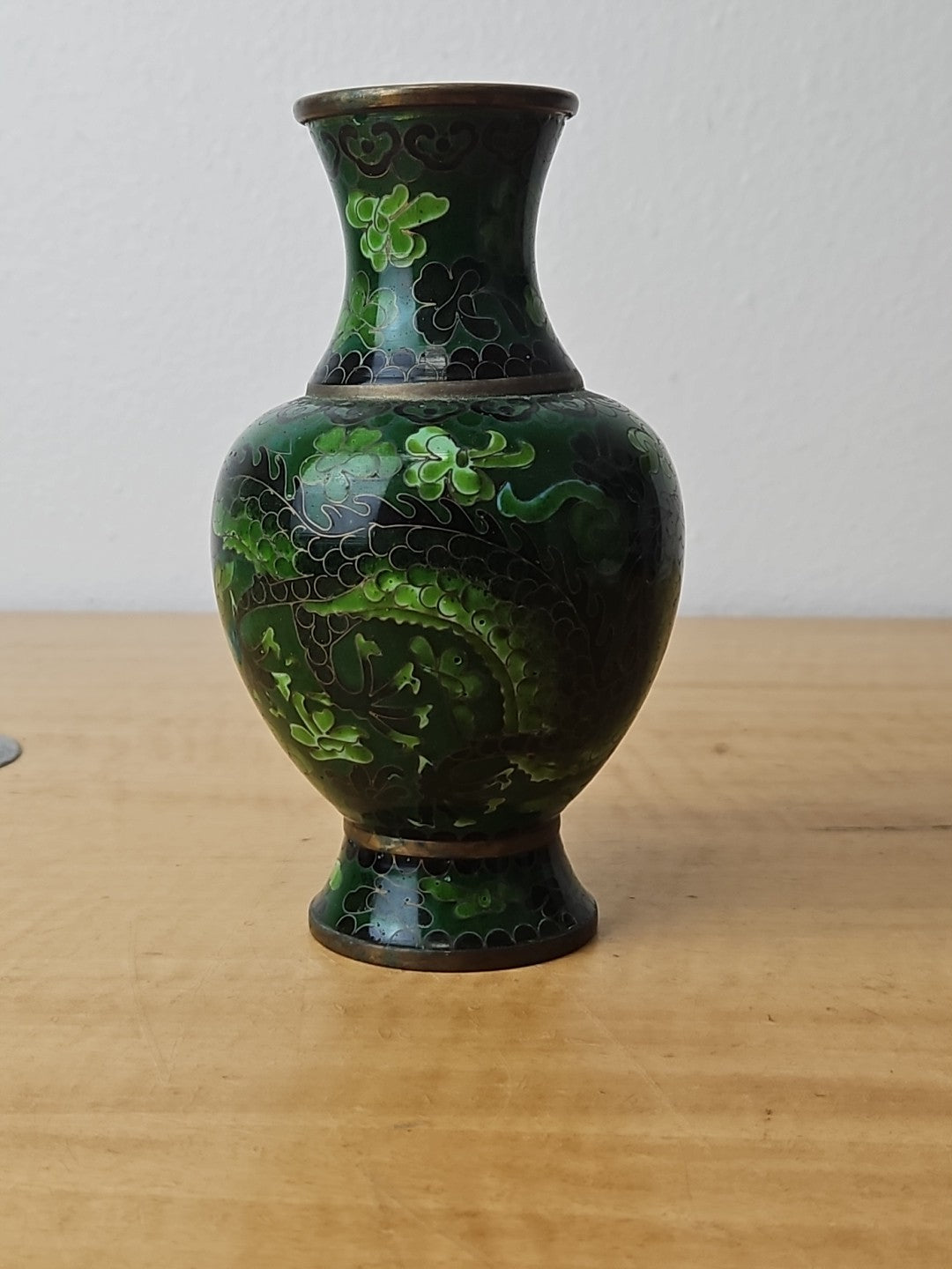 Dragon Cloisonne Vase Green Monochromatic Enamel 6"
