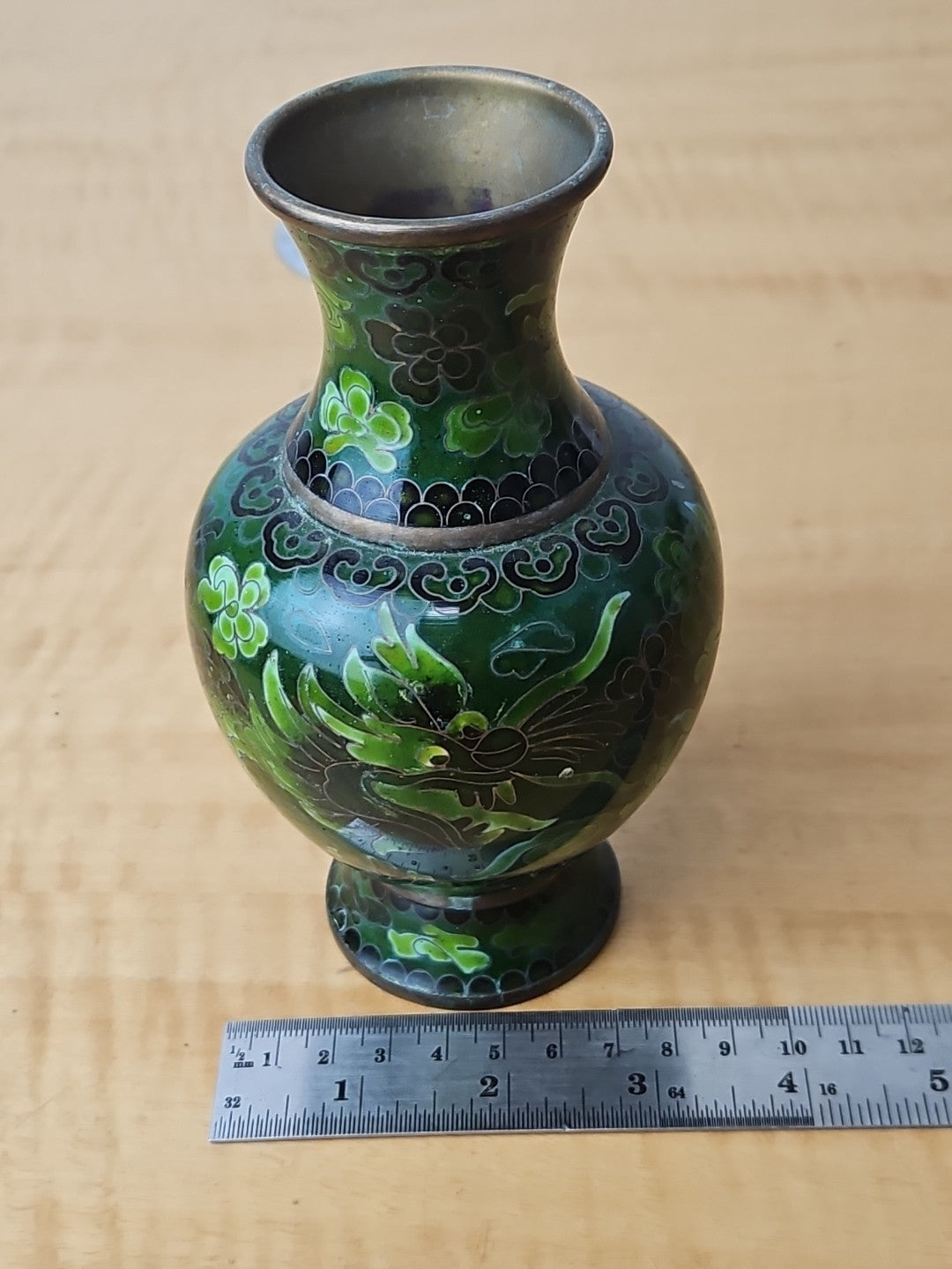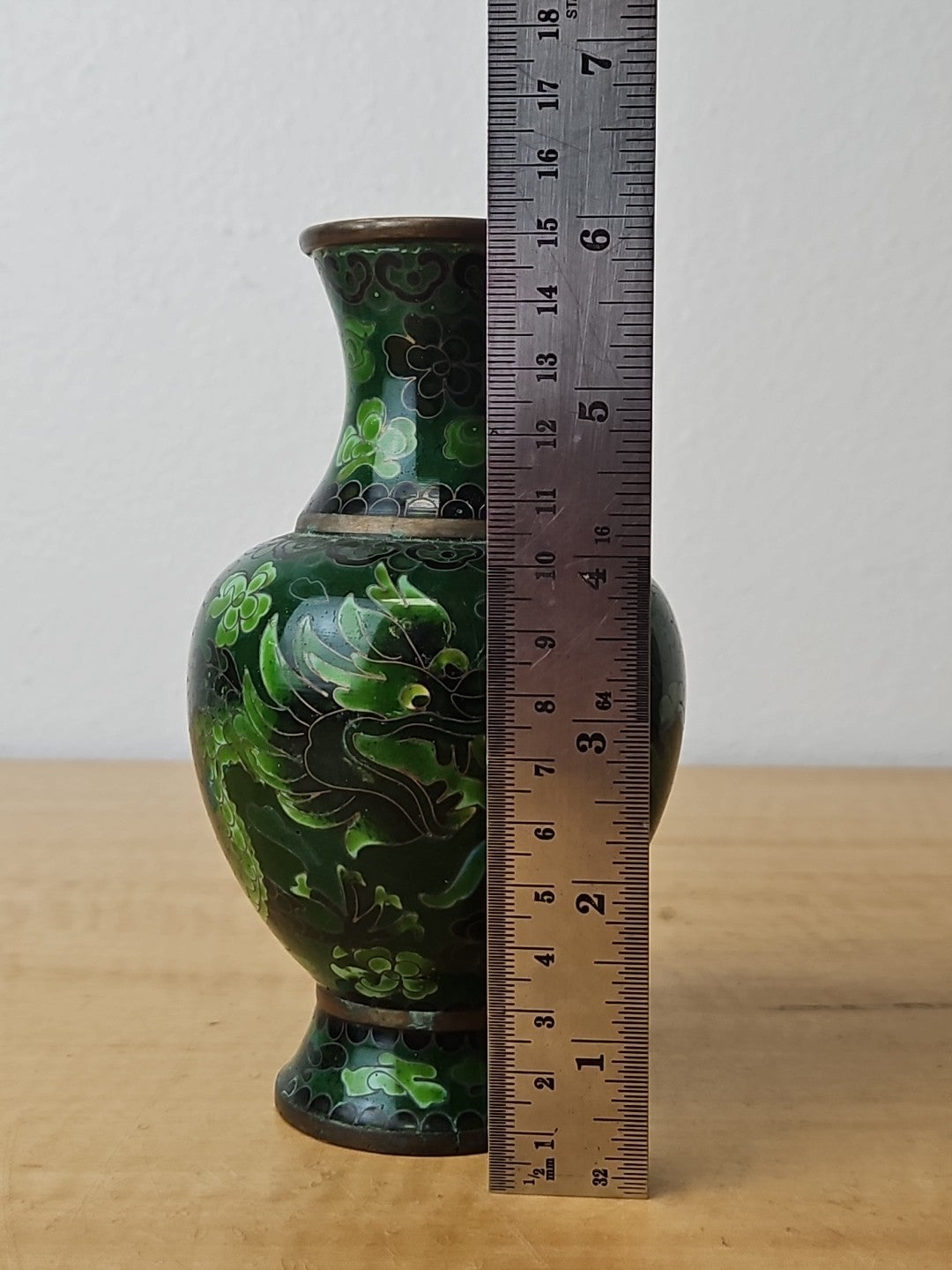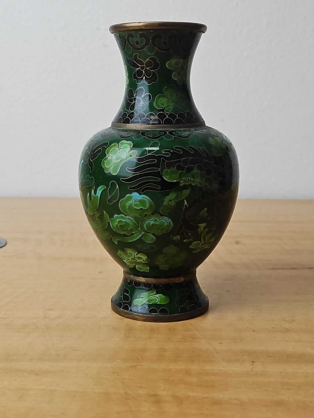 Dragon Cloisonne Vase Green Monochromatic Enamel 6"