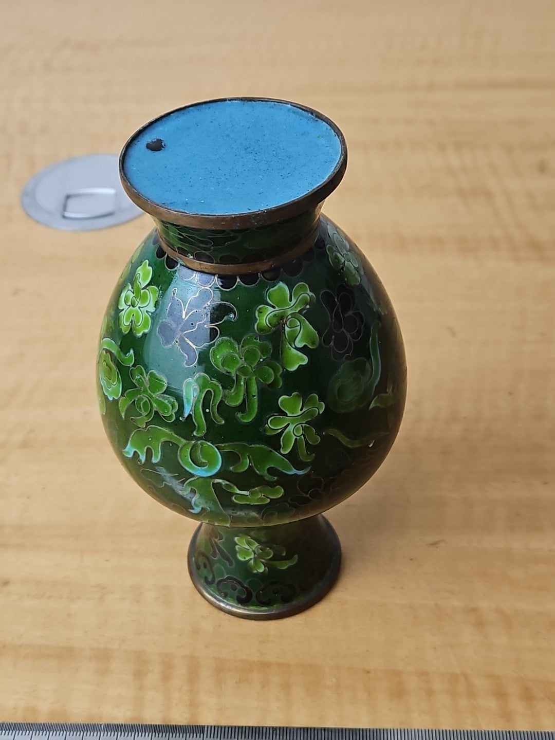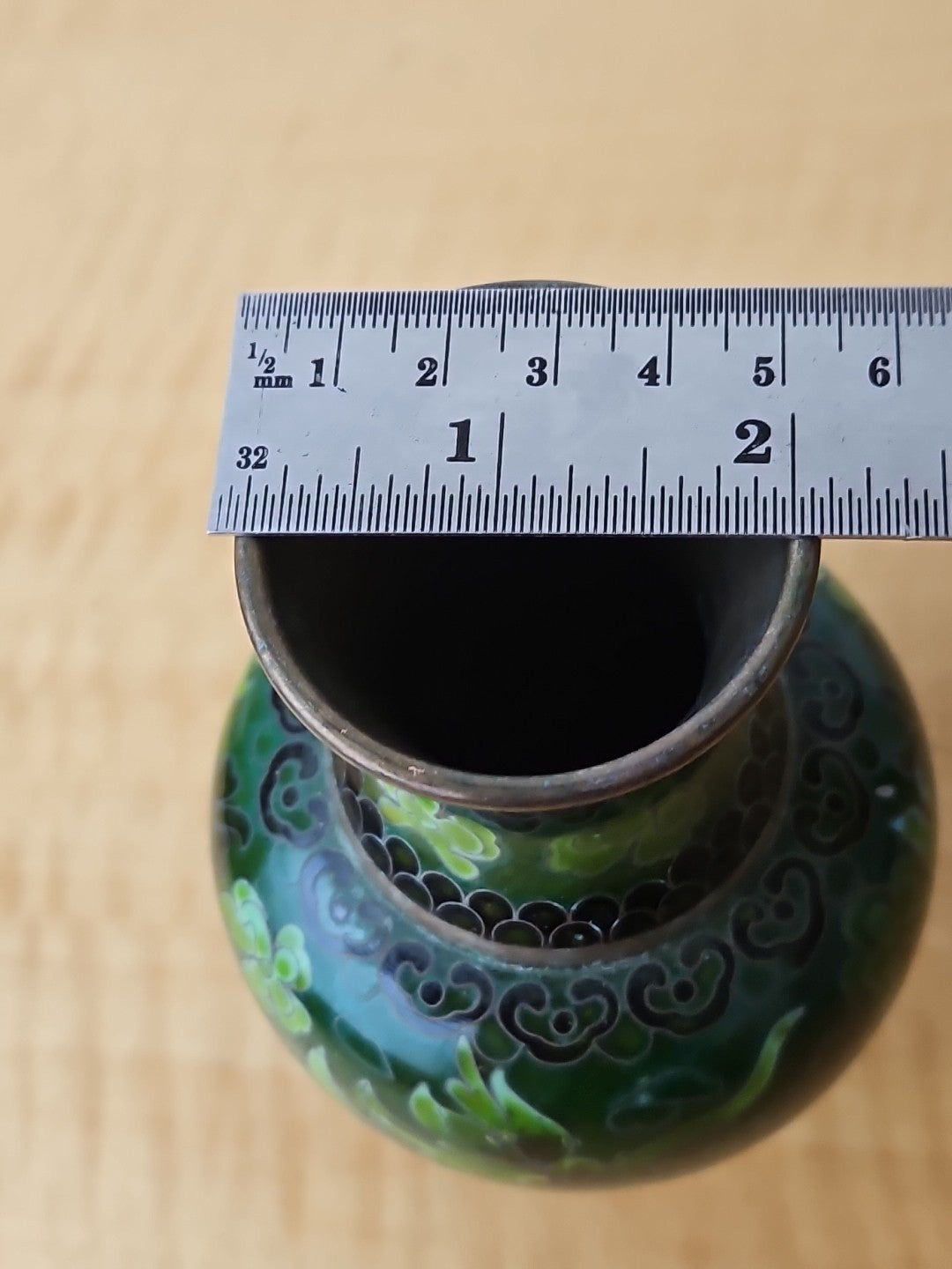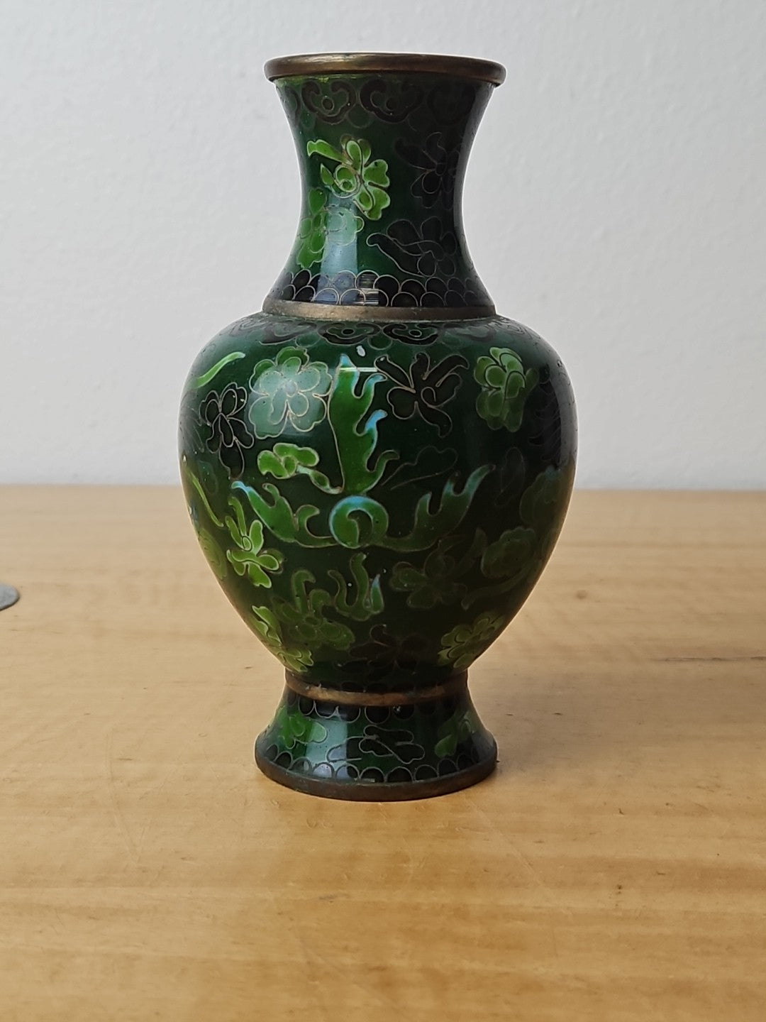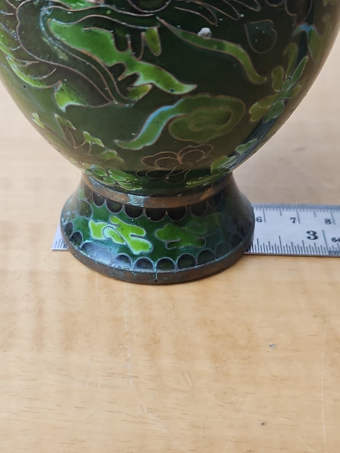 Dragon Cloisonne Vase Green Monochromatic Enamel 6"