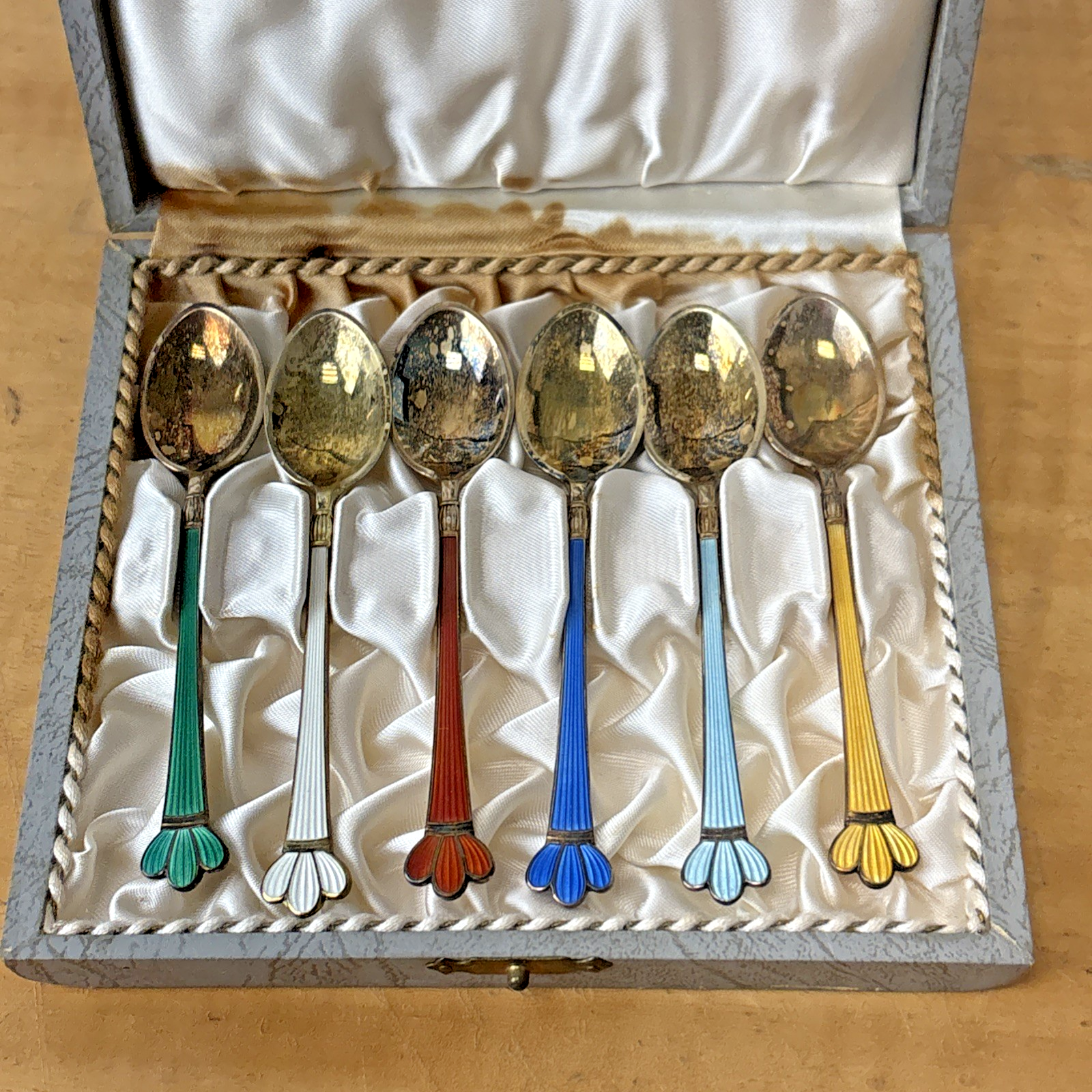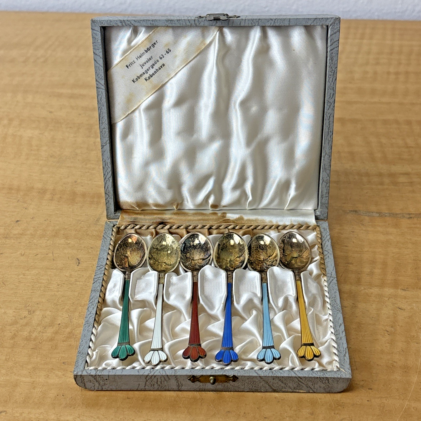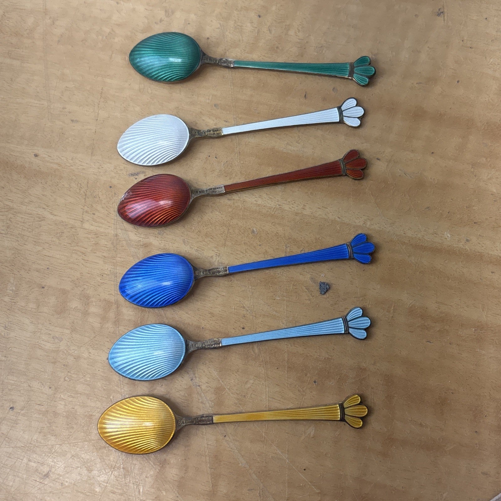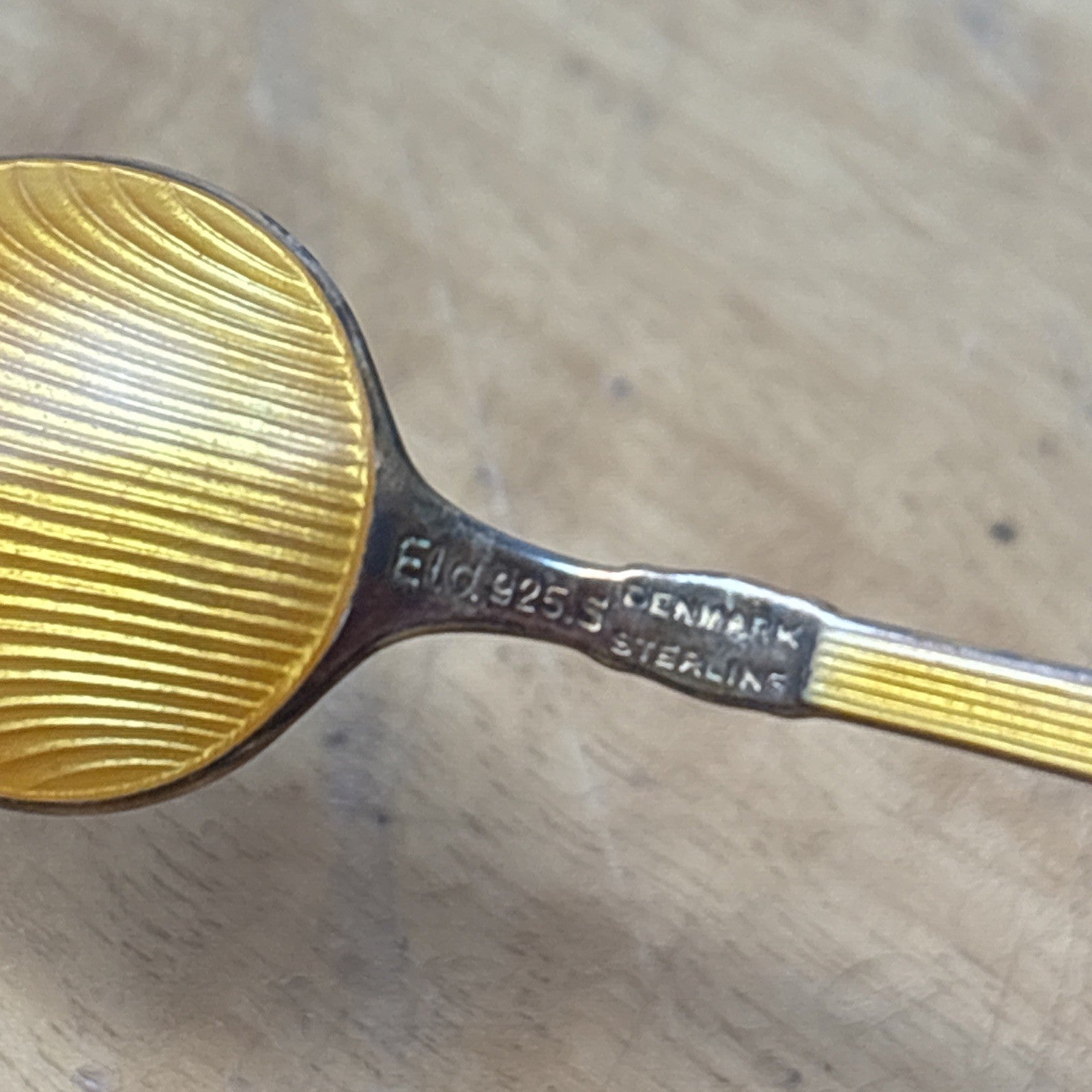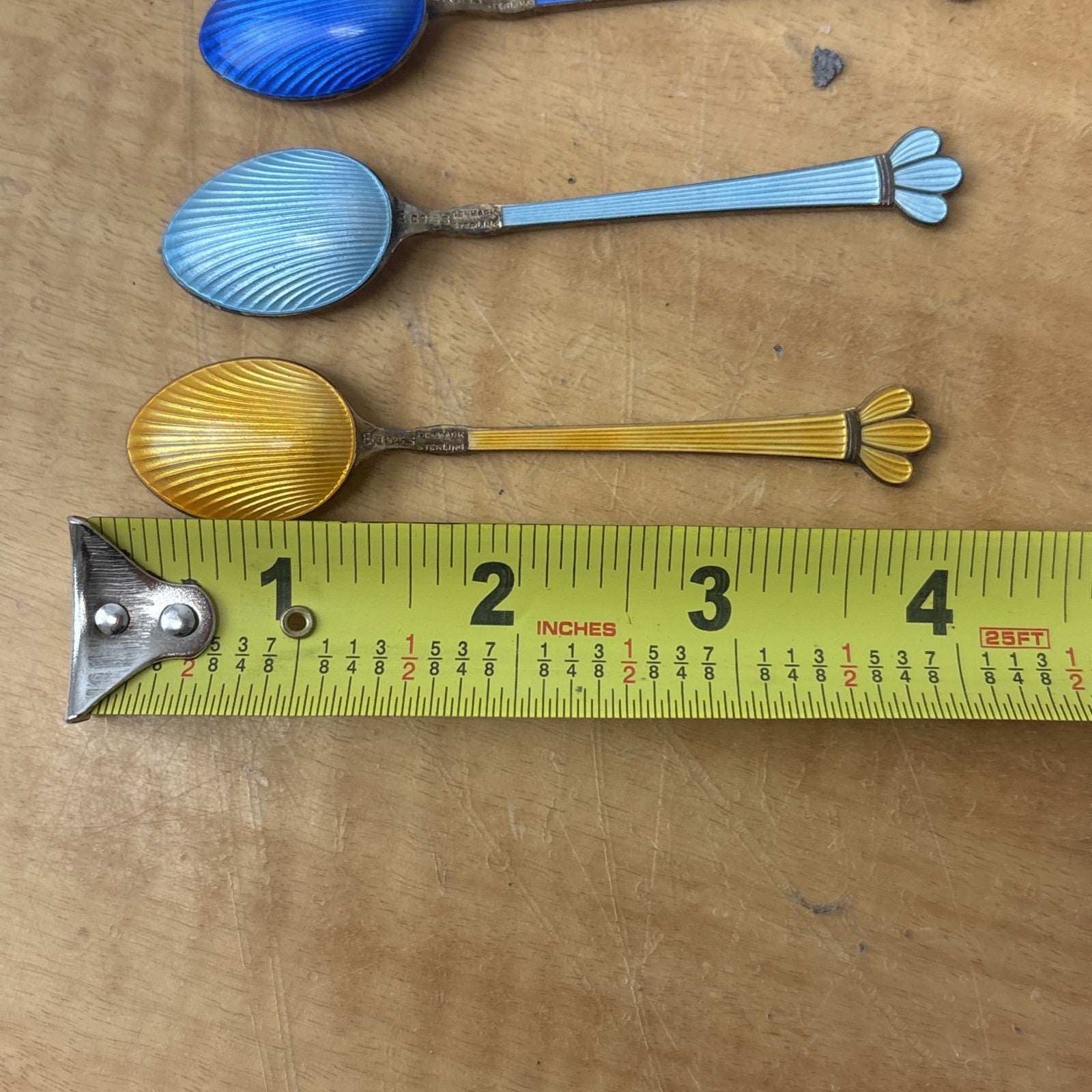 ELA Denmark .925 Sterling Silver Demitasse Spoons Enamel Coating Gold Wash