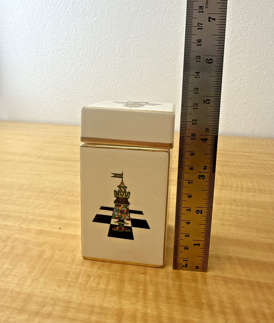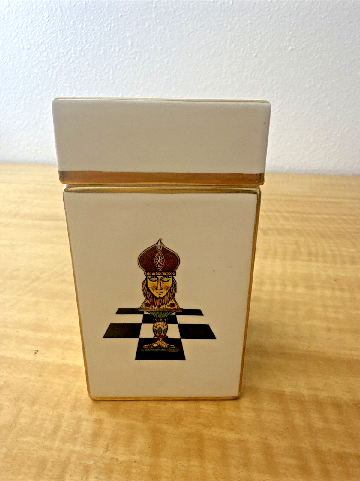 Entrancing 1960s Carlton Ware Box - Surrealist Chessmen w gilded edges 4.5" h.