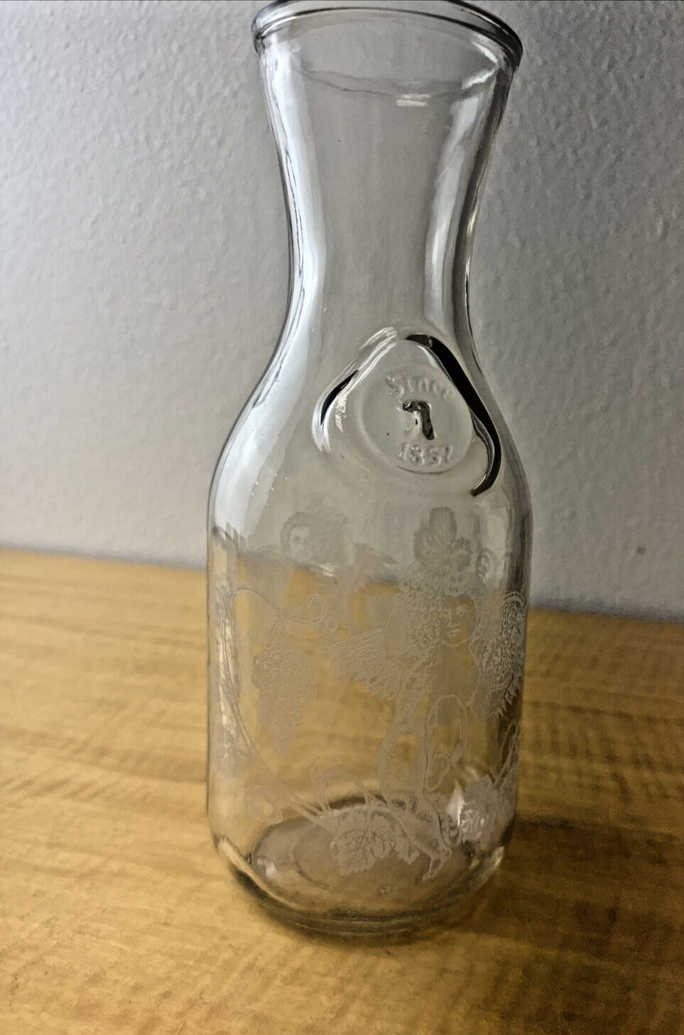 Etched Glass Wine Carafe. Paul Masso Vine Yards1989. Etched Norman Kosarin