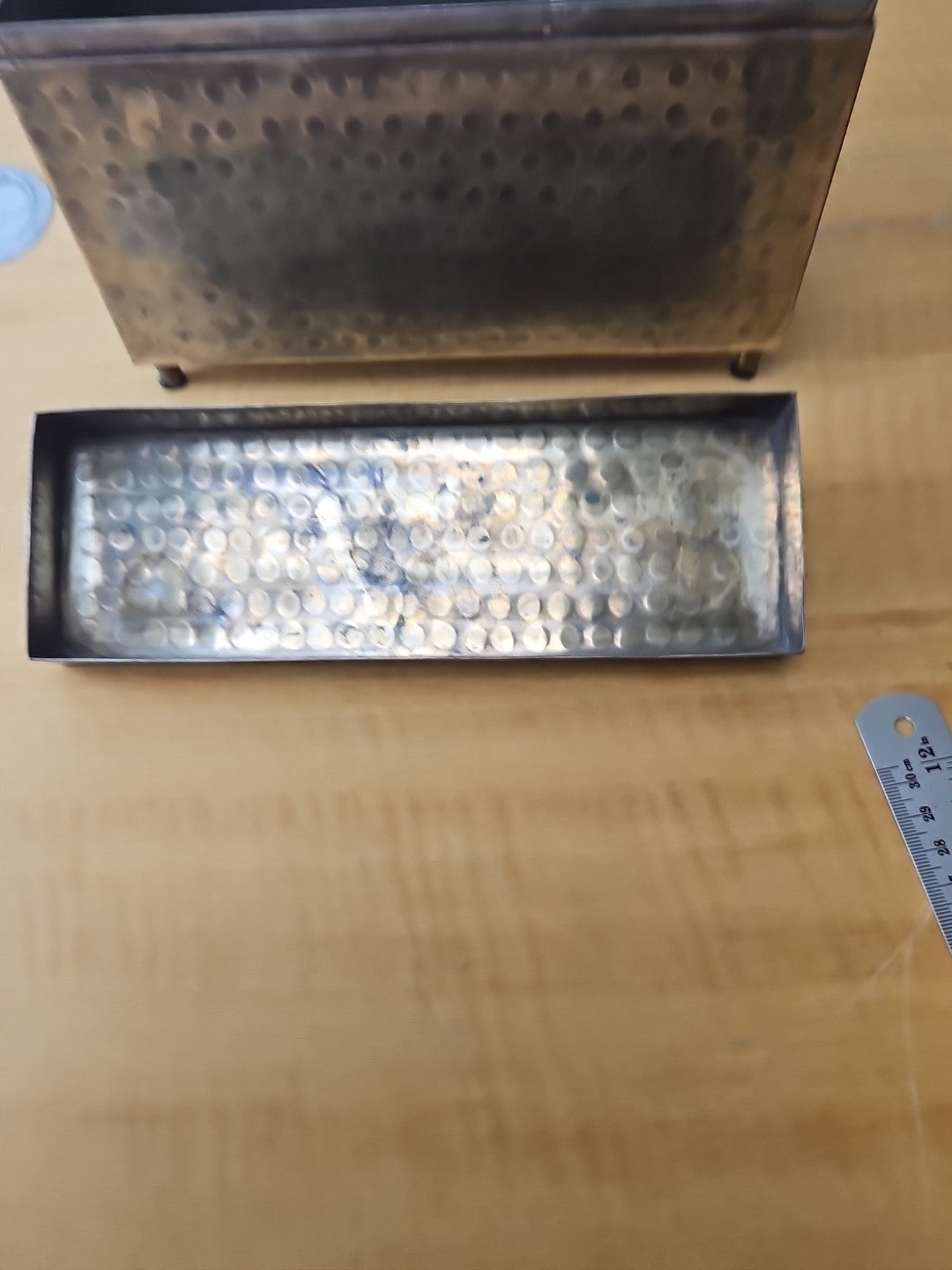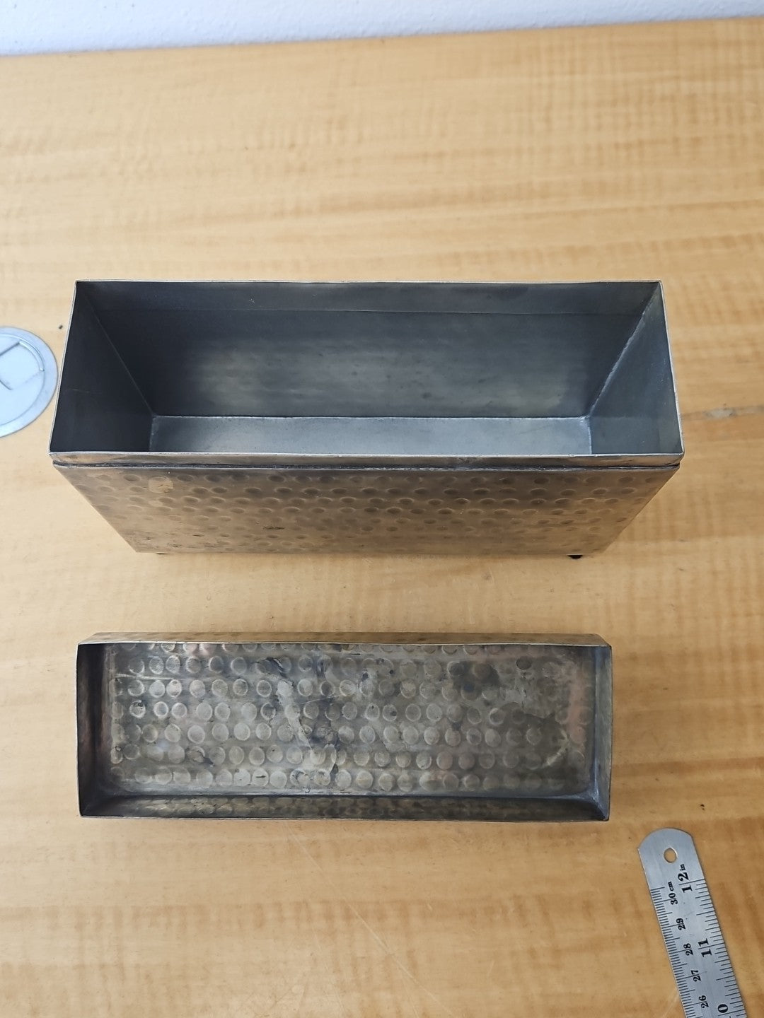 Ethan Allan Hammered Metal Arts & Crafts Style Worn Metal Trinket Box 9"x6"x3"