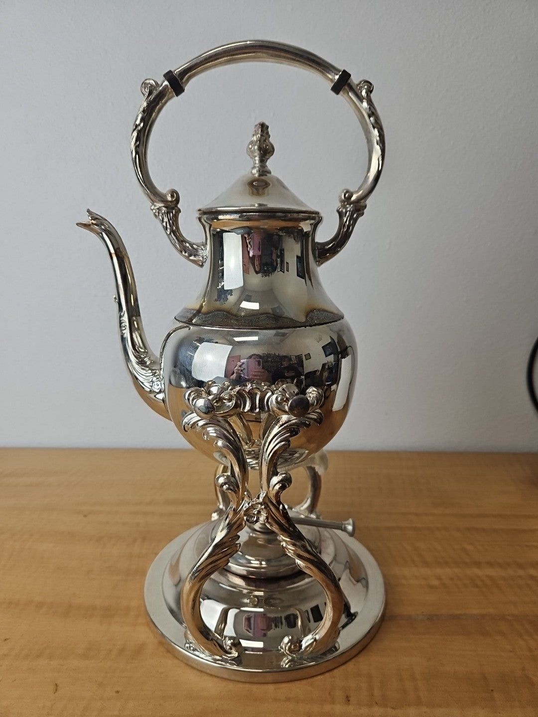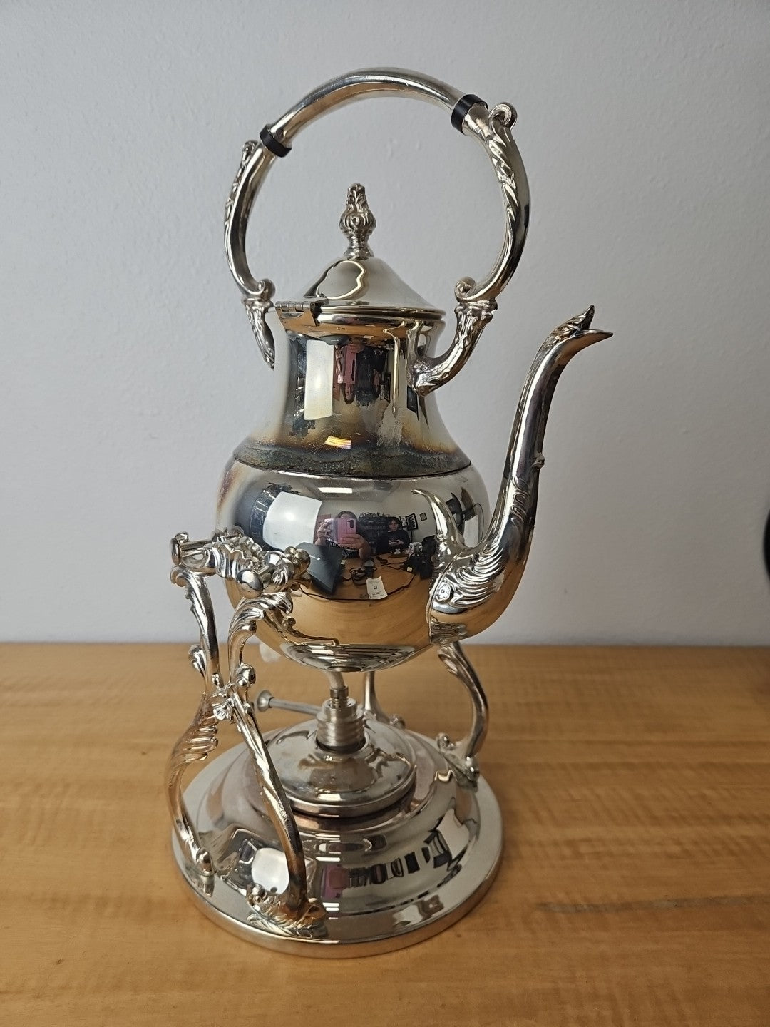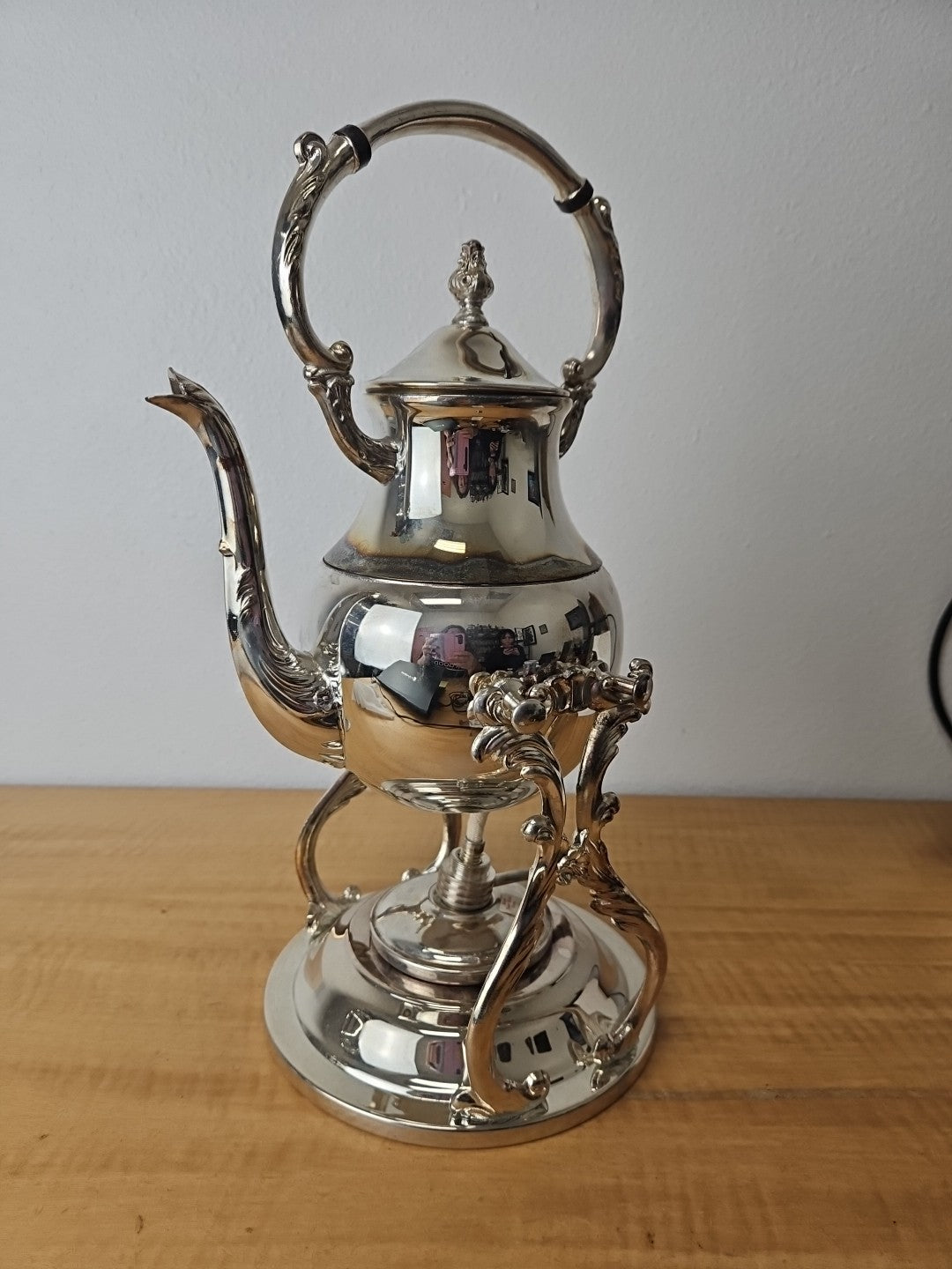 F.B. Rogers Silver Plated Tilting Coffee/Tea Pot; Kettle, Stand & Burner