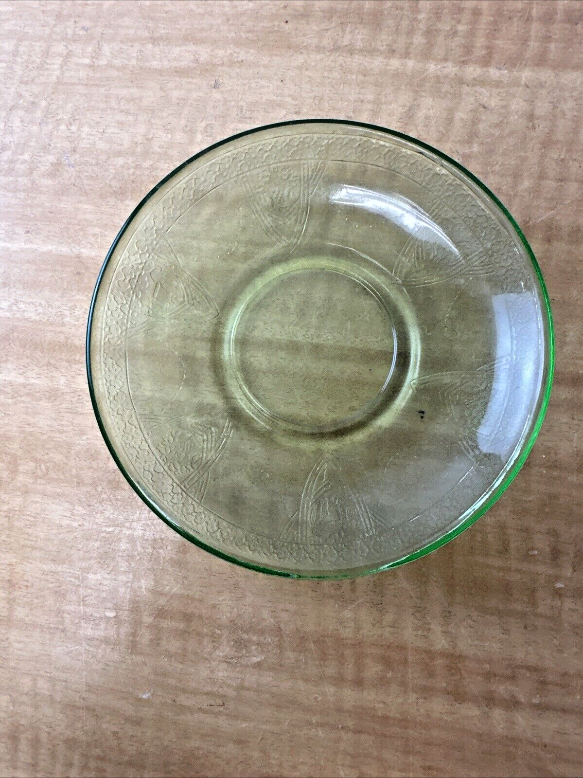 Federal Glass Green Depression Glass Georgian Lovebirds Saucer. 5 1/2"