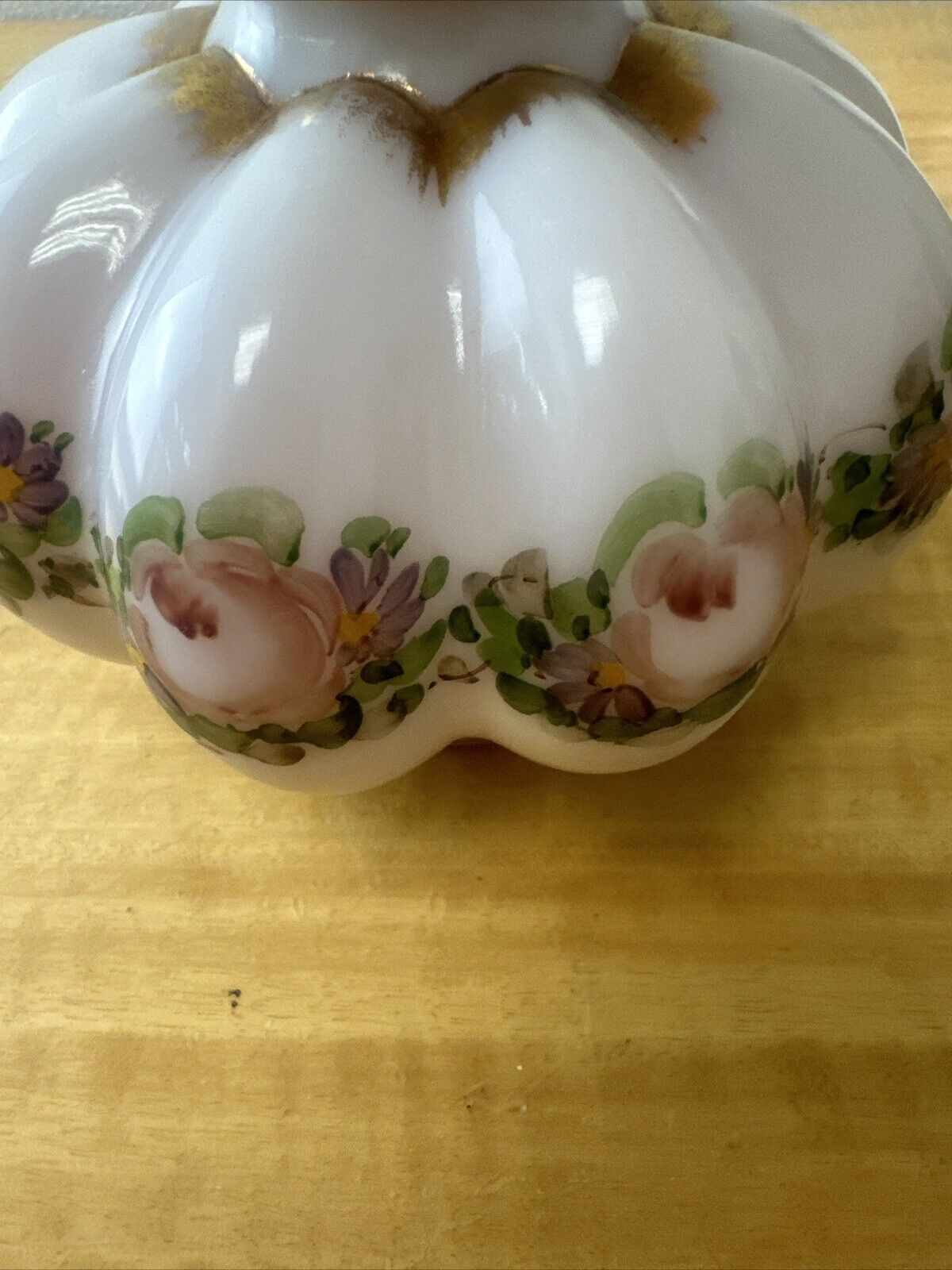 Fenton CHARLETON ROSES Melon Vase Hand Painted Peach Blow Silver Crest Gold Trim