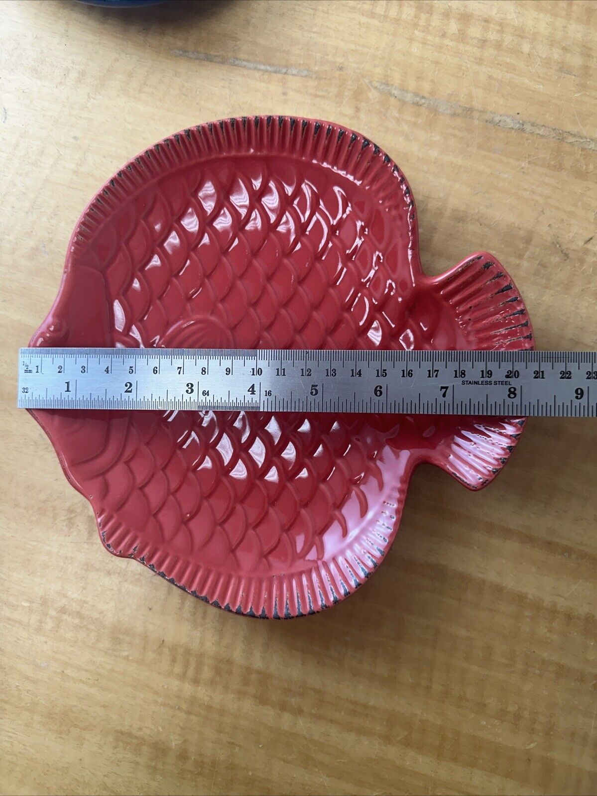 Fish Shaped Plate, Beach Decor, Red Stoneware Plate Set of 4